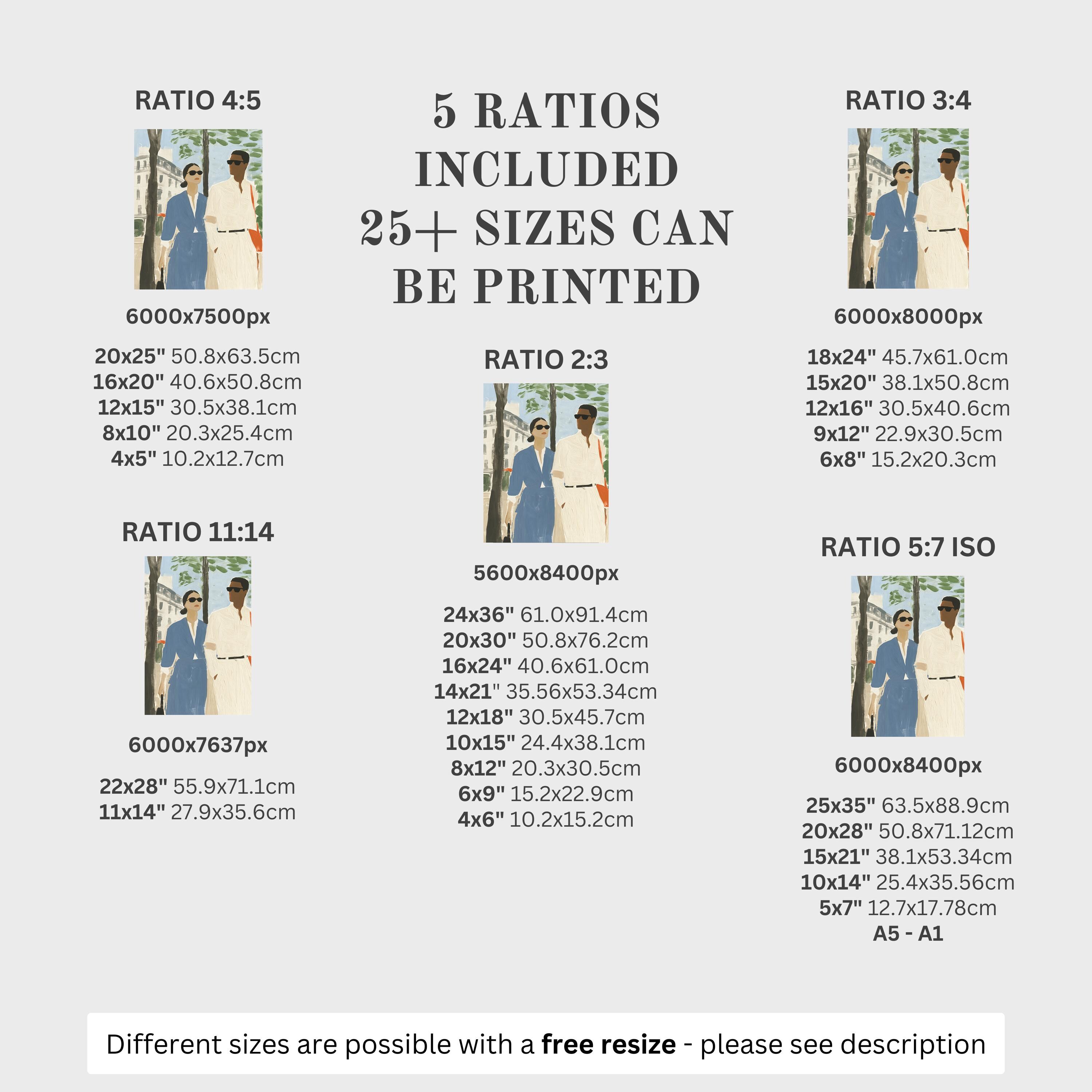 5 HIGH-QUALITY 300 DPI JPGs sized to fit +25 different frames in size and diverse ratios: