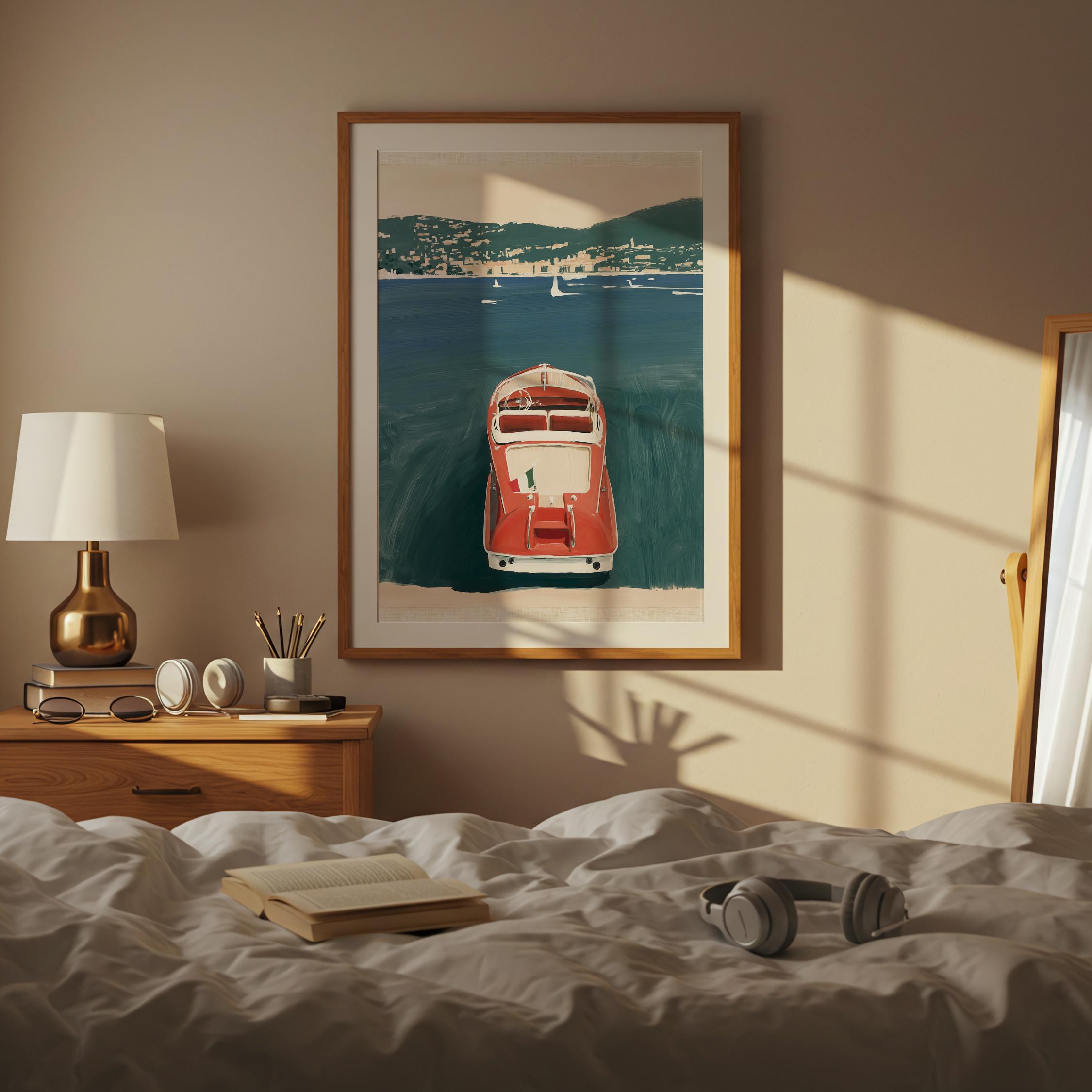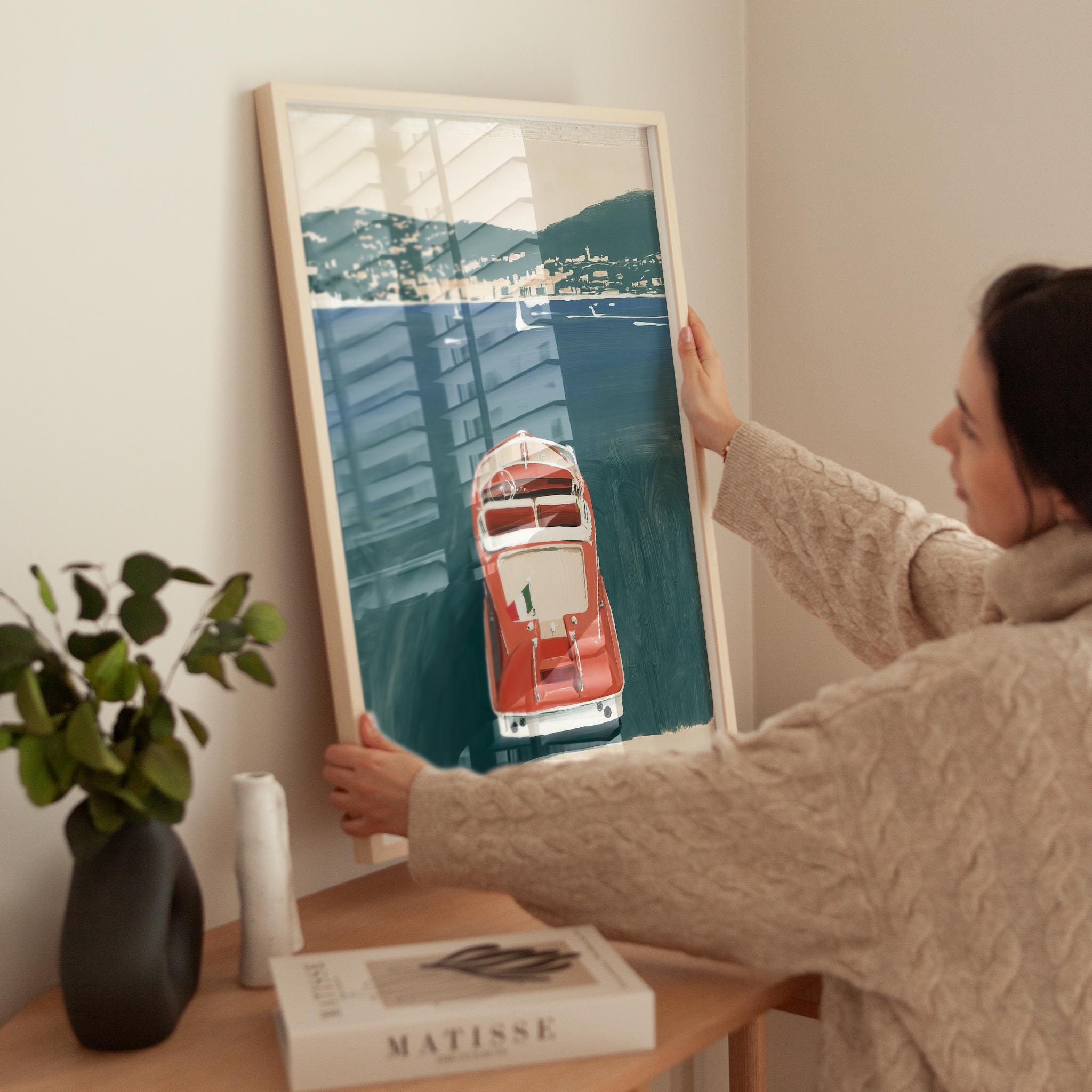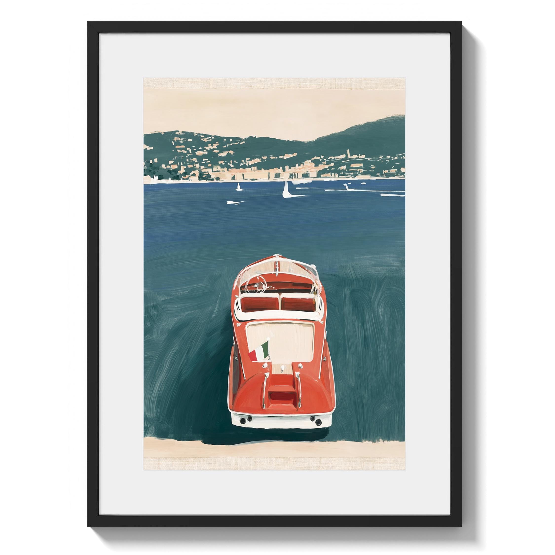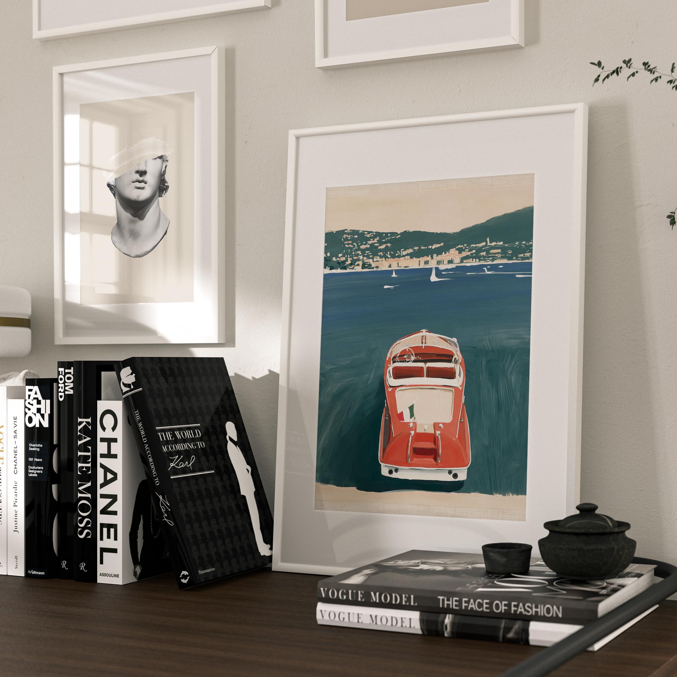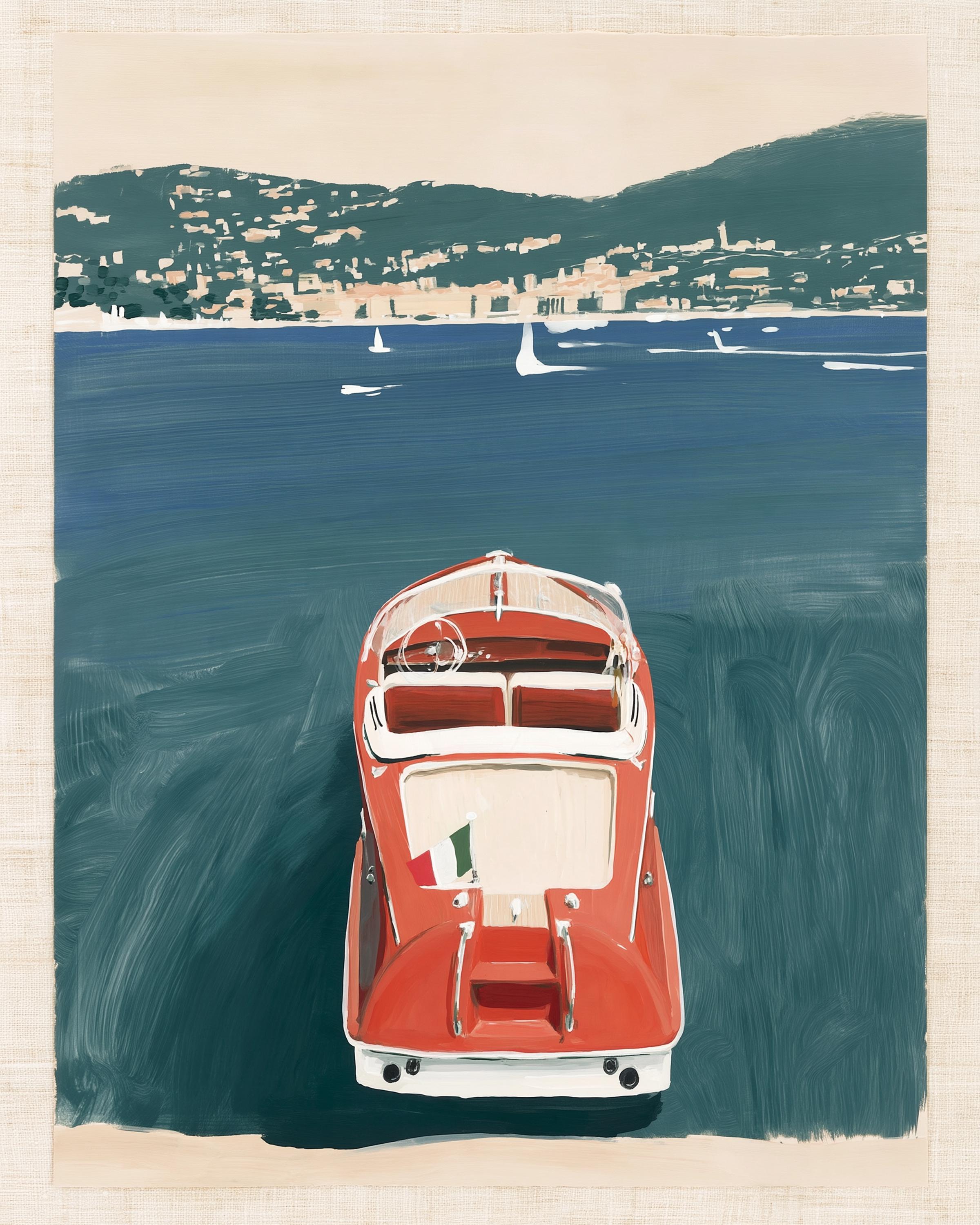 a vintage Riva speedboat, perfect for a coastal living room and a great gift for a nautical-themed birthday.