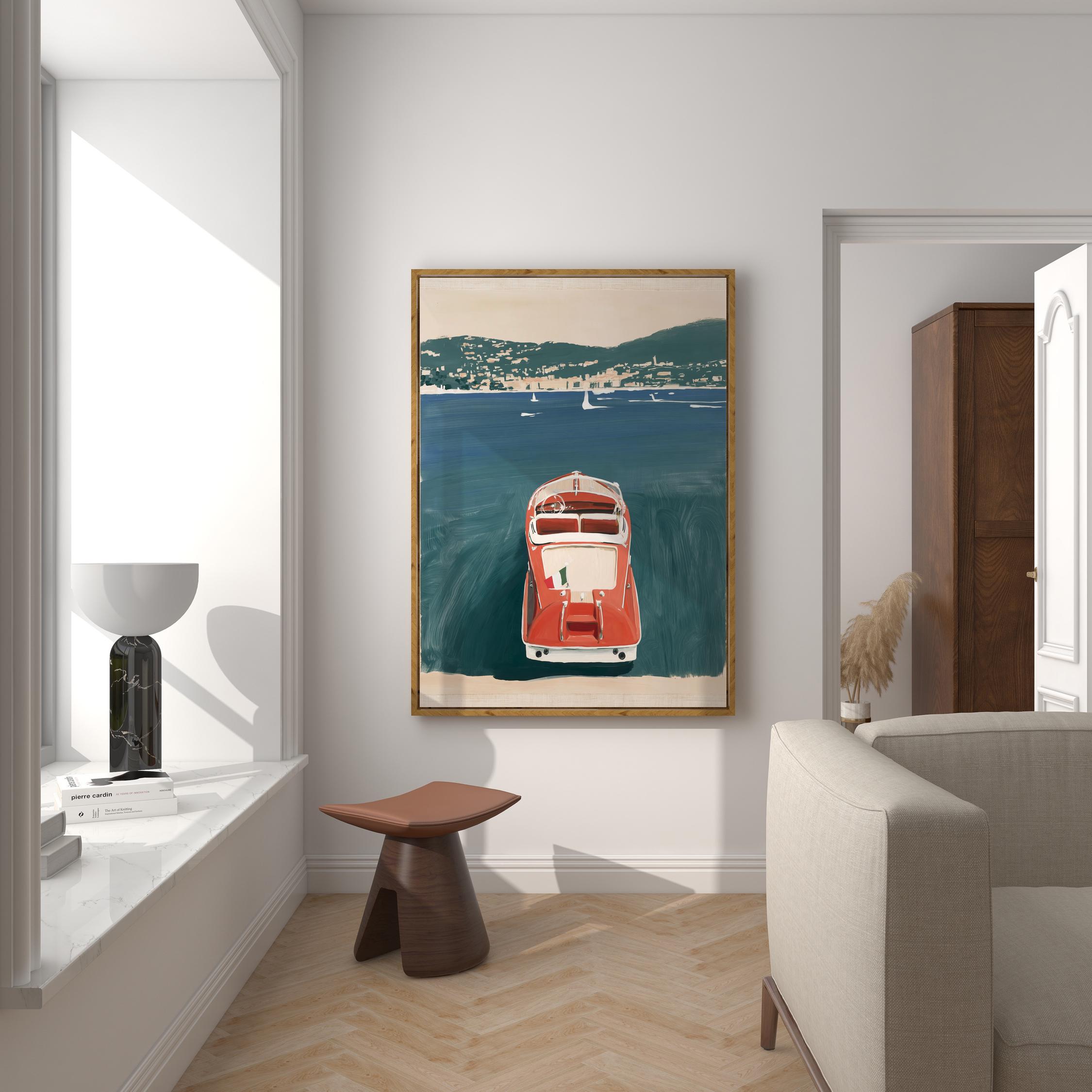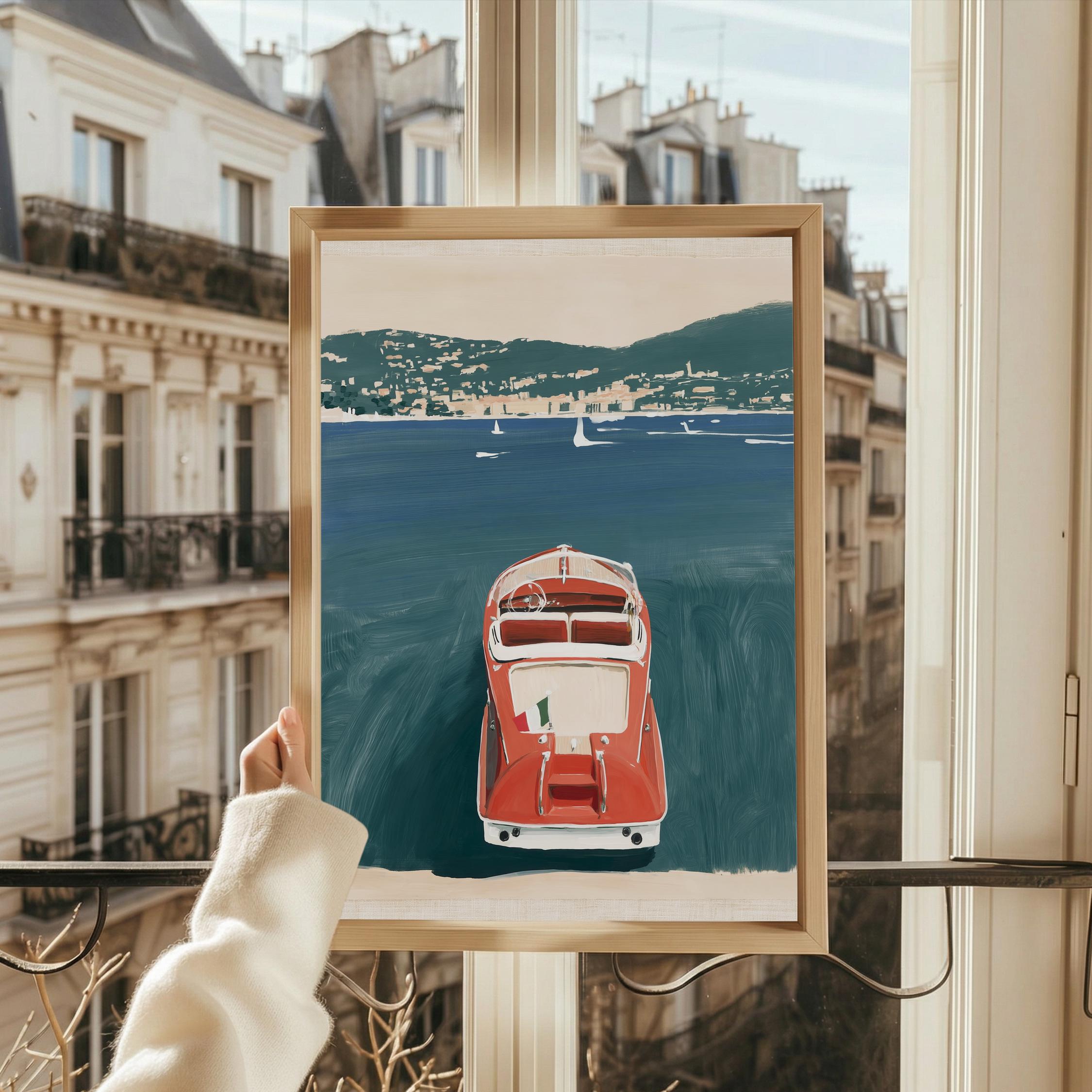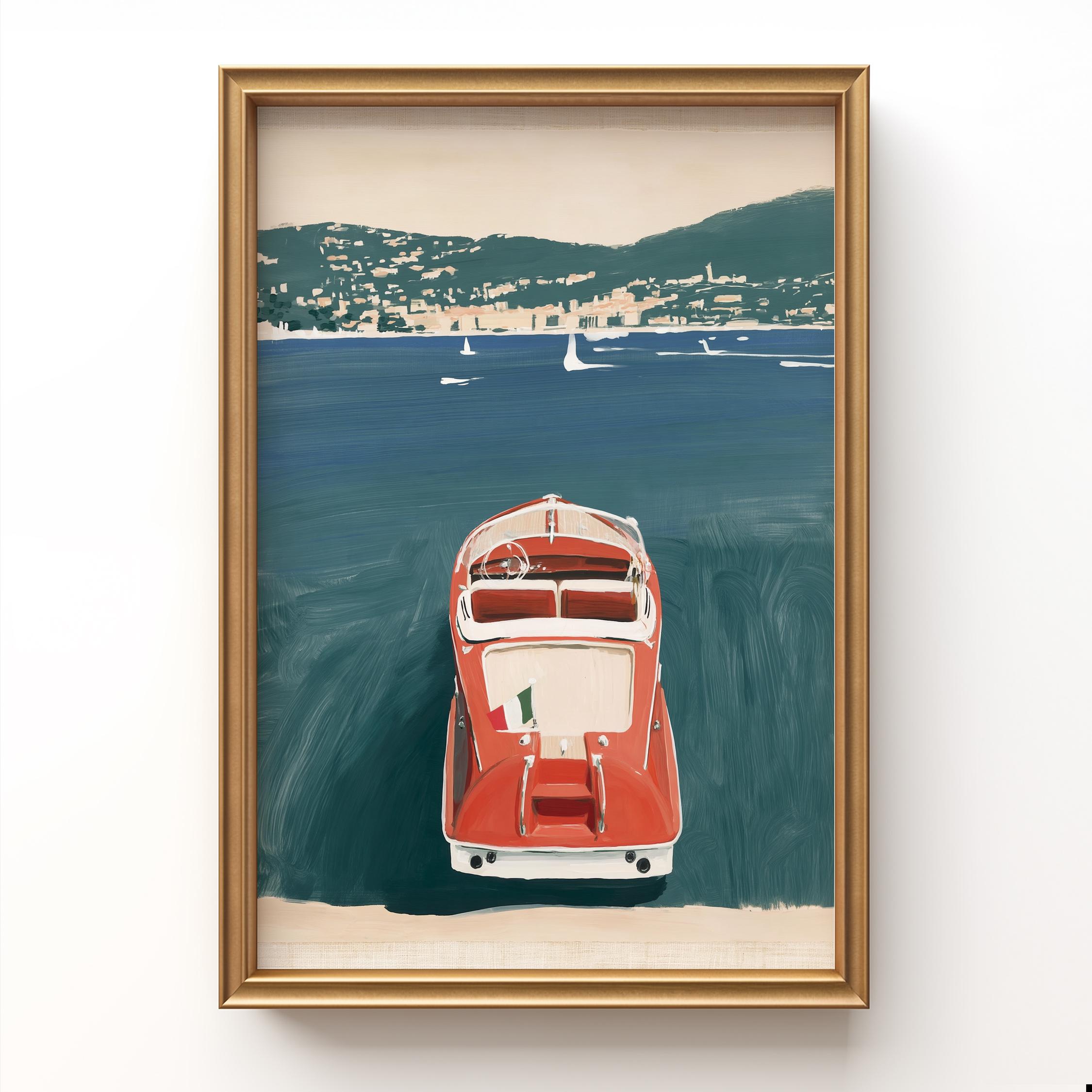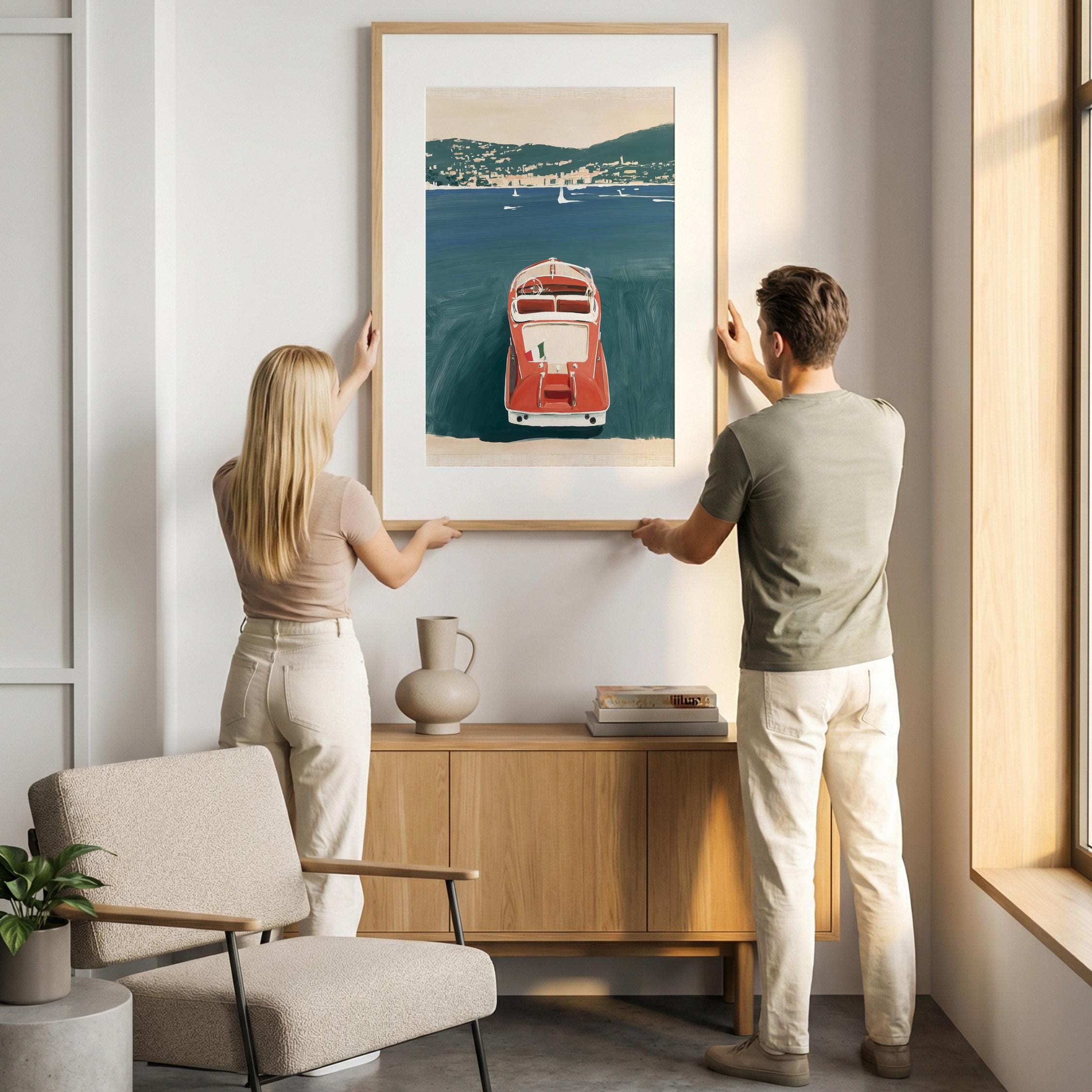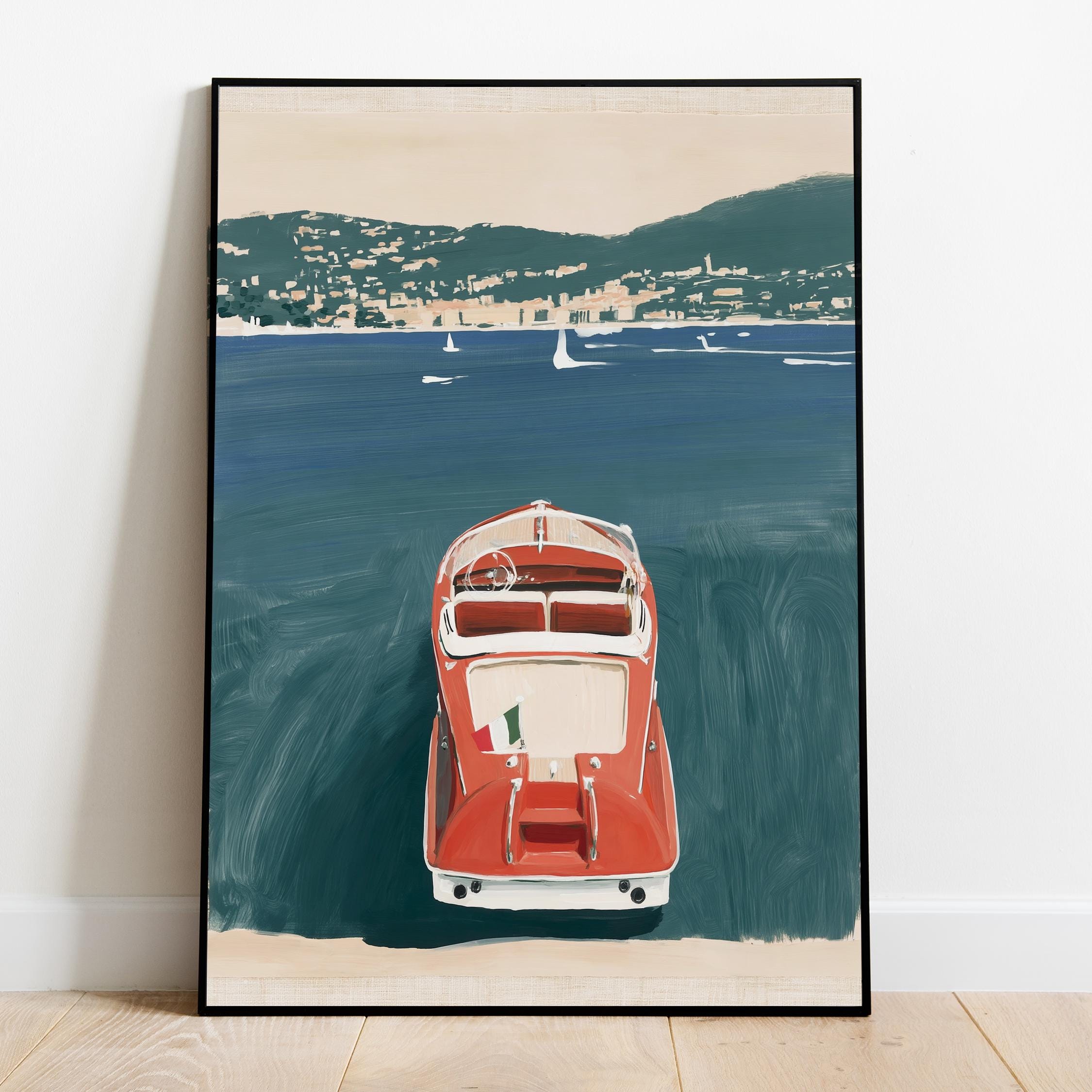 a vintage Riva speedboat, perfect for a coastal living room and a great gift for a nautical-themed birthday.
