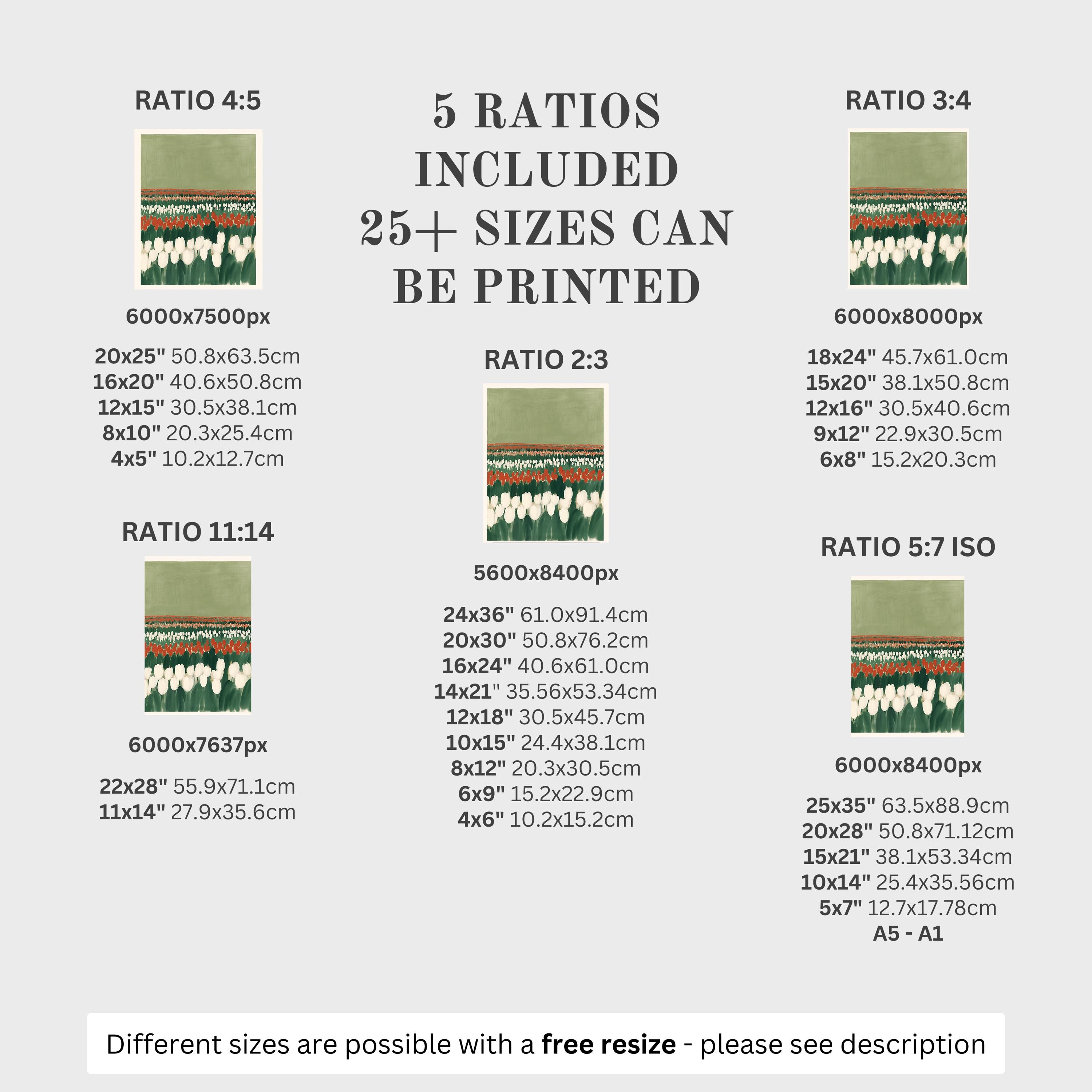 5 HIGH-QUALITY 300 DPI JPGs sized to fit +25 different frames in size and diverse ratios:
