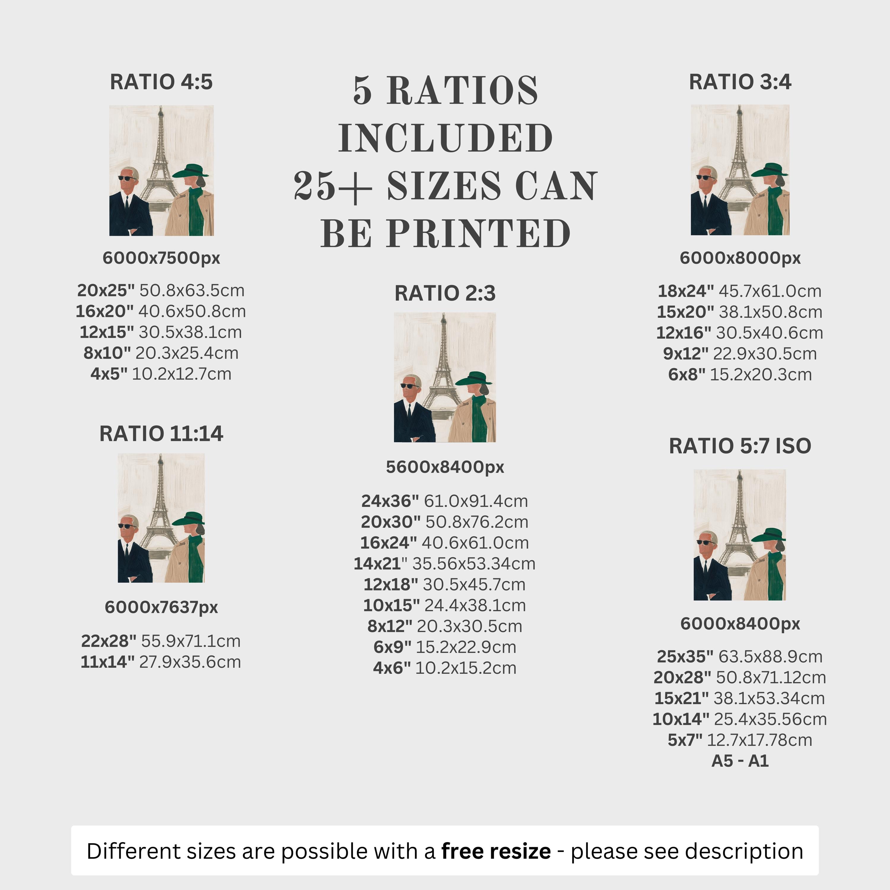 5 HIGH-QUALITY 300 DPI JPGs sized to fit +25 different frames in size and diverse ratios: