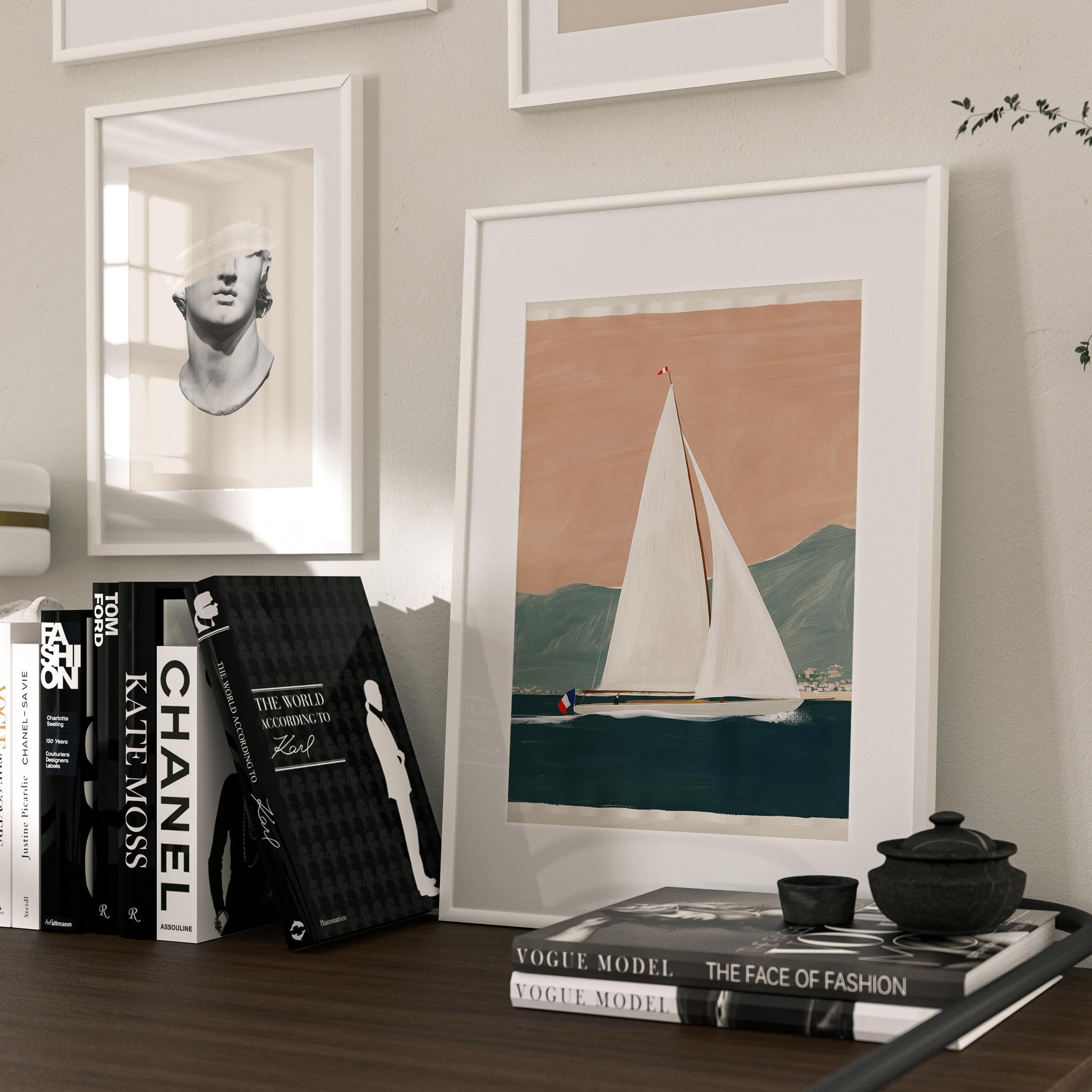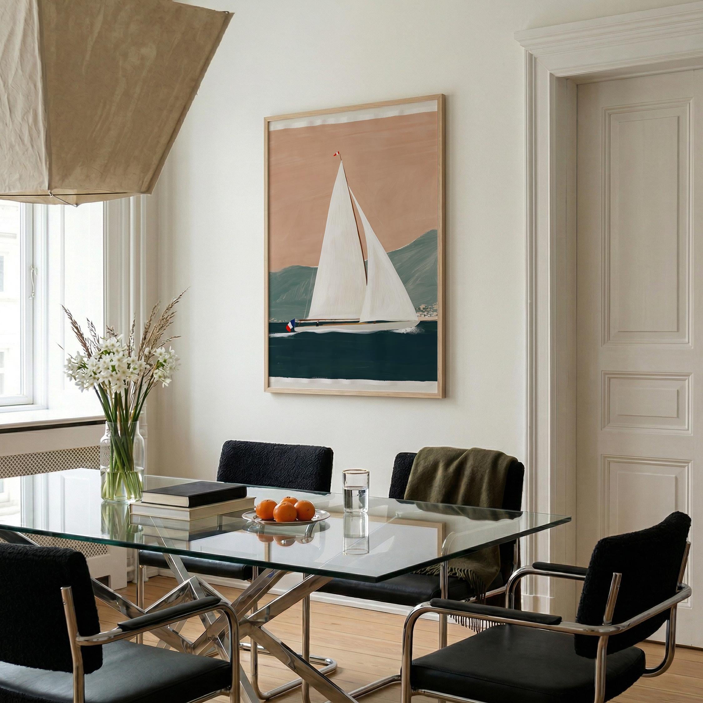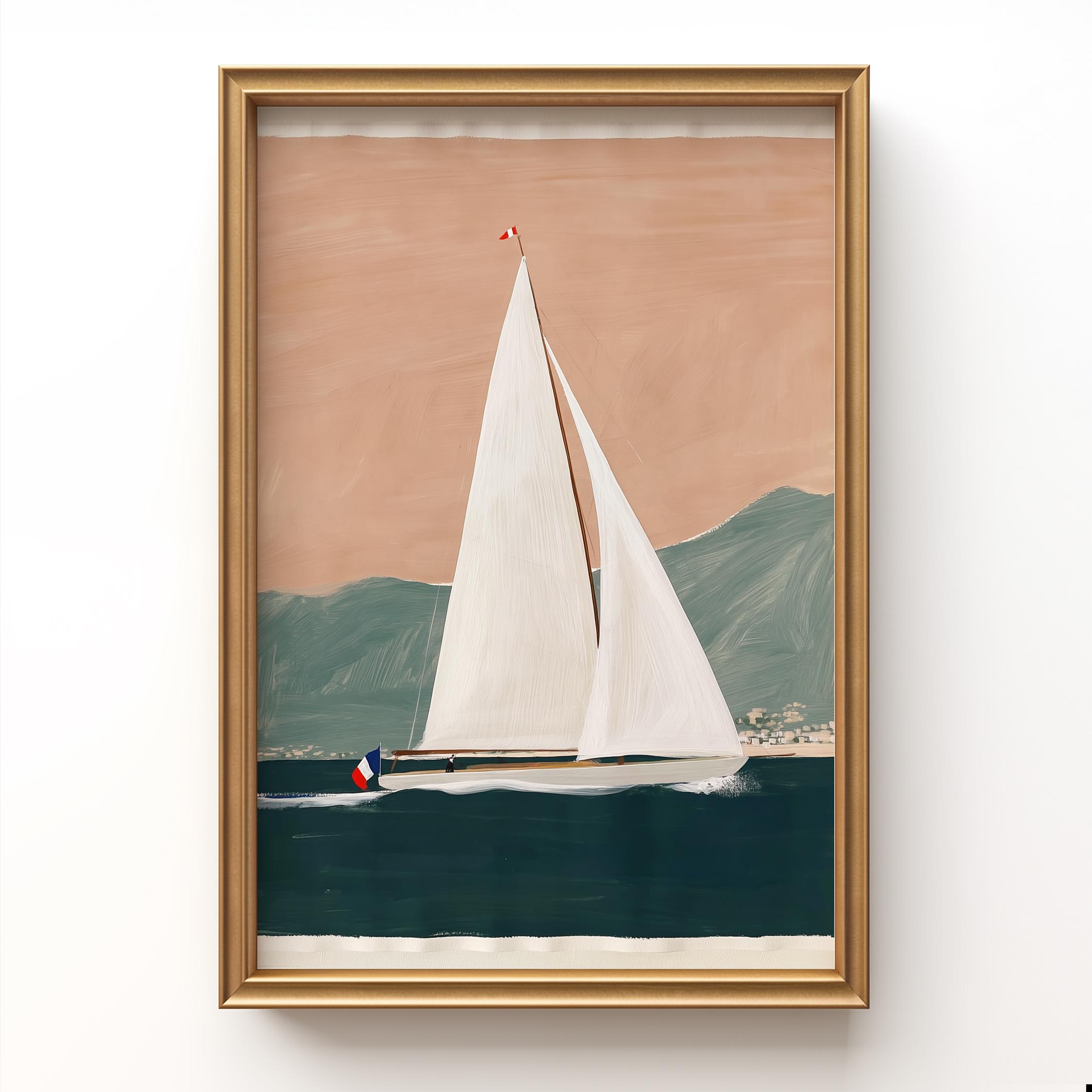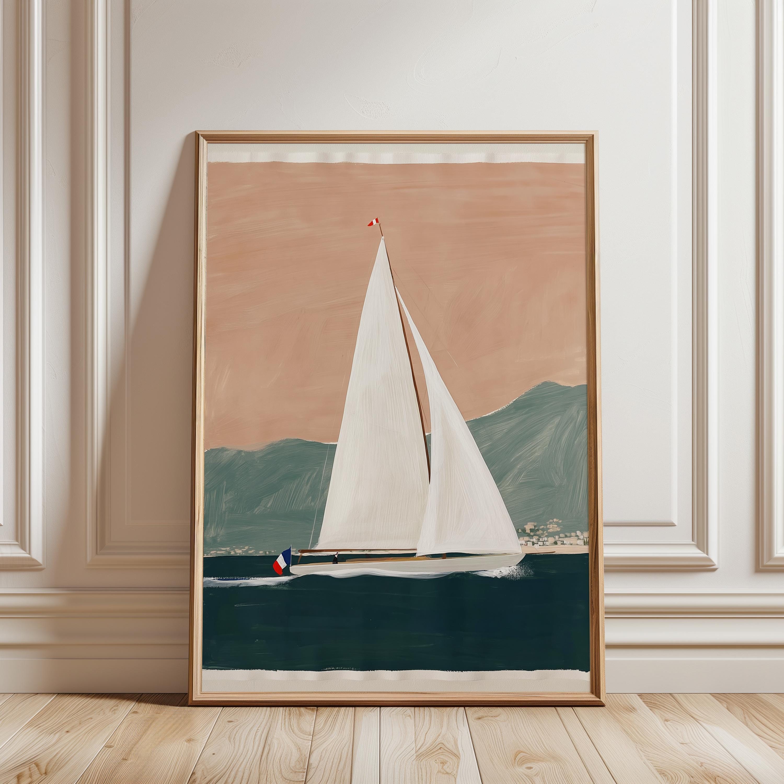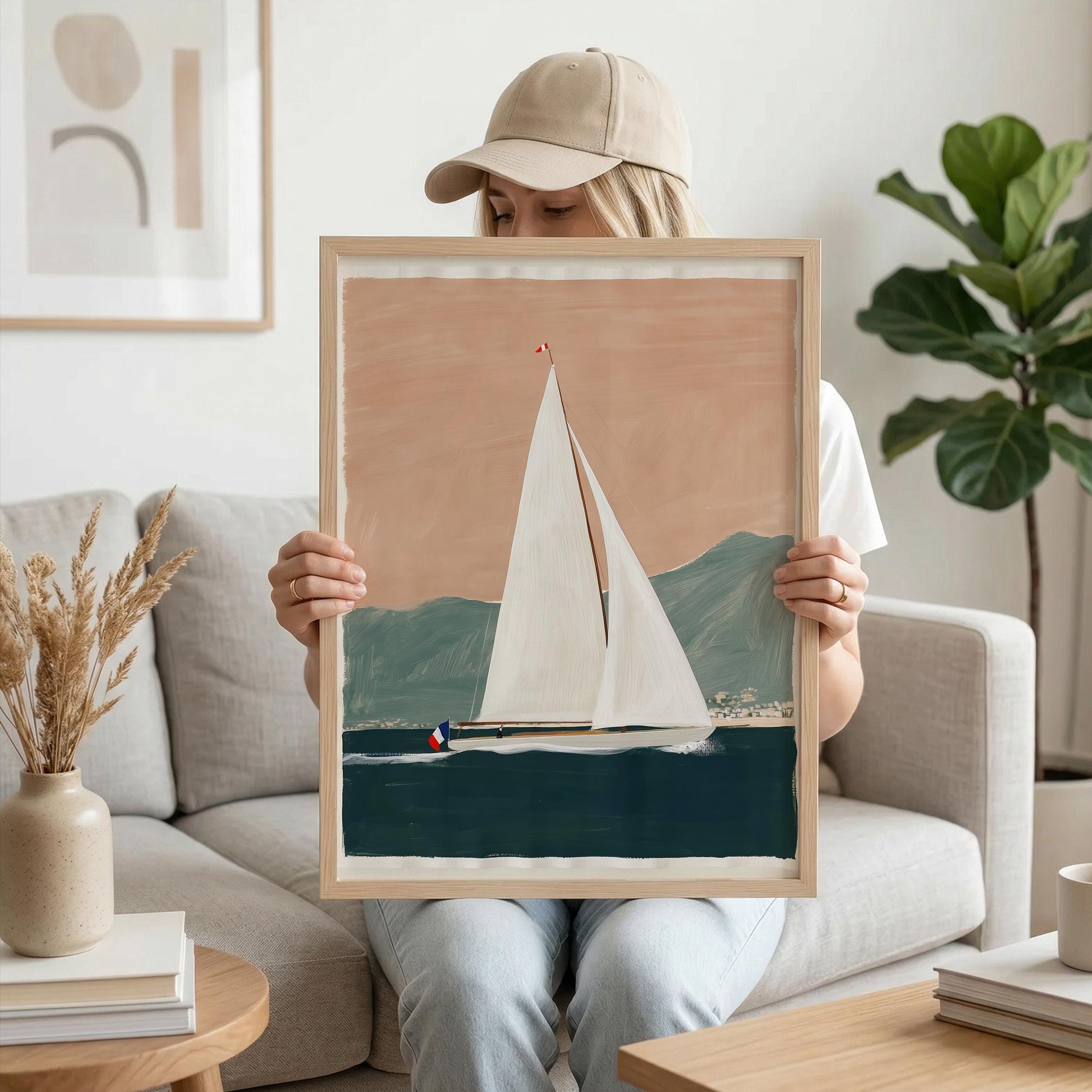 a serene yacht scene, perfect for a coastal-themed living room and a great gift for housewarming gifts.