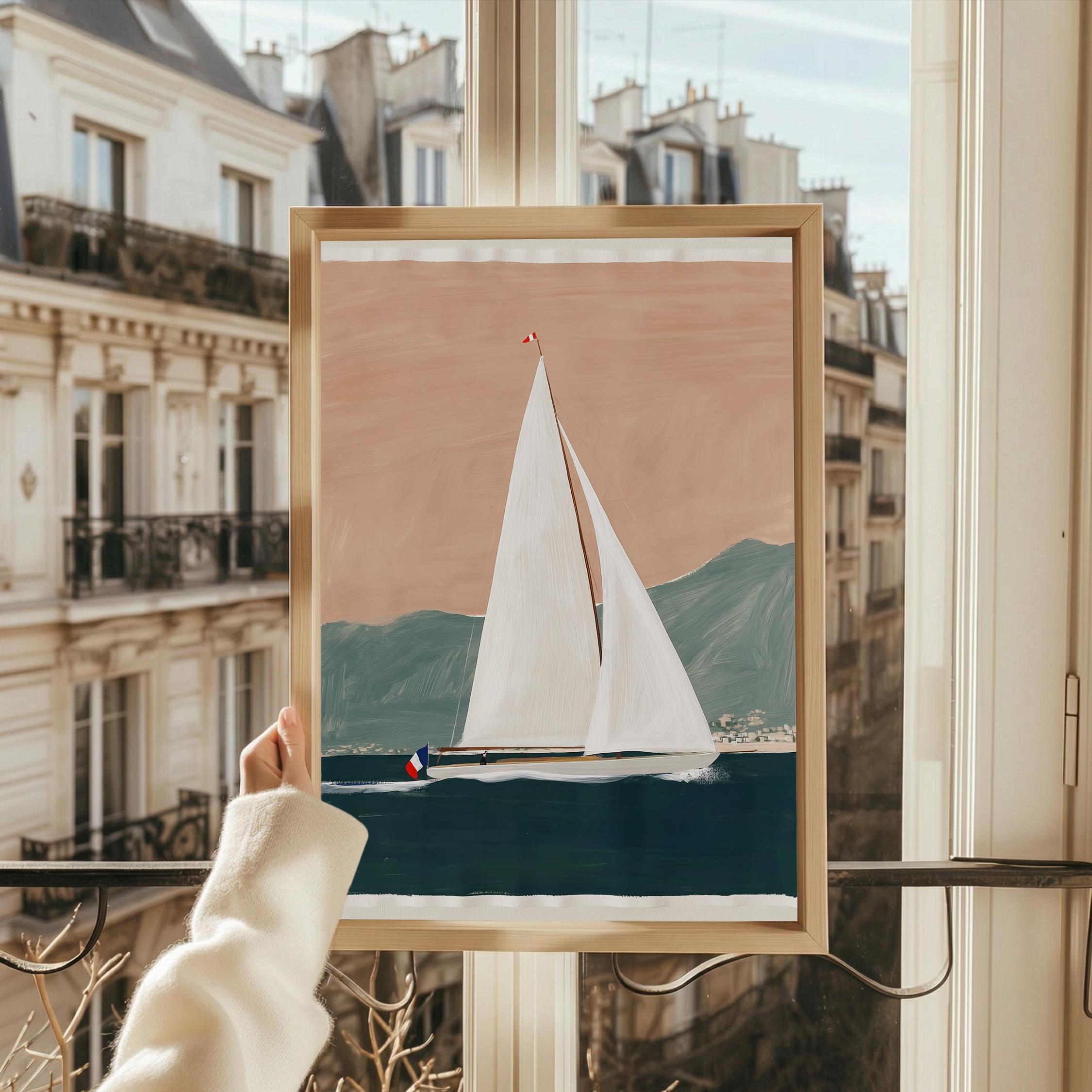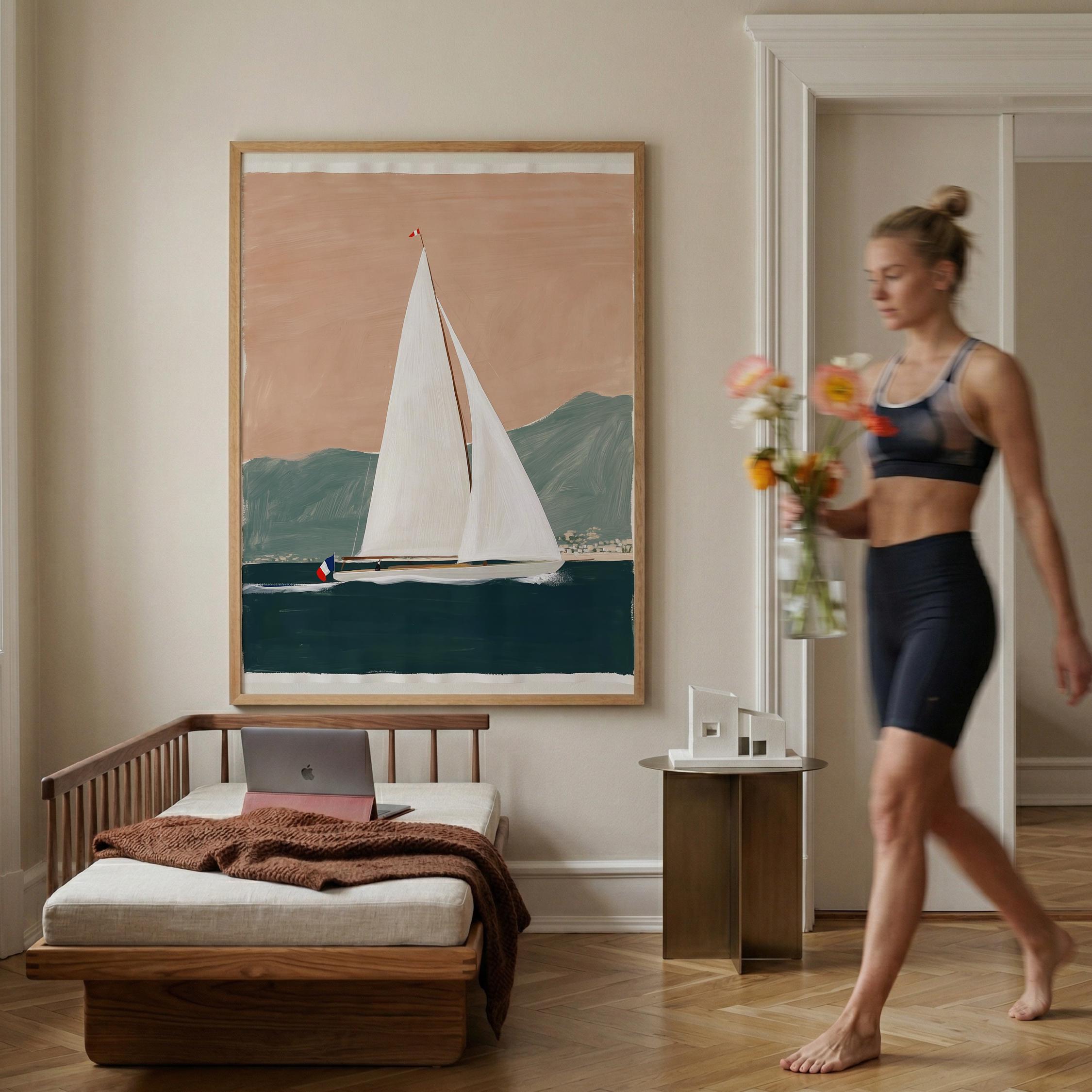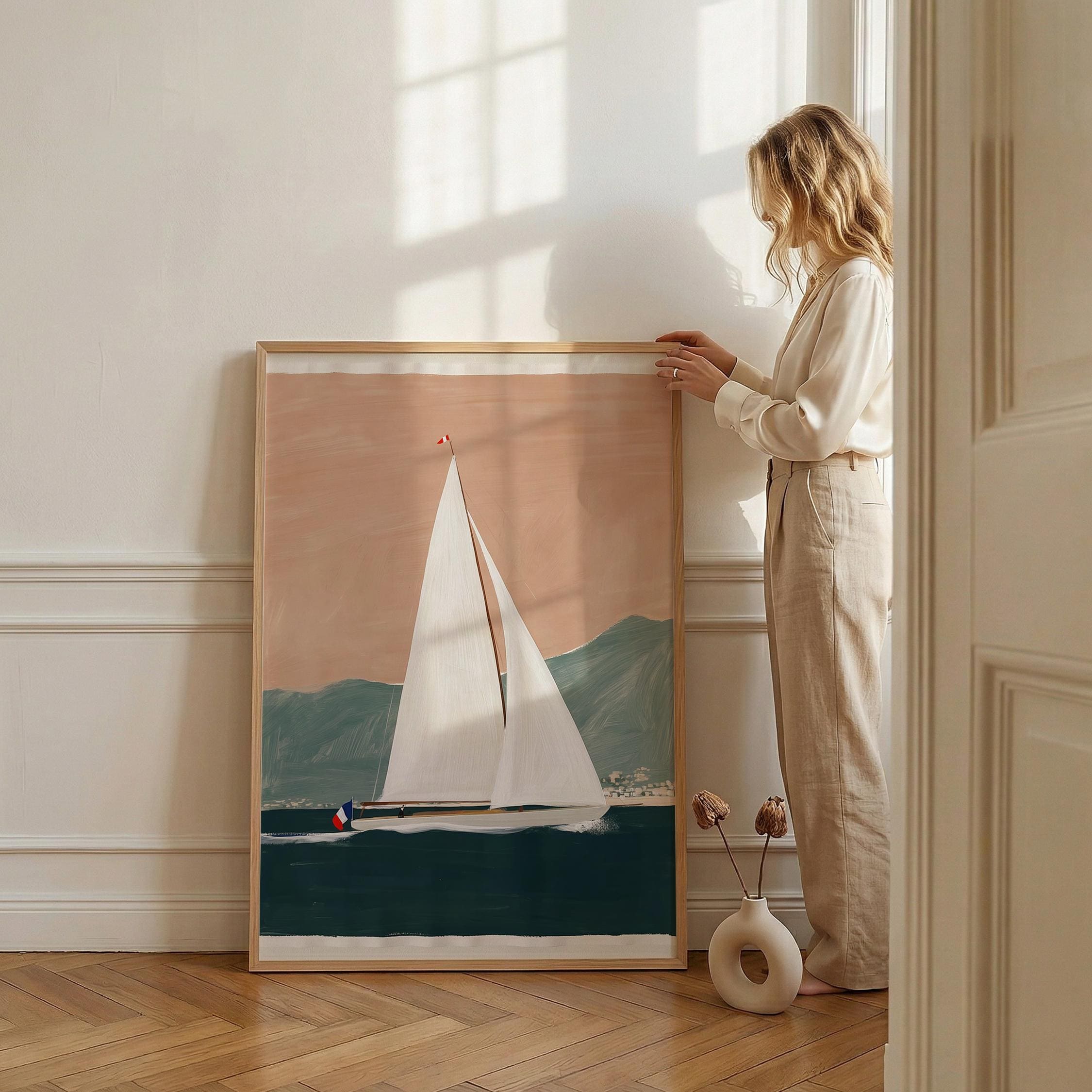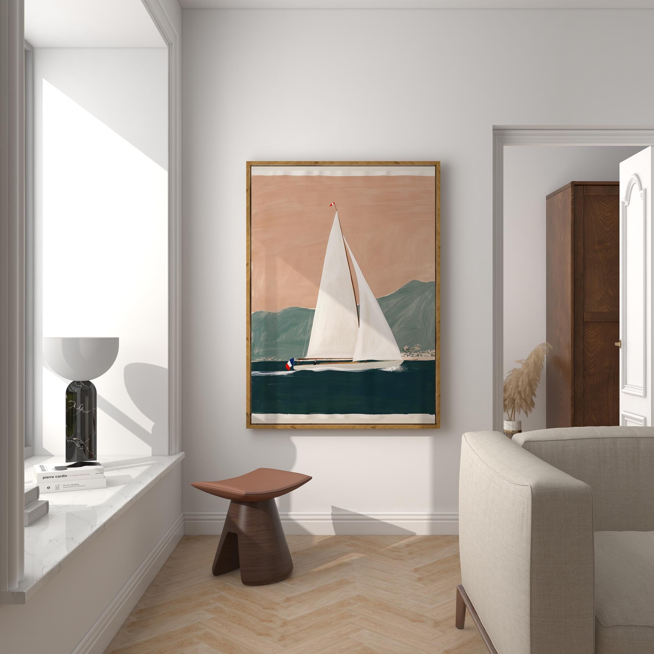 a serene yacht scene, perfect for a coastal-themed living room and a great gift for housewarming gifts.
