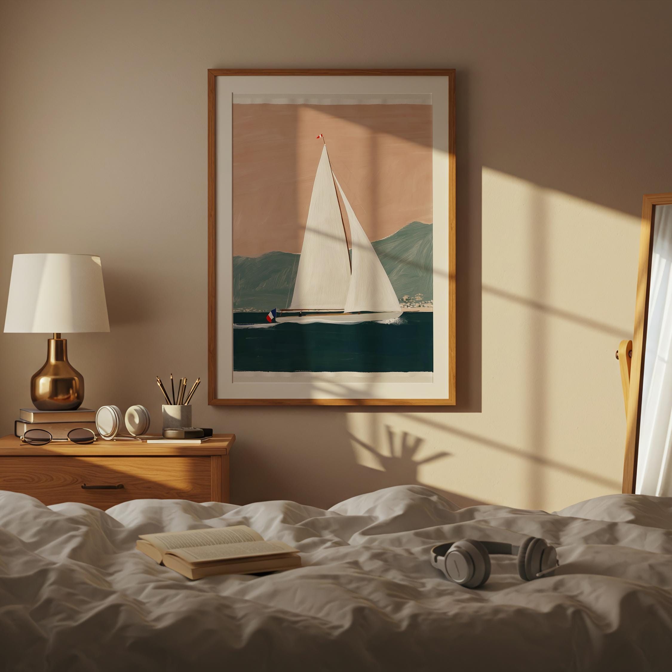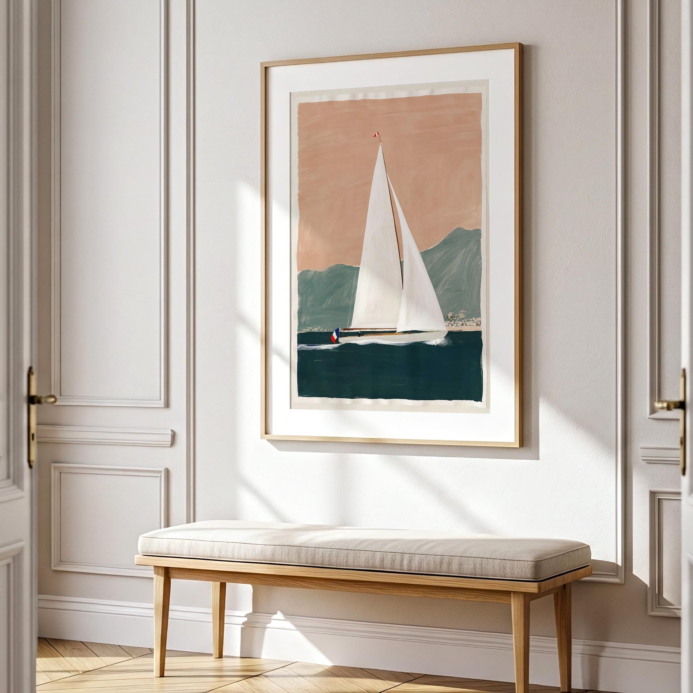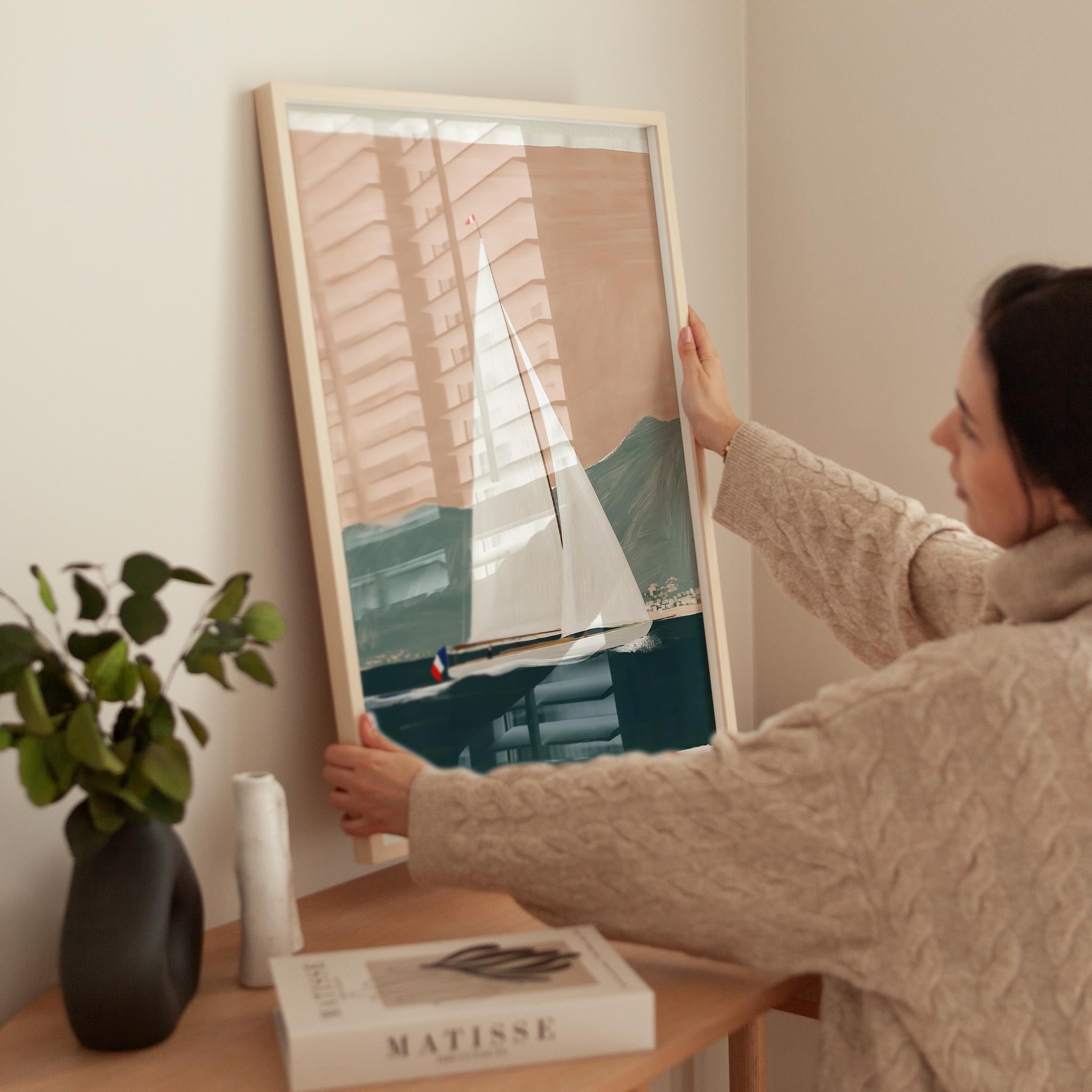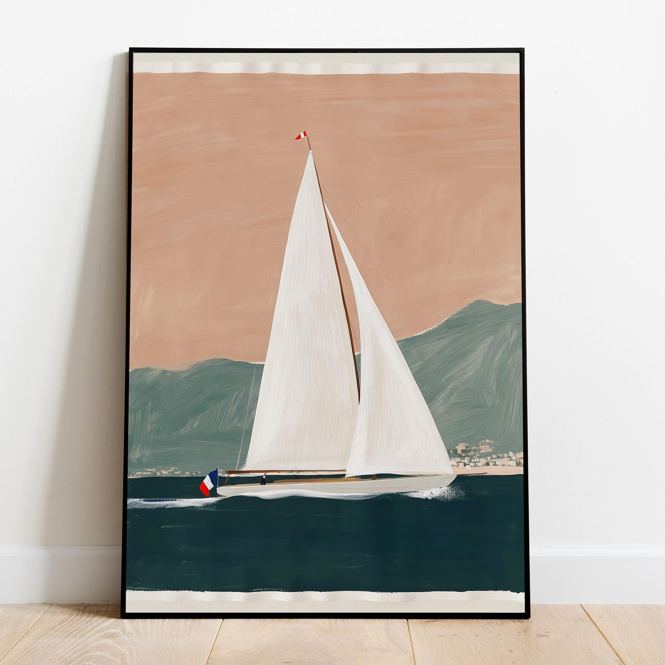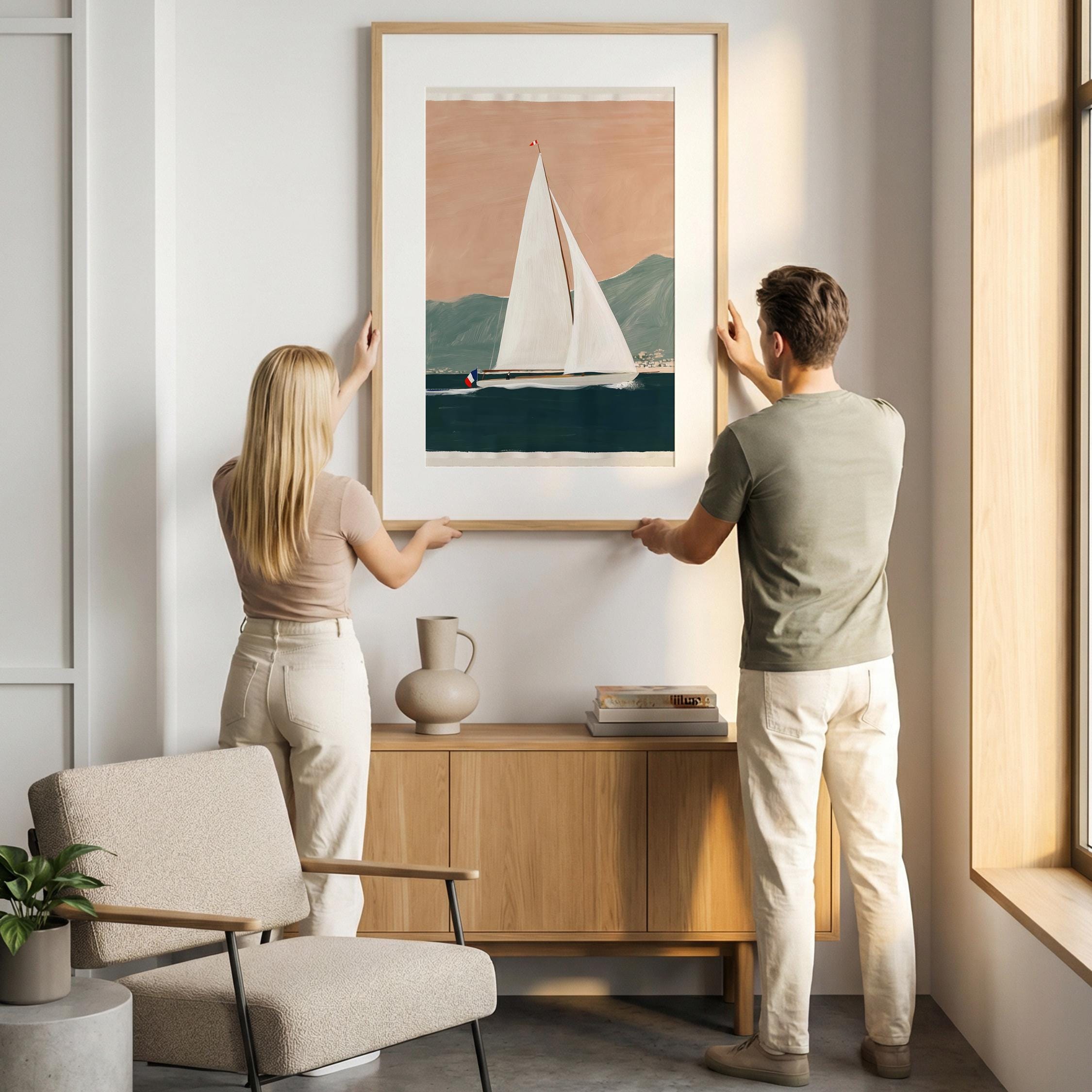 a serene yacht scene, perfect for a coastal-themed living room and a great gift for housewarming gifts.