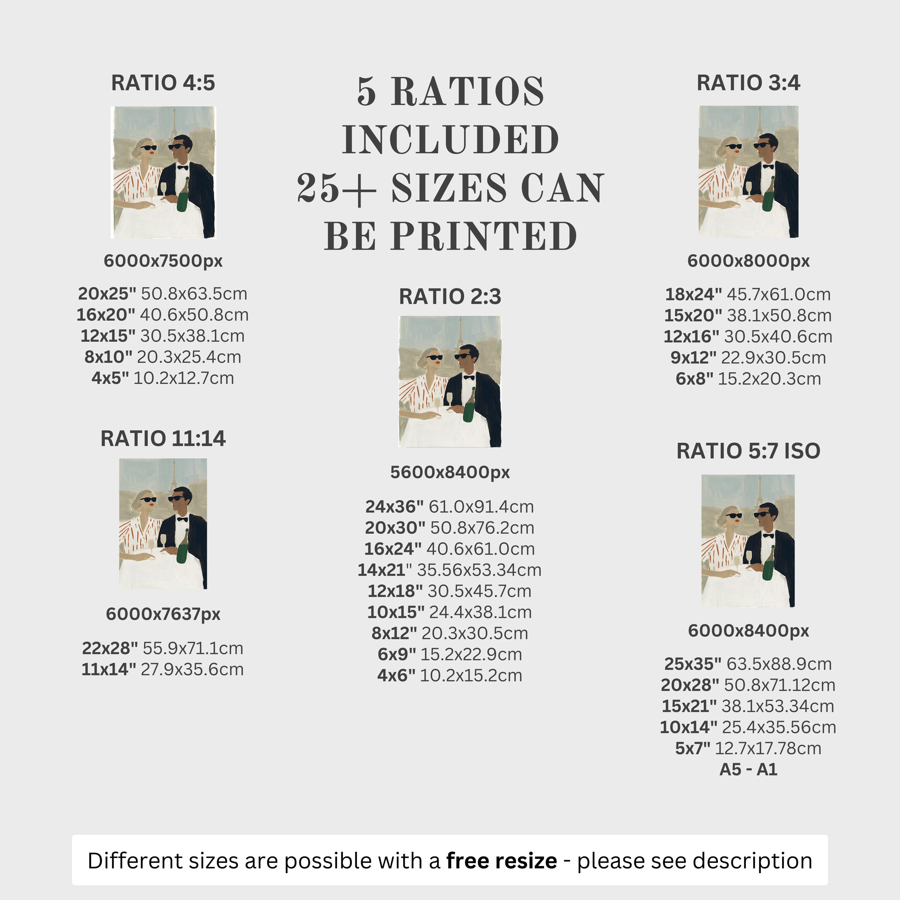 5 HIGH-QUALITY 300 DPI JPGs sized to fit +25 different frames in size and diverse ratios: