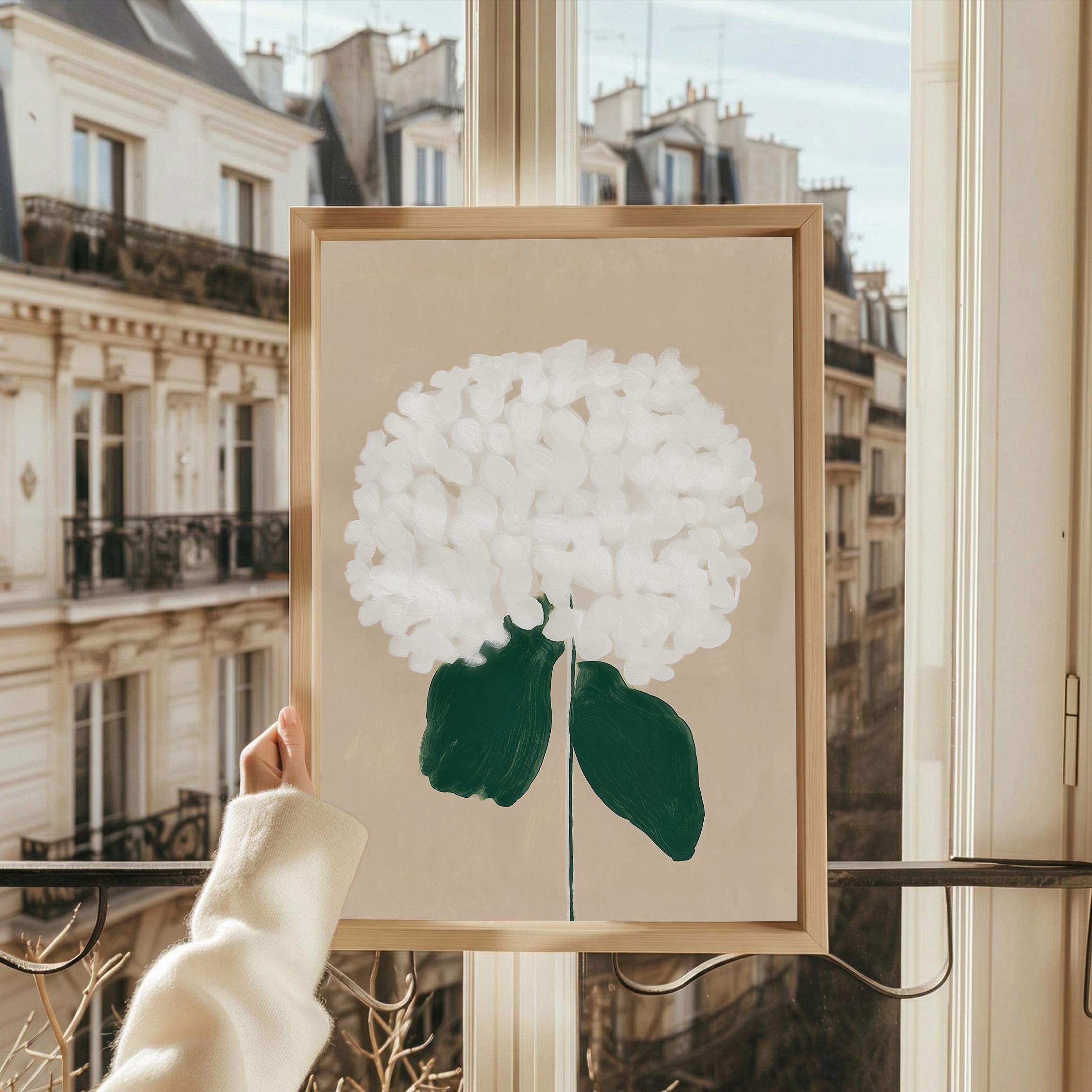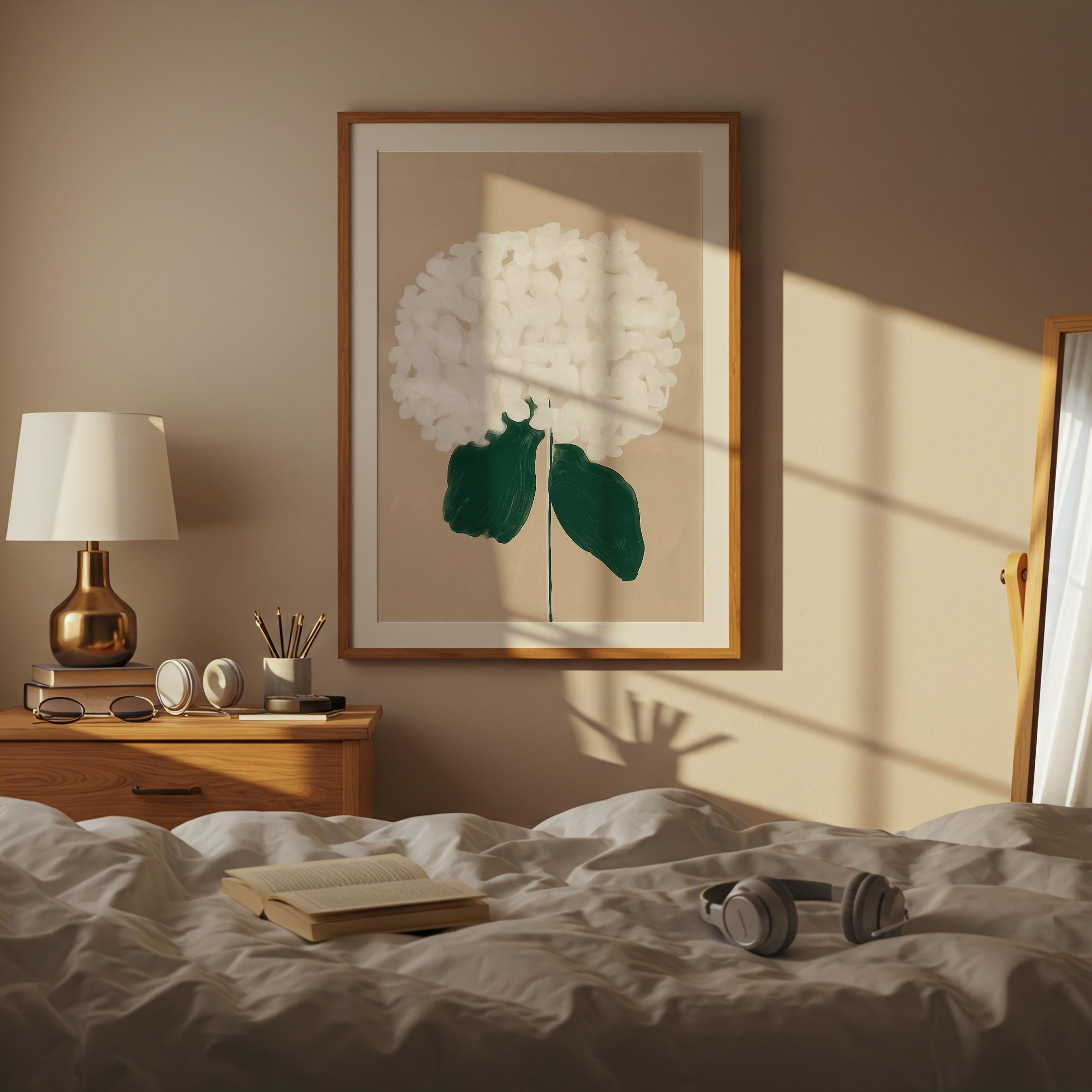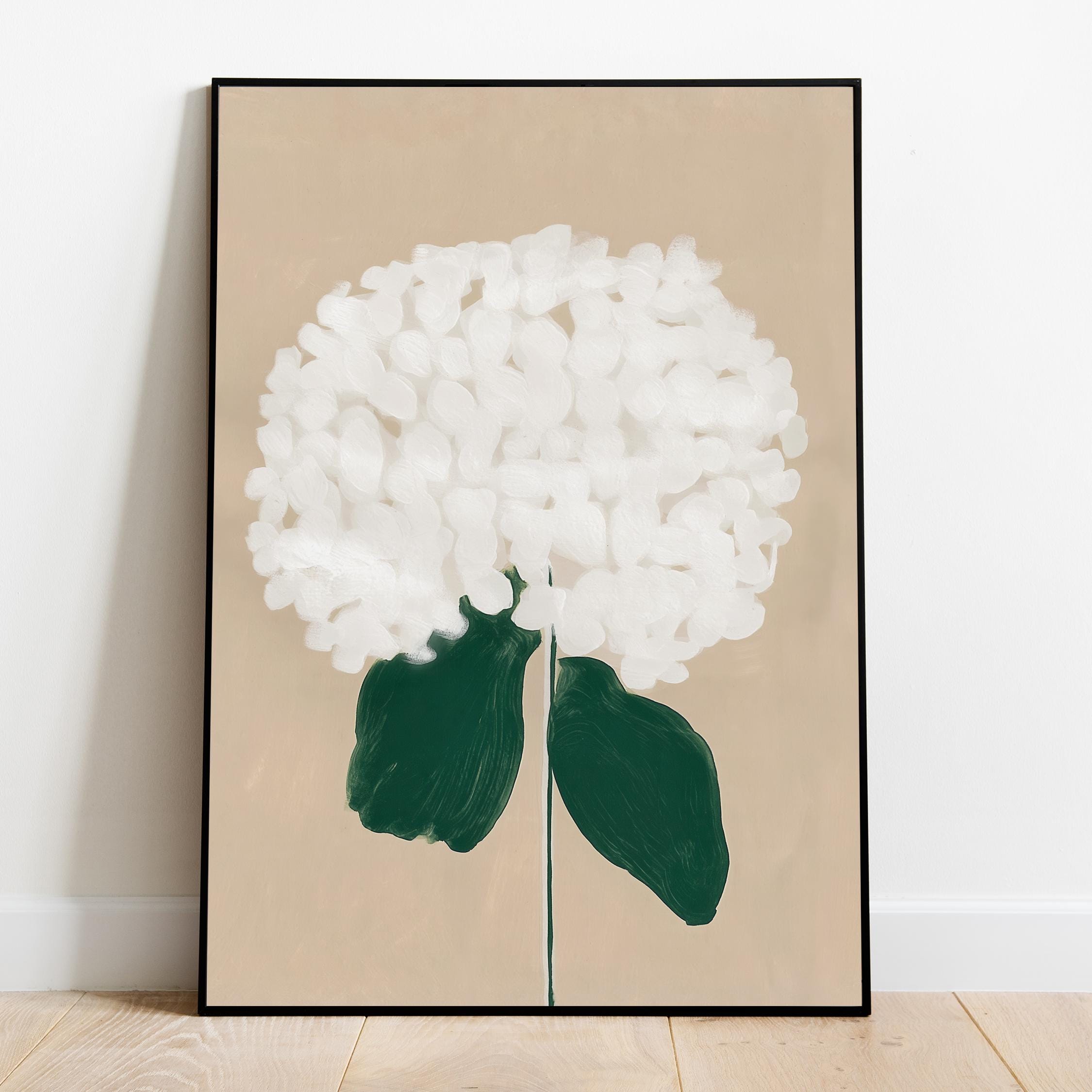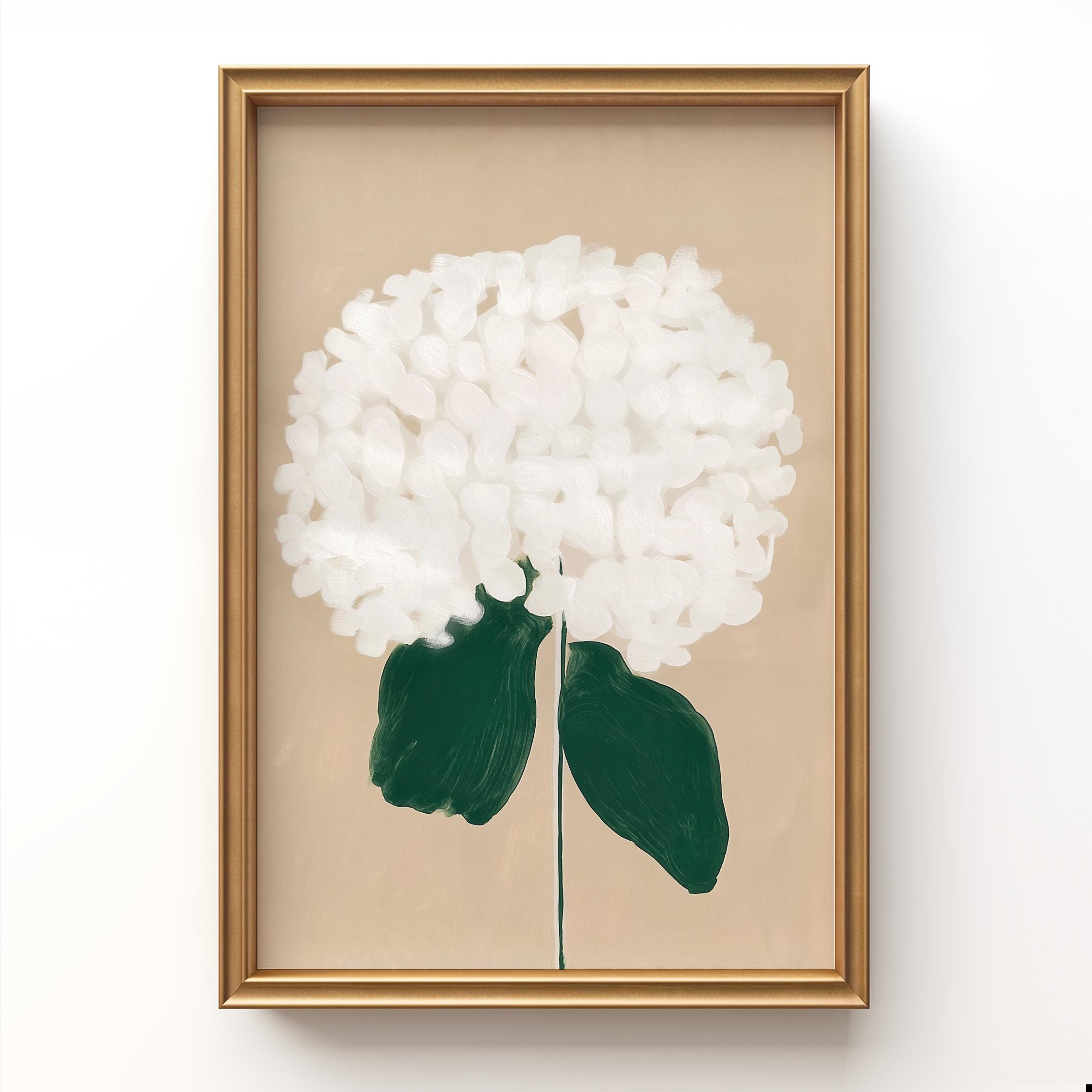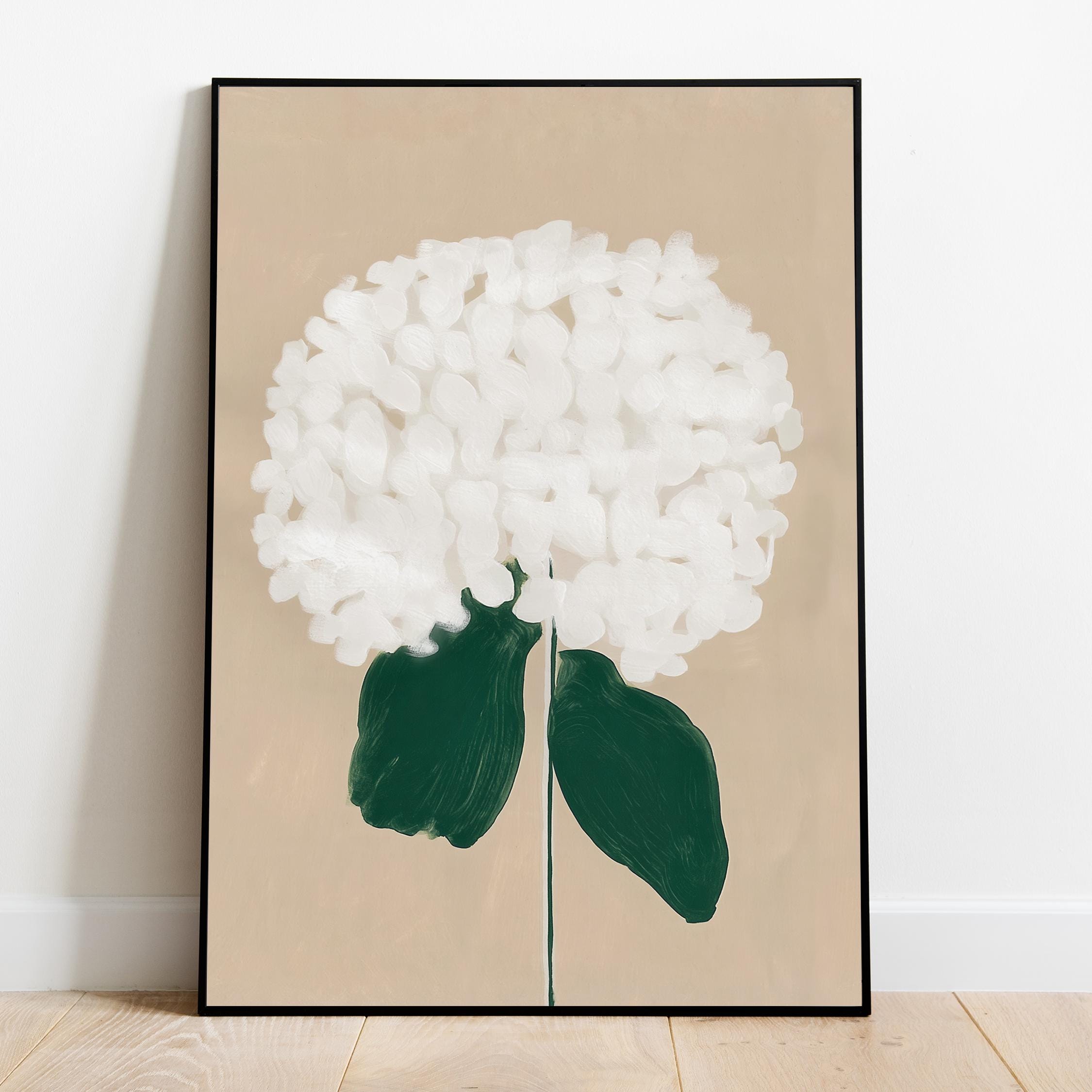a serene white hydrangea painting, perfect for a cozy bedroom and a great gift for a housewarming gift.
