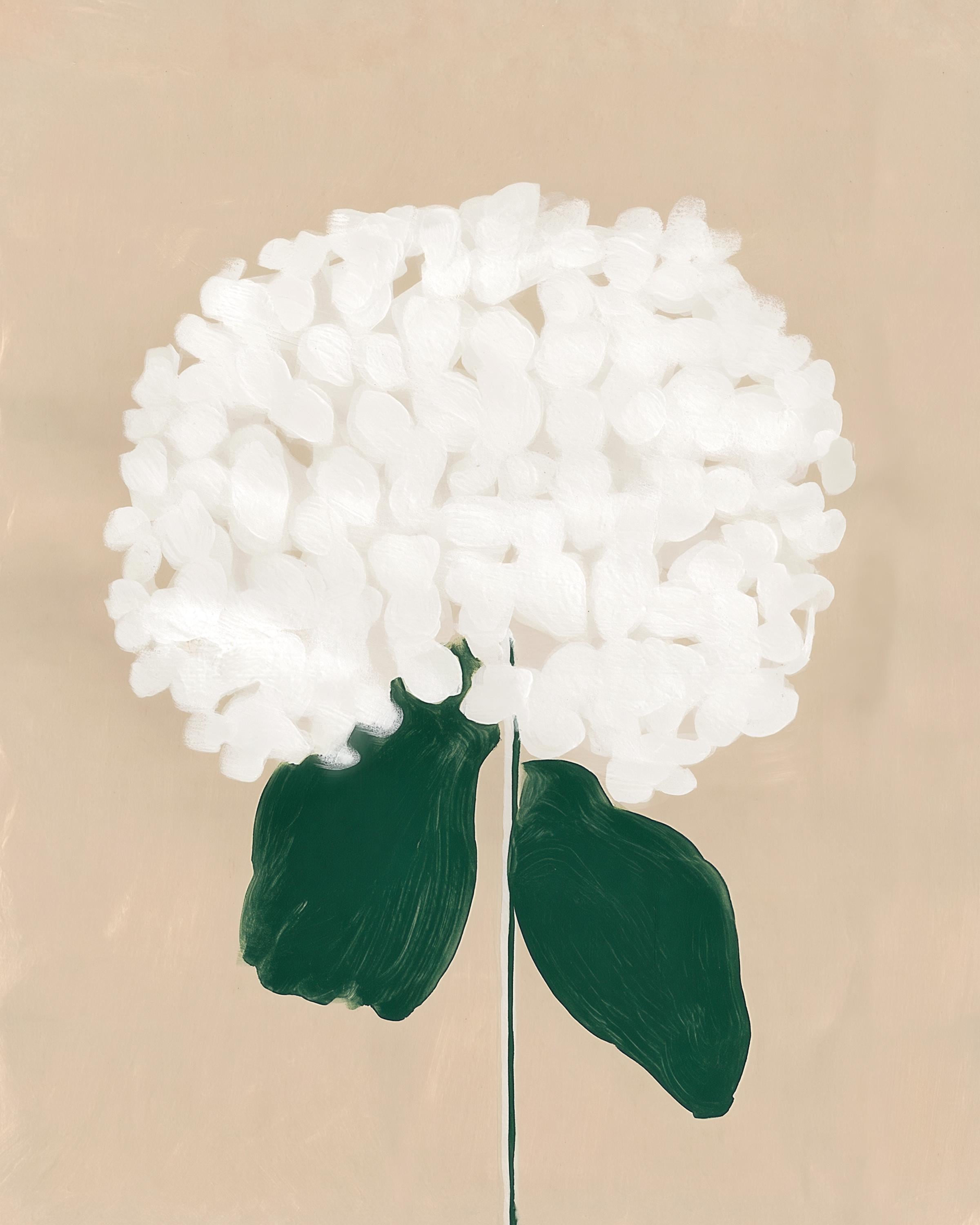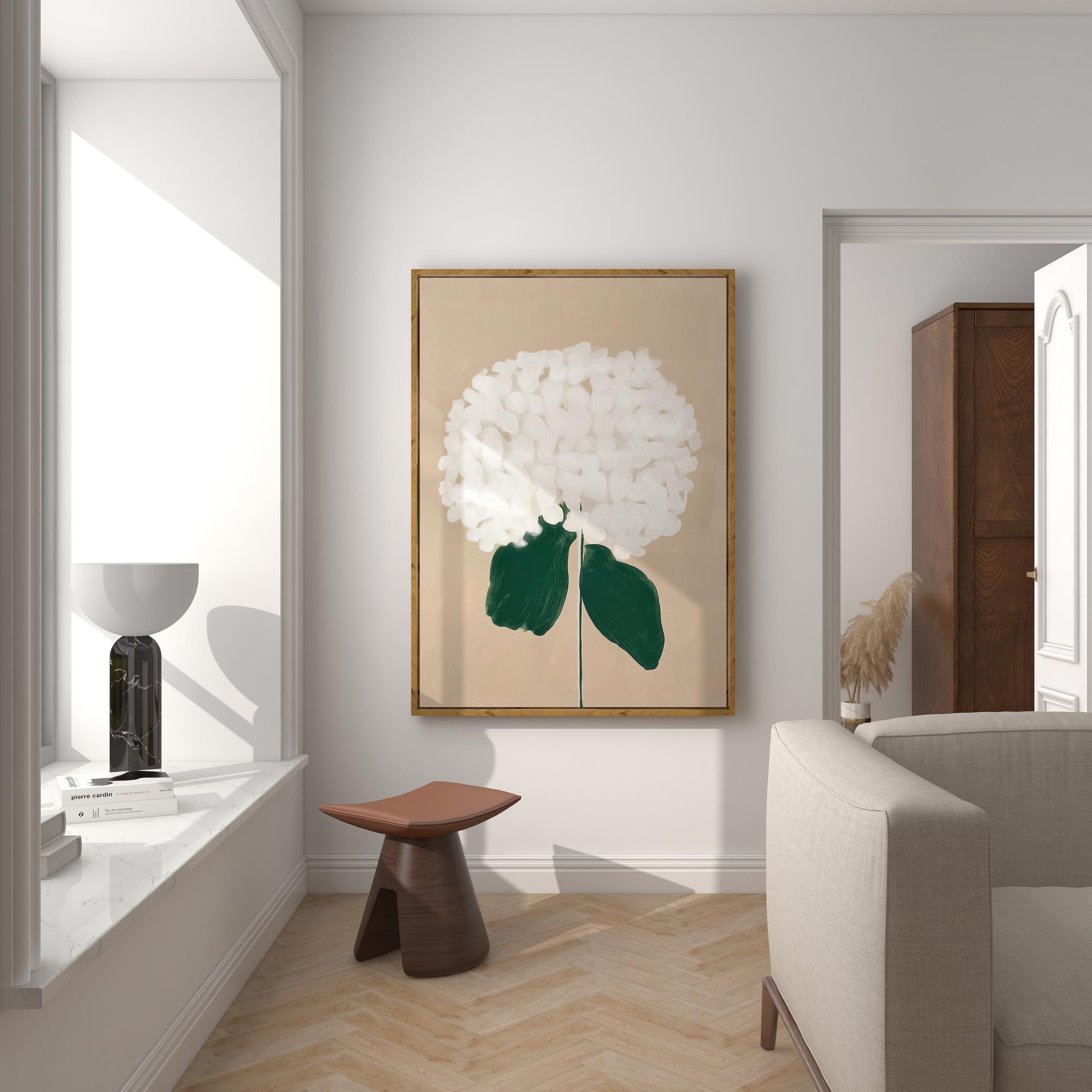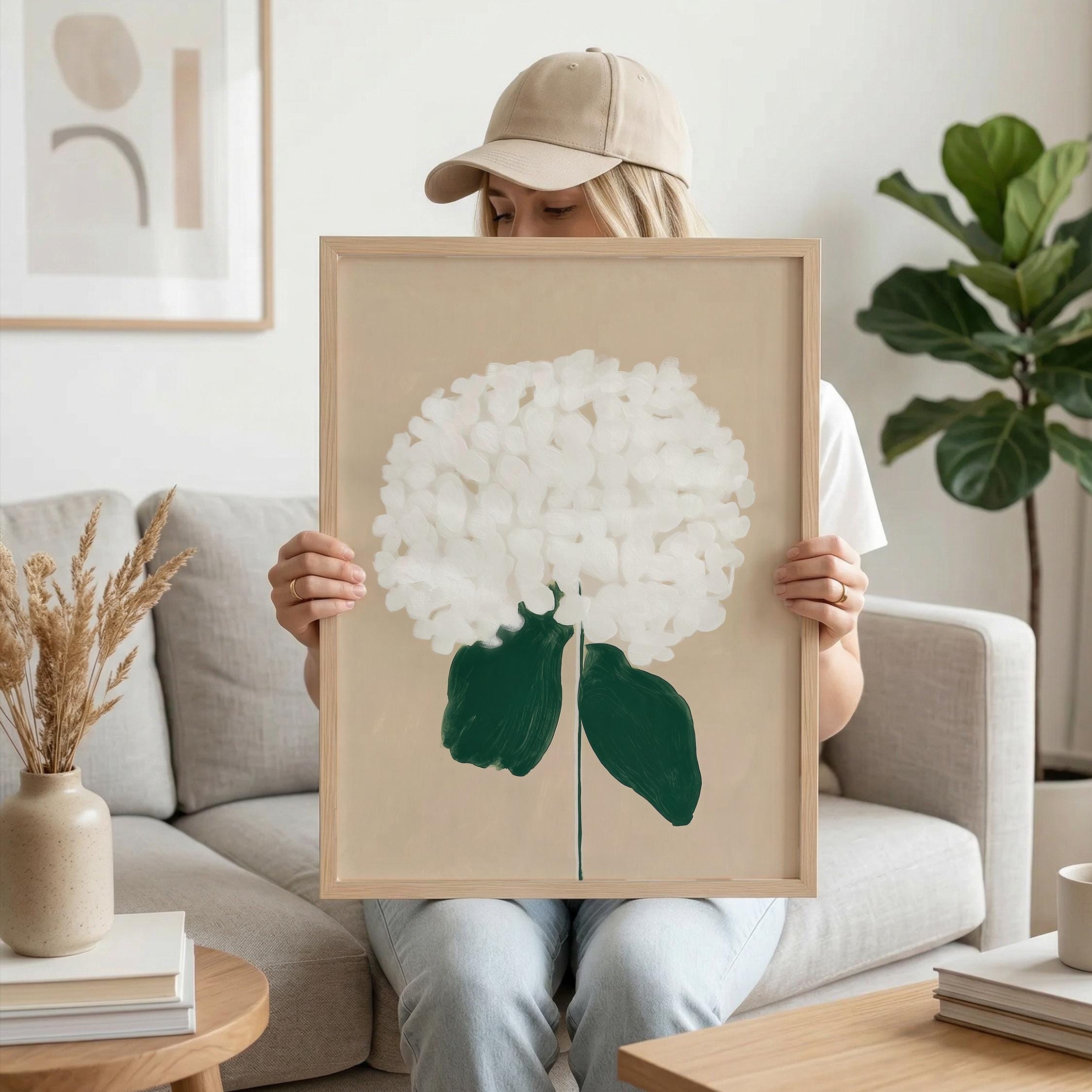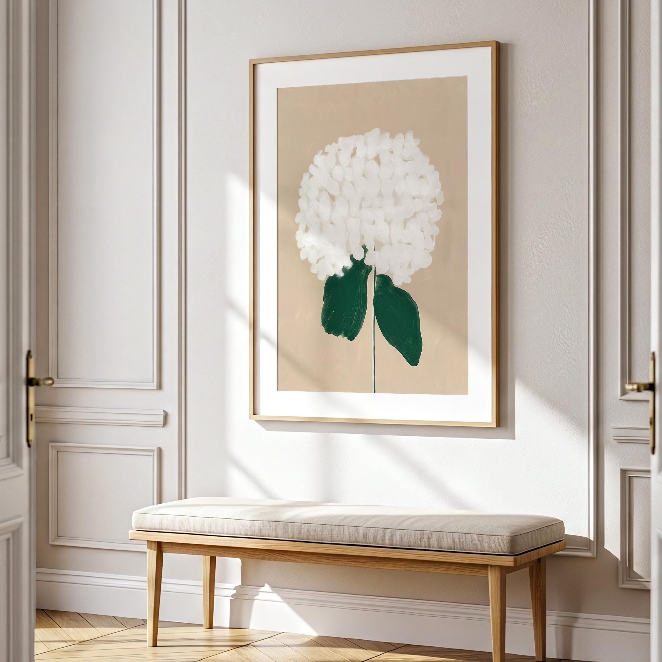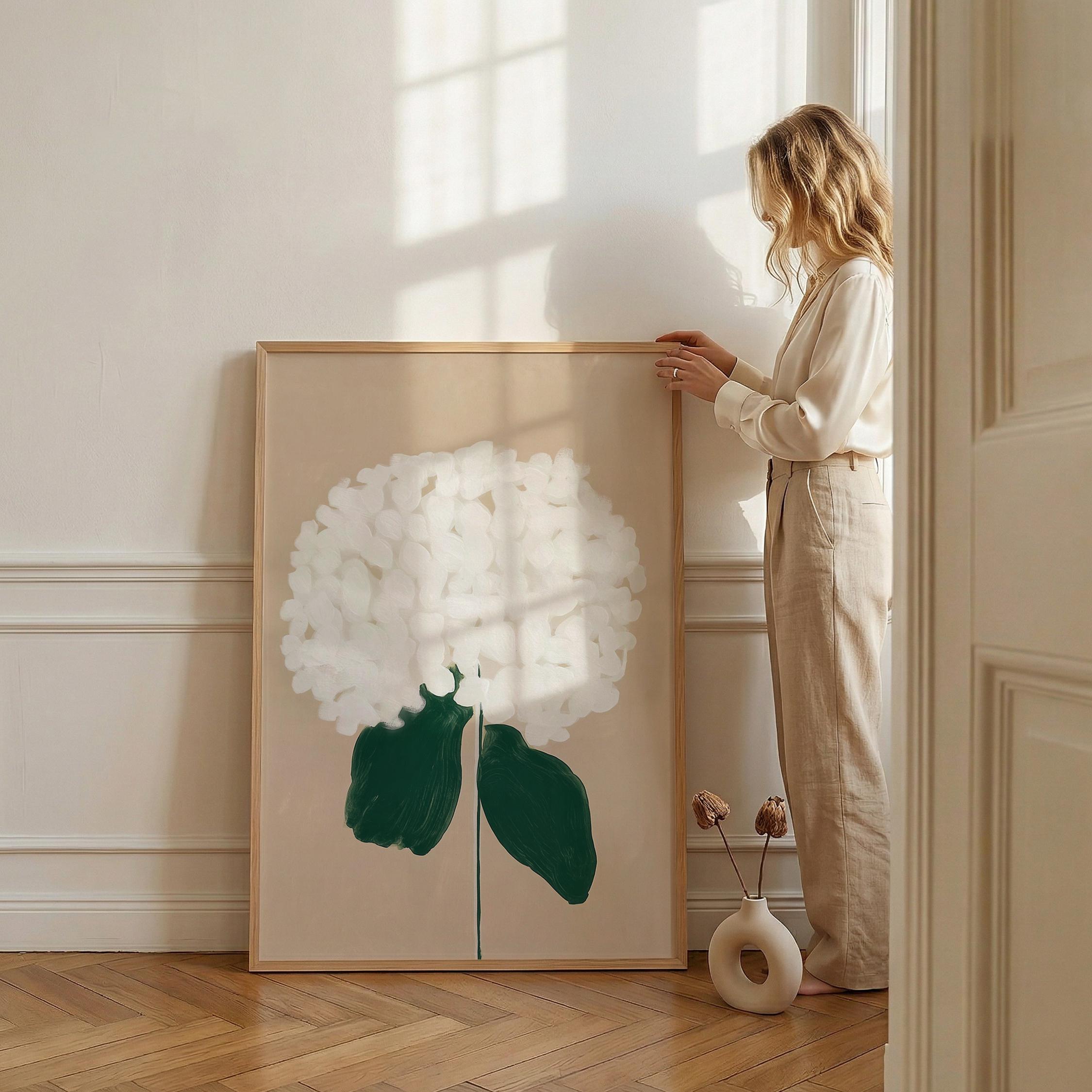 a serene white hydrangea painting, perfect for a cozy bedroom and a great gift for a housewarming gift.
