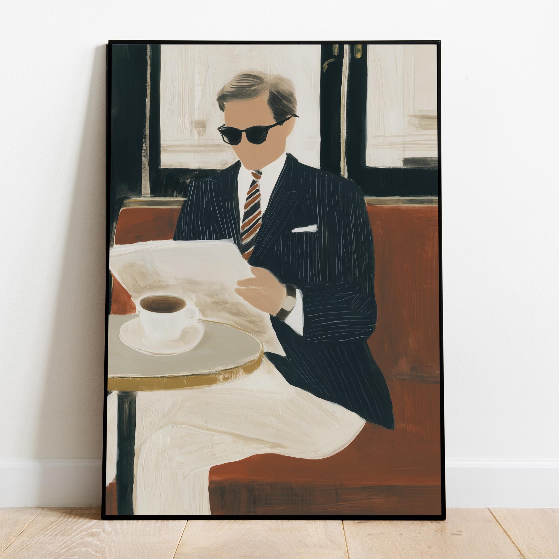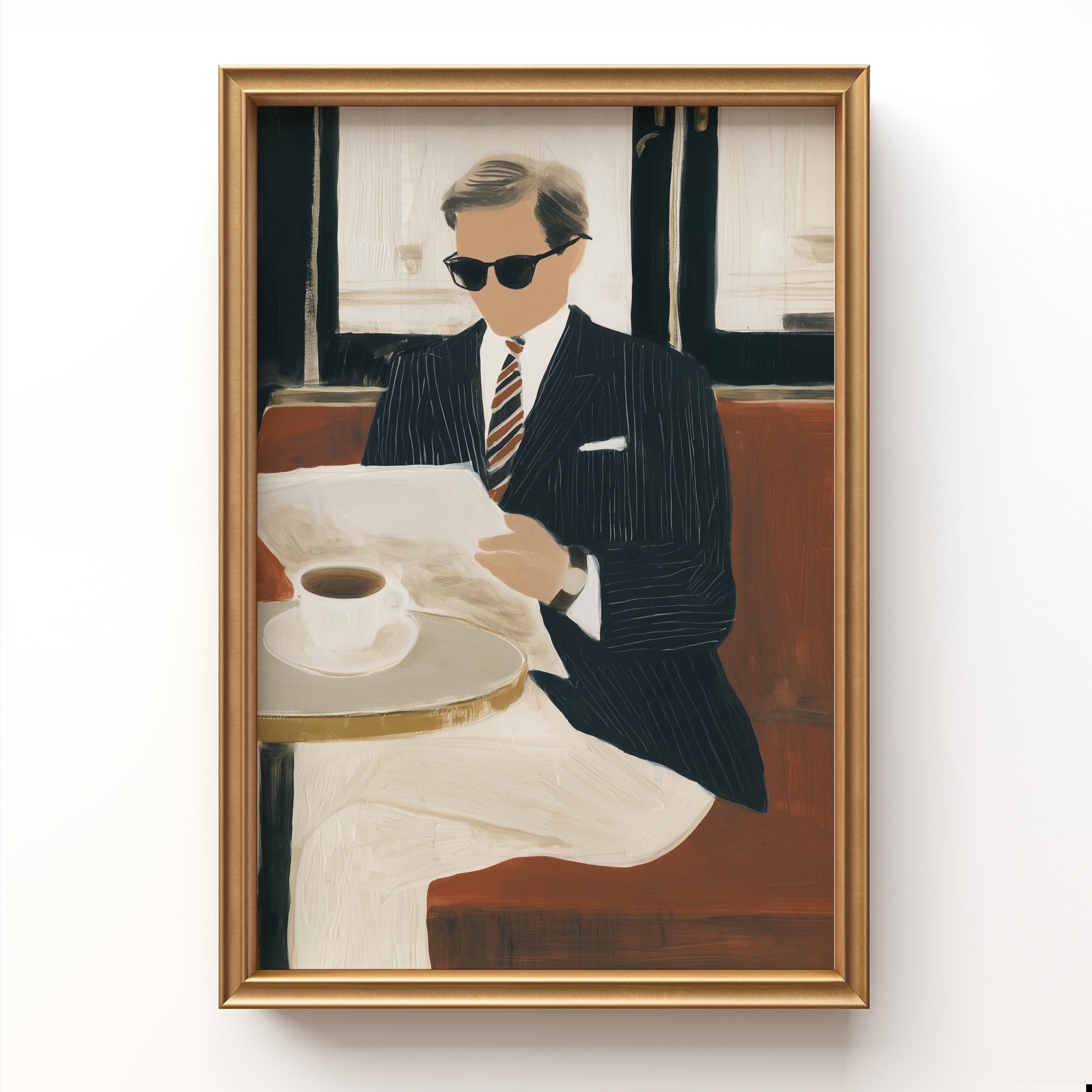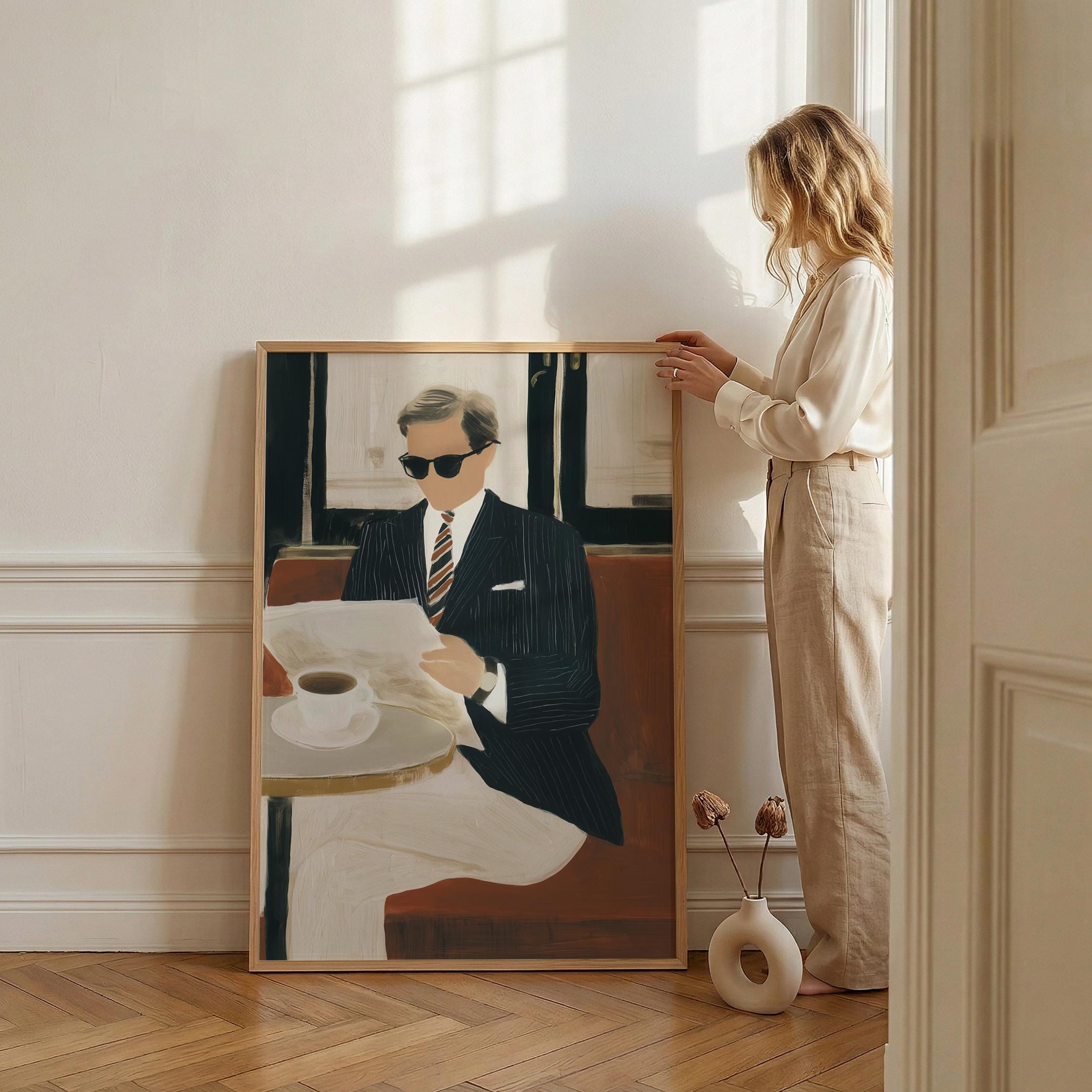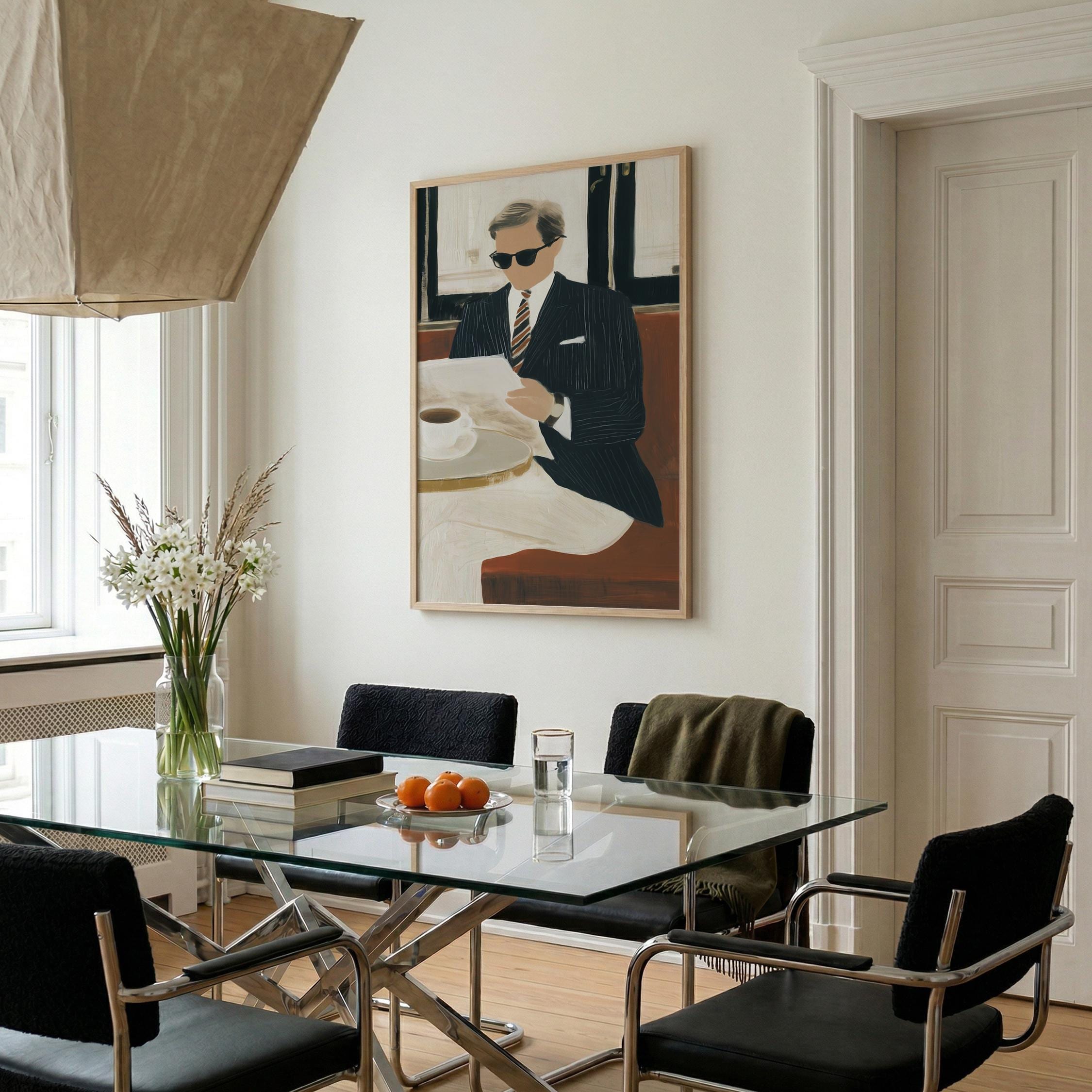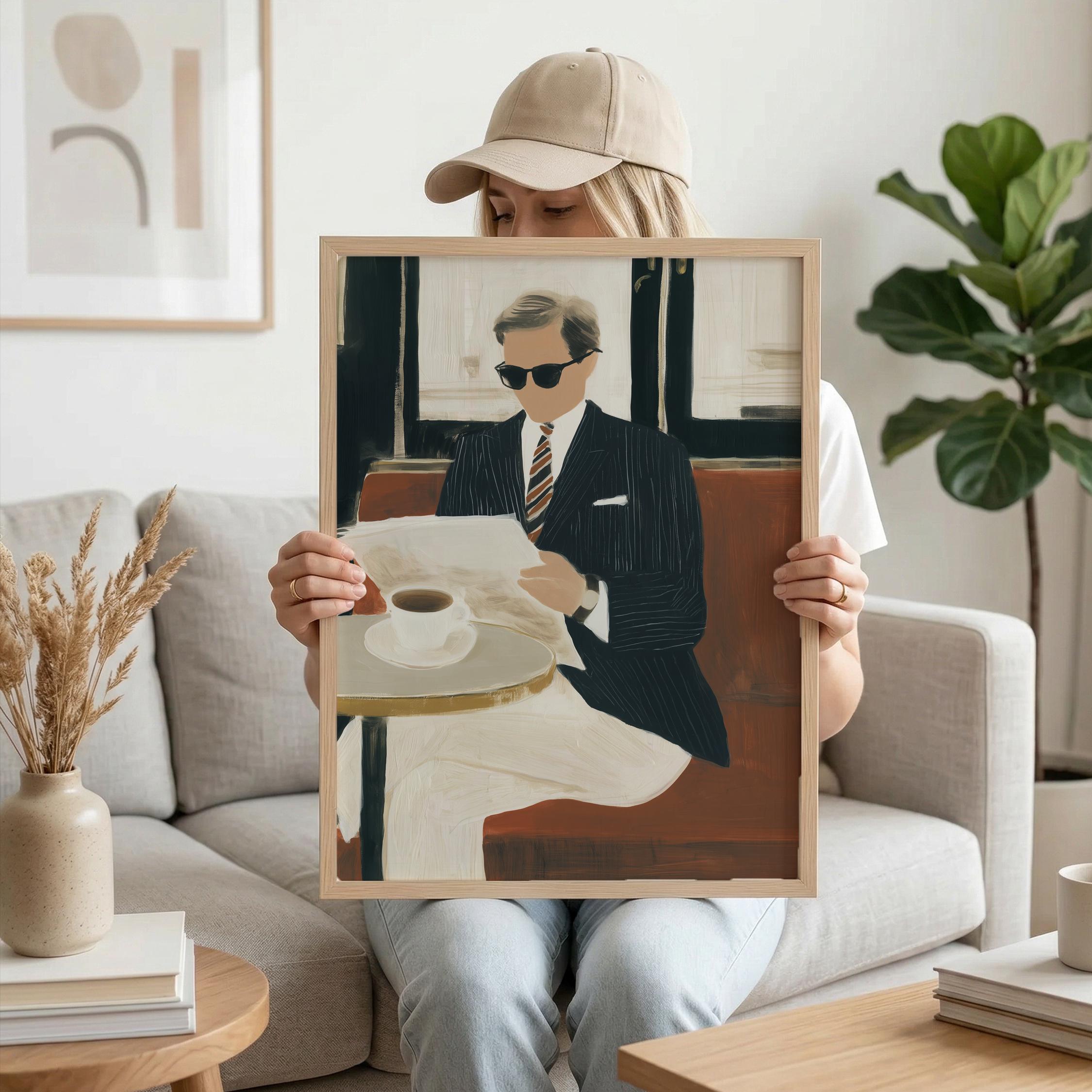 a stylish gentleman enjoying his coffee, perfect for a cozy living room and a great gift for housewarming celebrations.