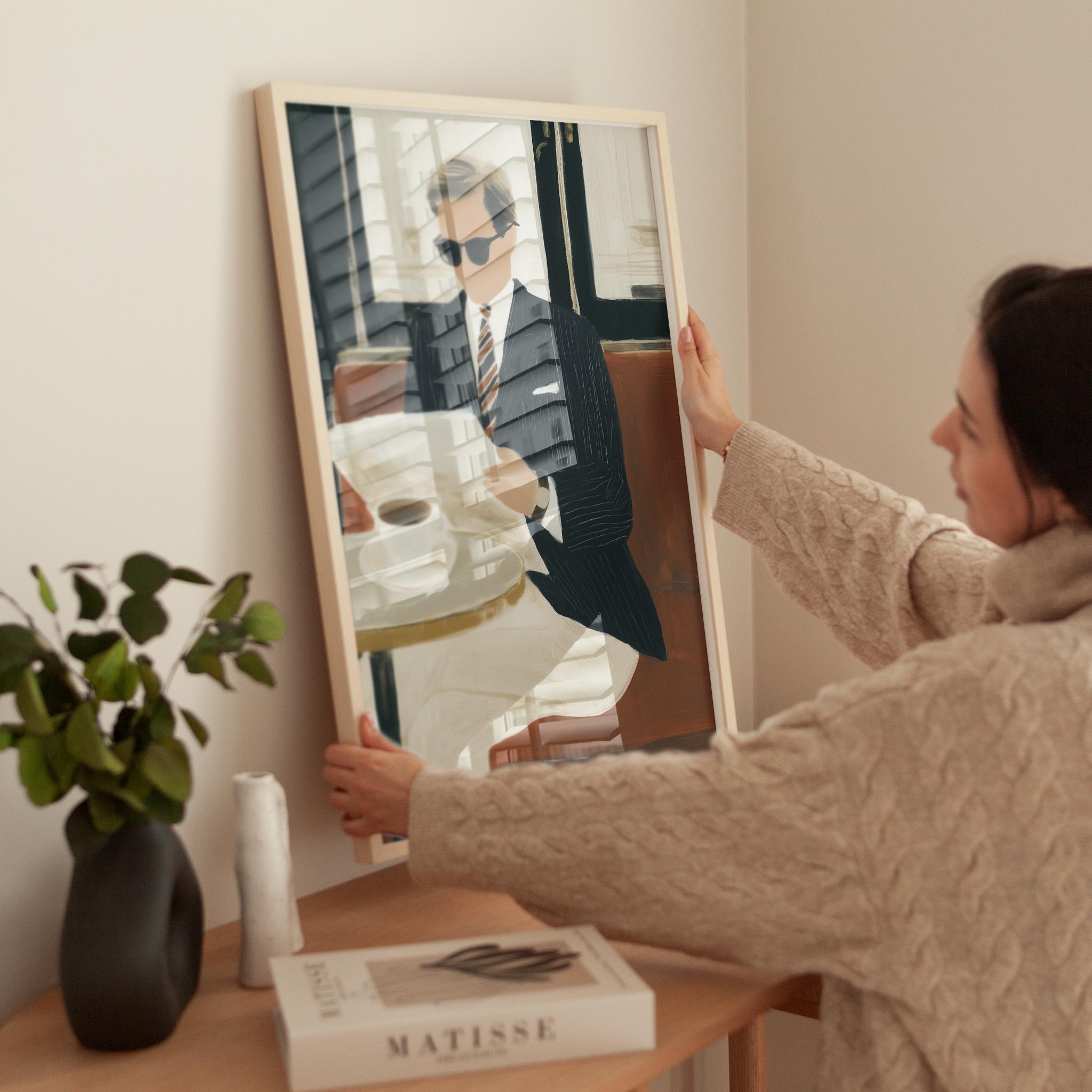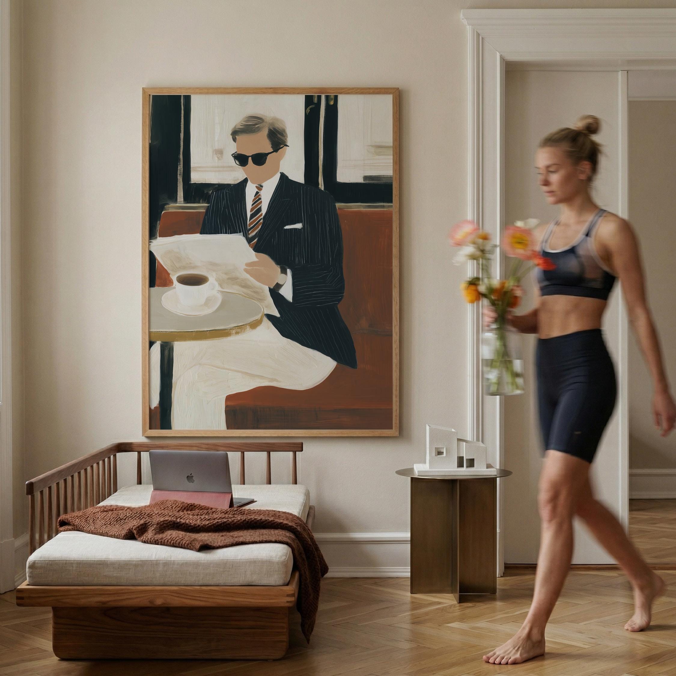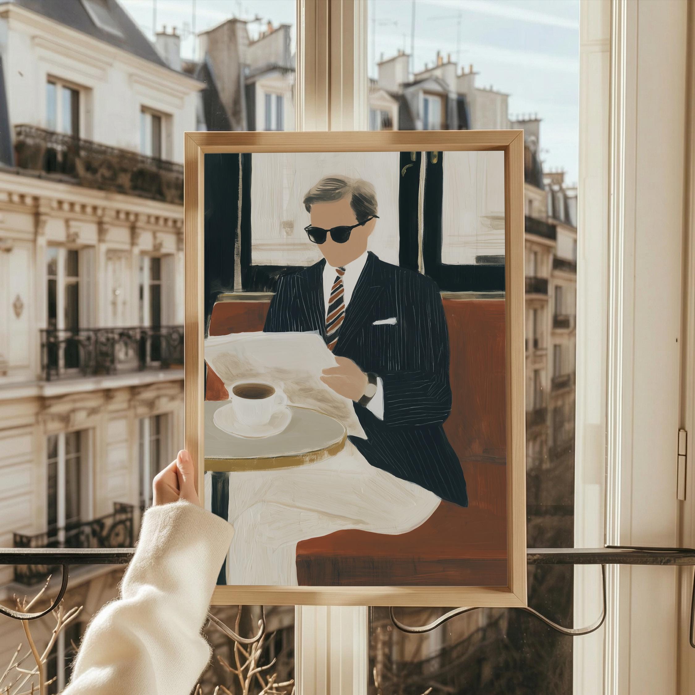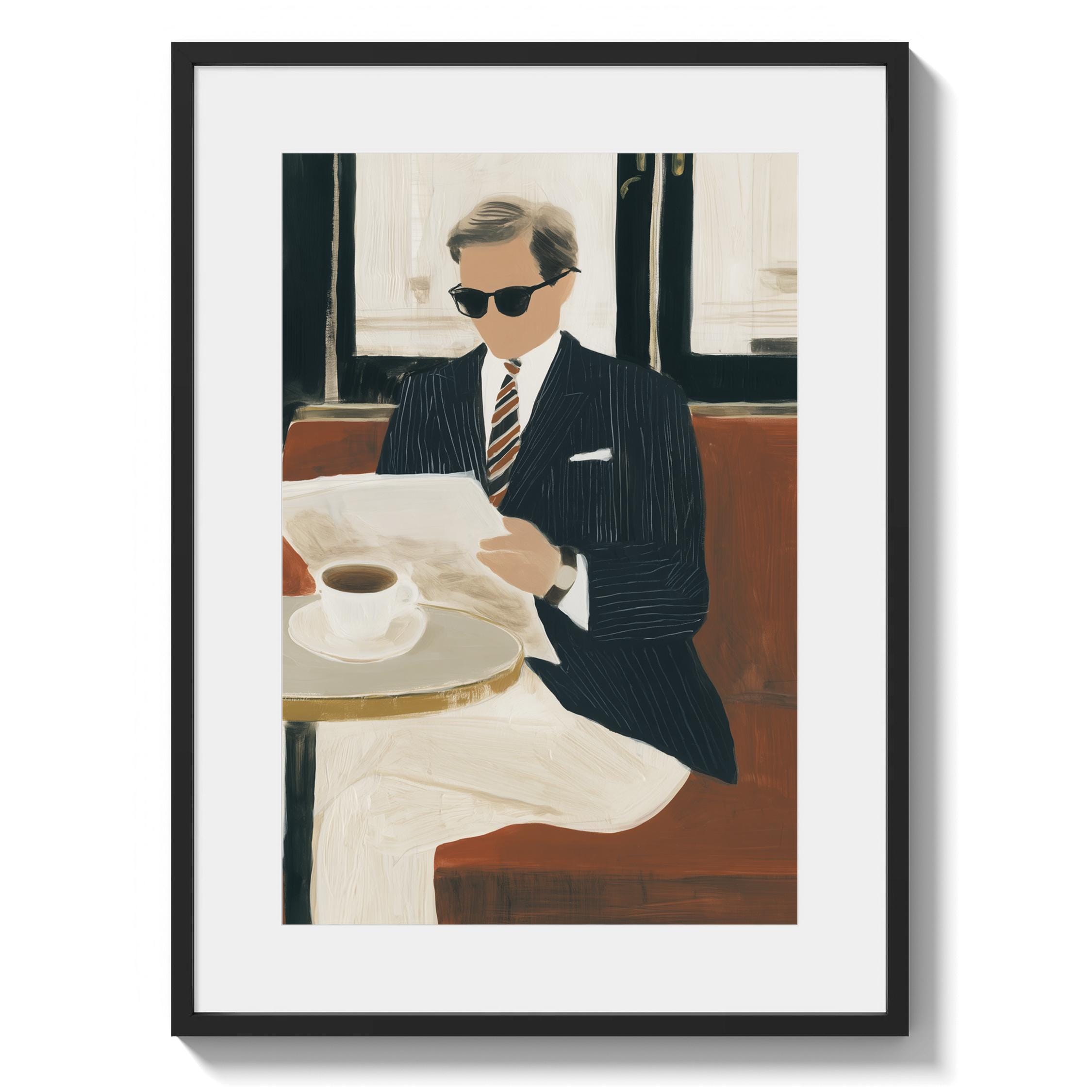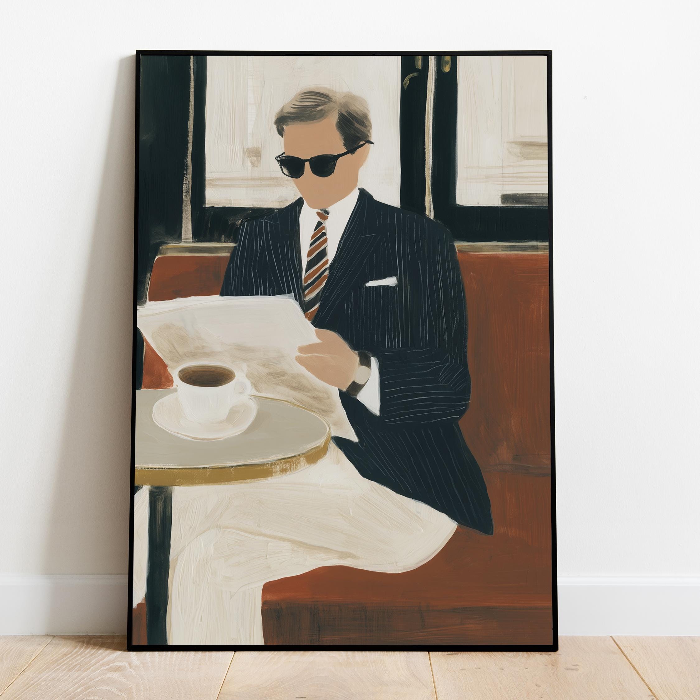 a stylish gentleman enjoying his coffee, perfect for a cozy living room and a great gift for housewarming celebrations.