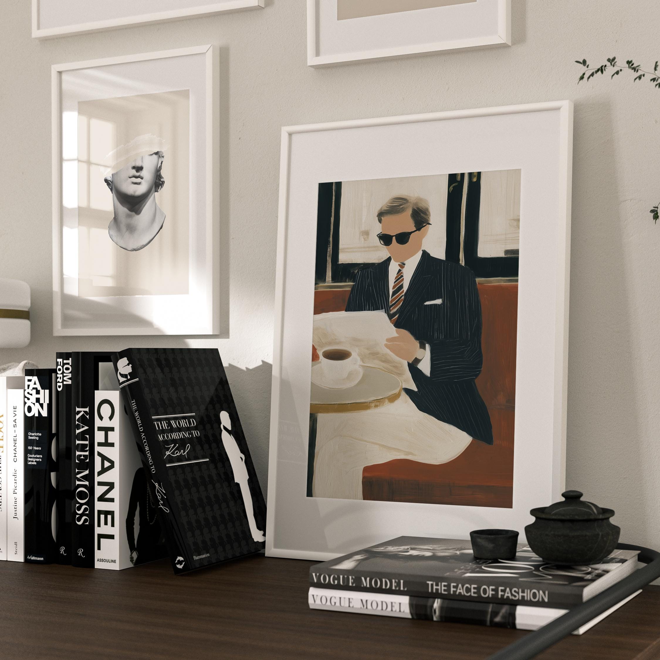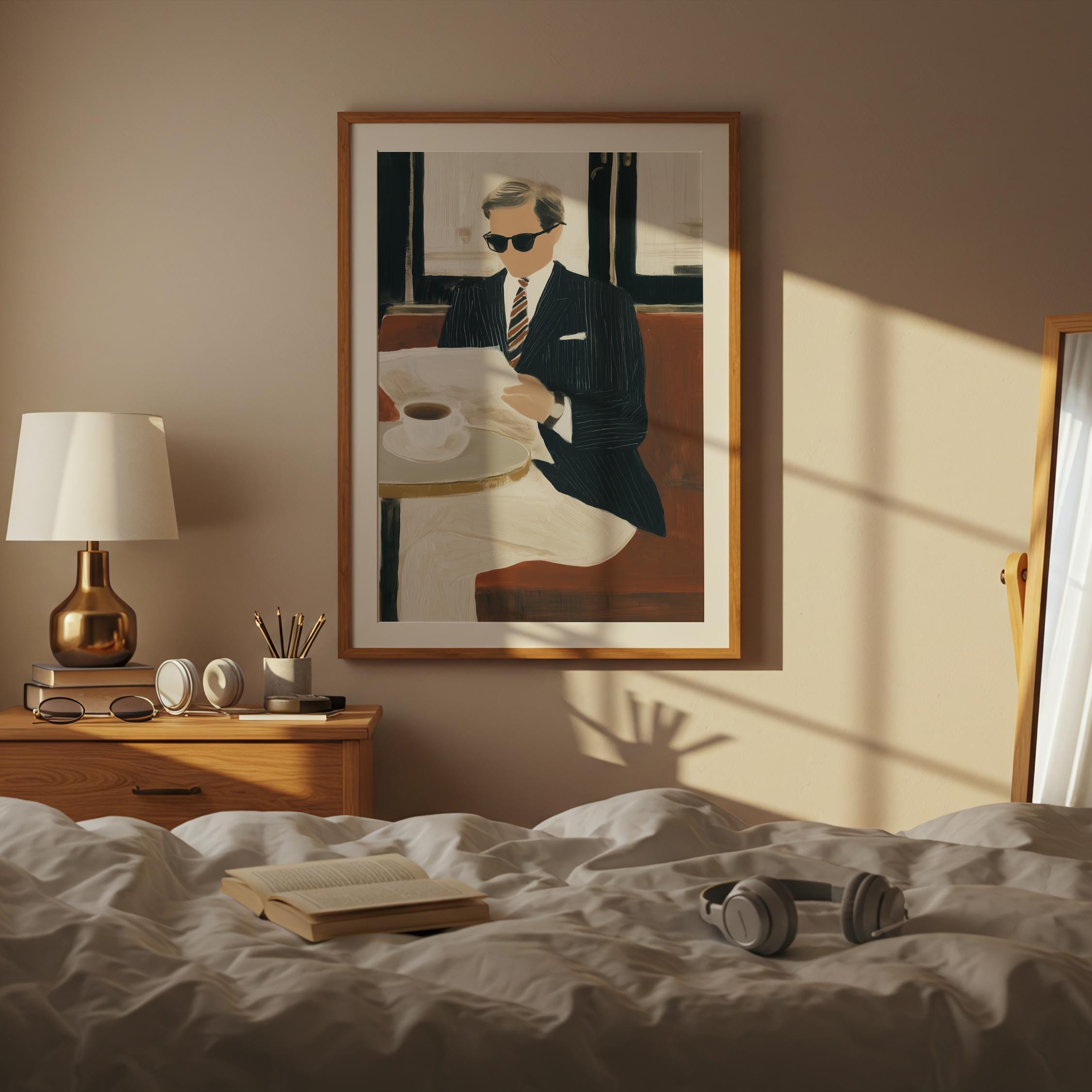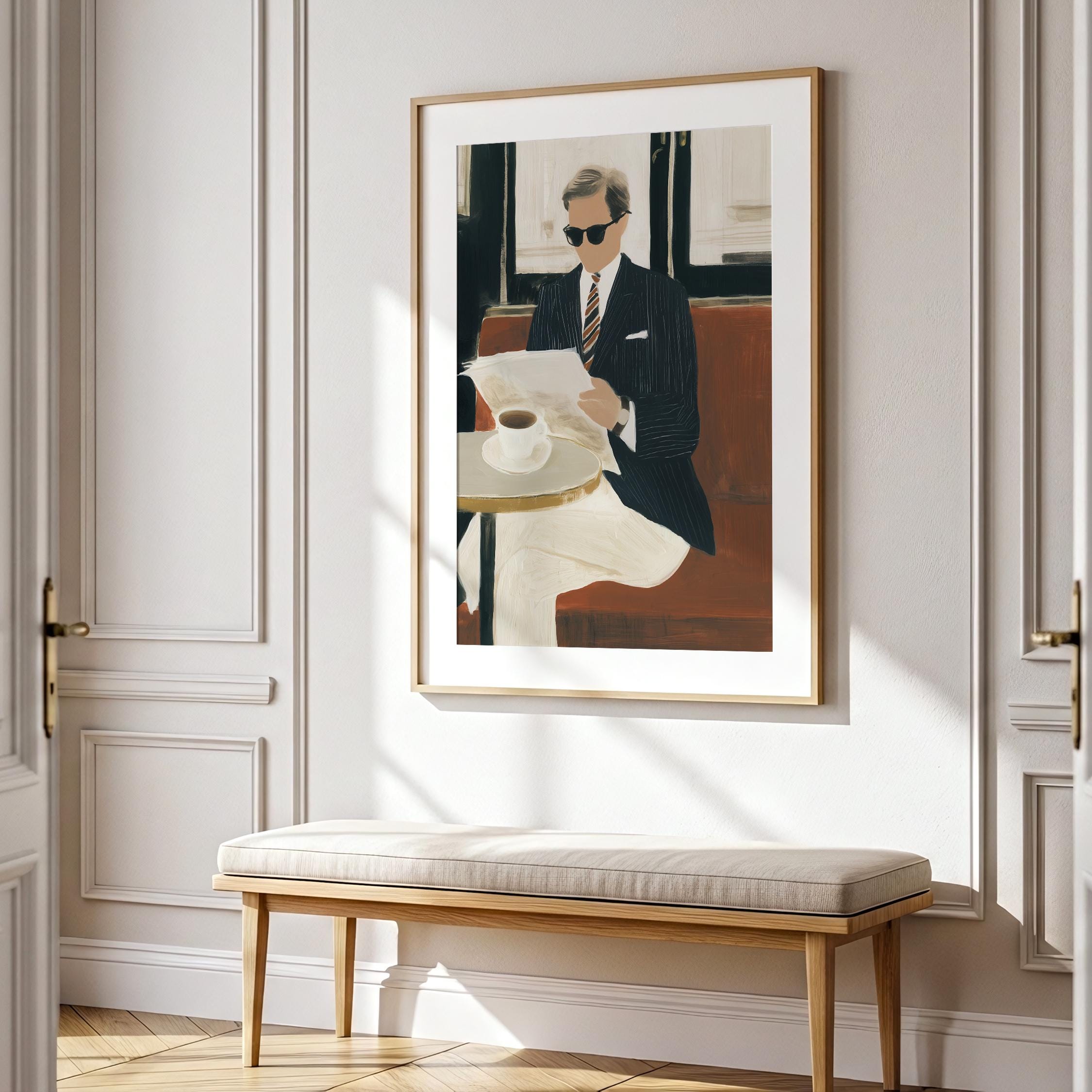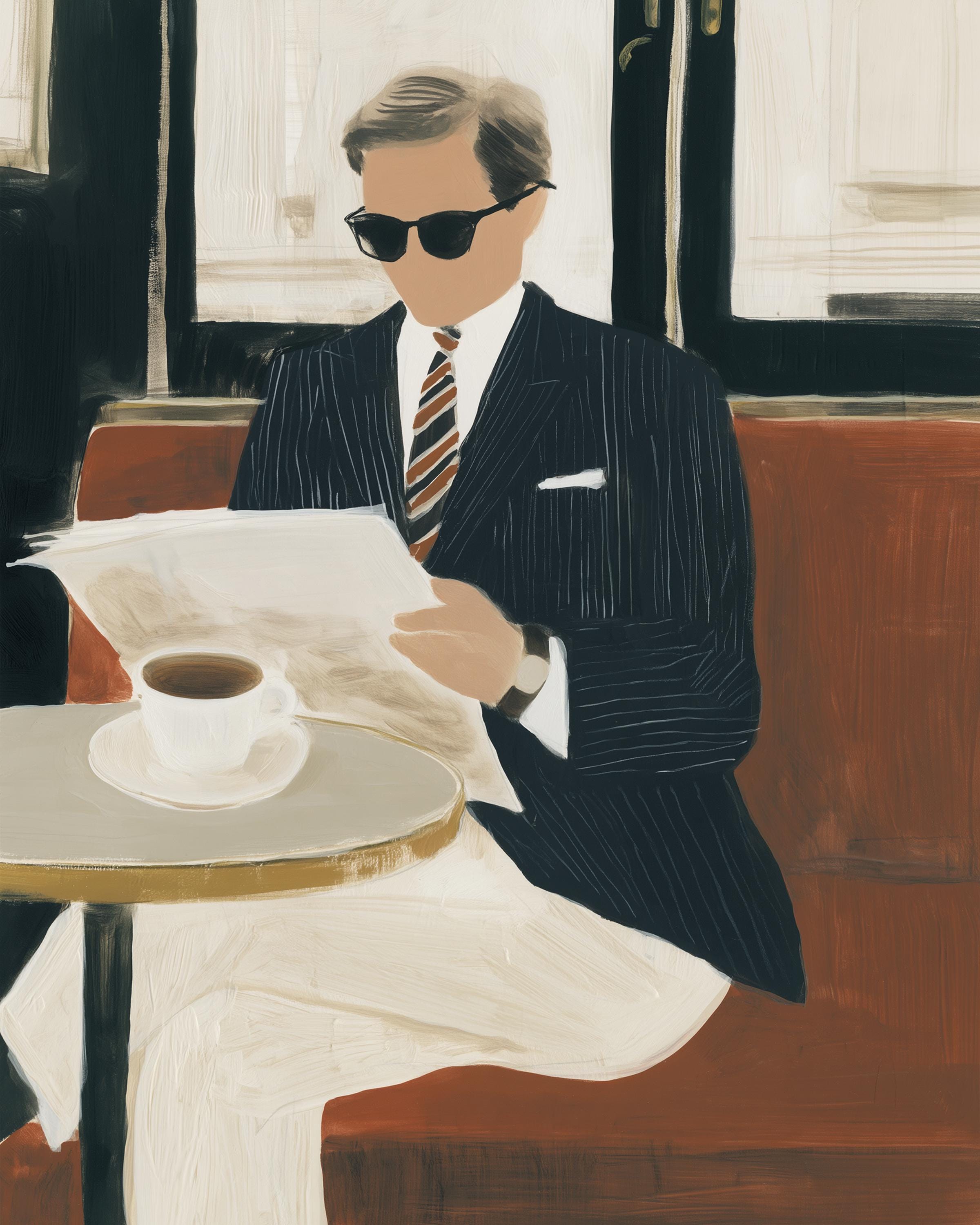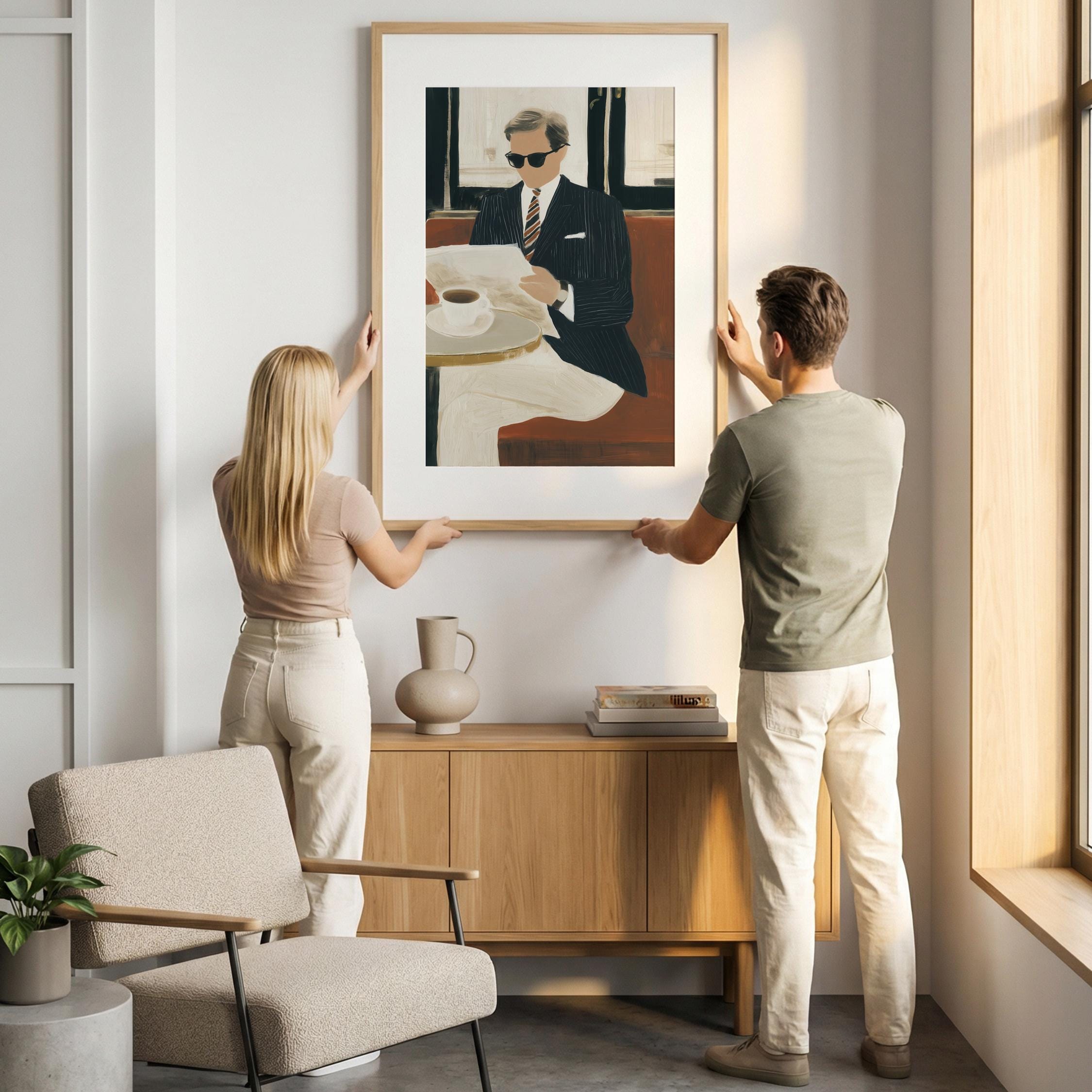 a stylish gentleman enjoying his coffee, perfect for a cozy living room and a great gift for housewarming celebrations.