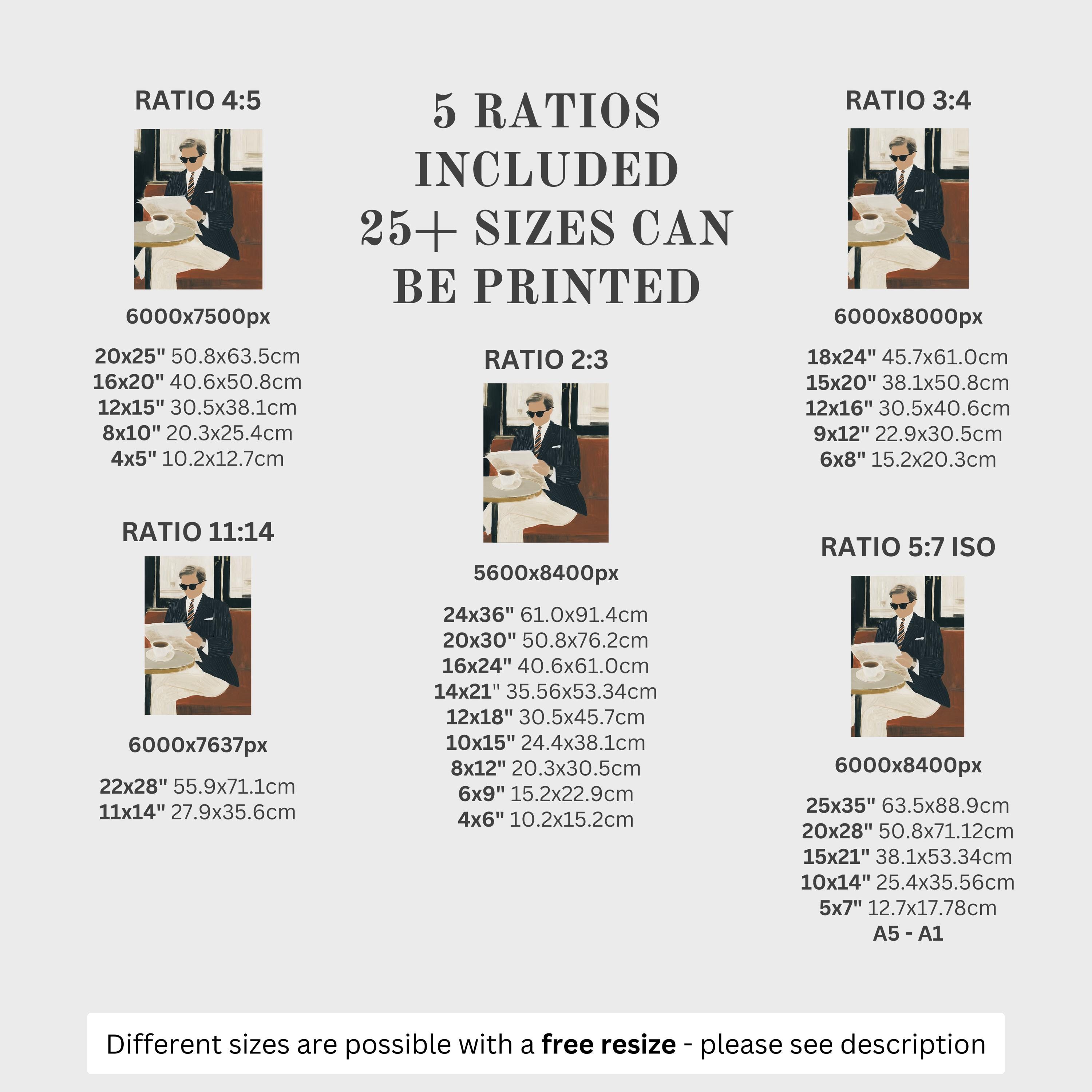 5 HIGH-QUALITY 300 DPI JPGs sized to fit +25 different frames in size and diverse ratios: