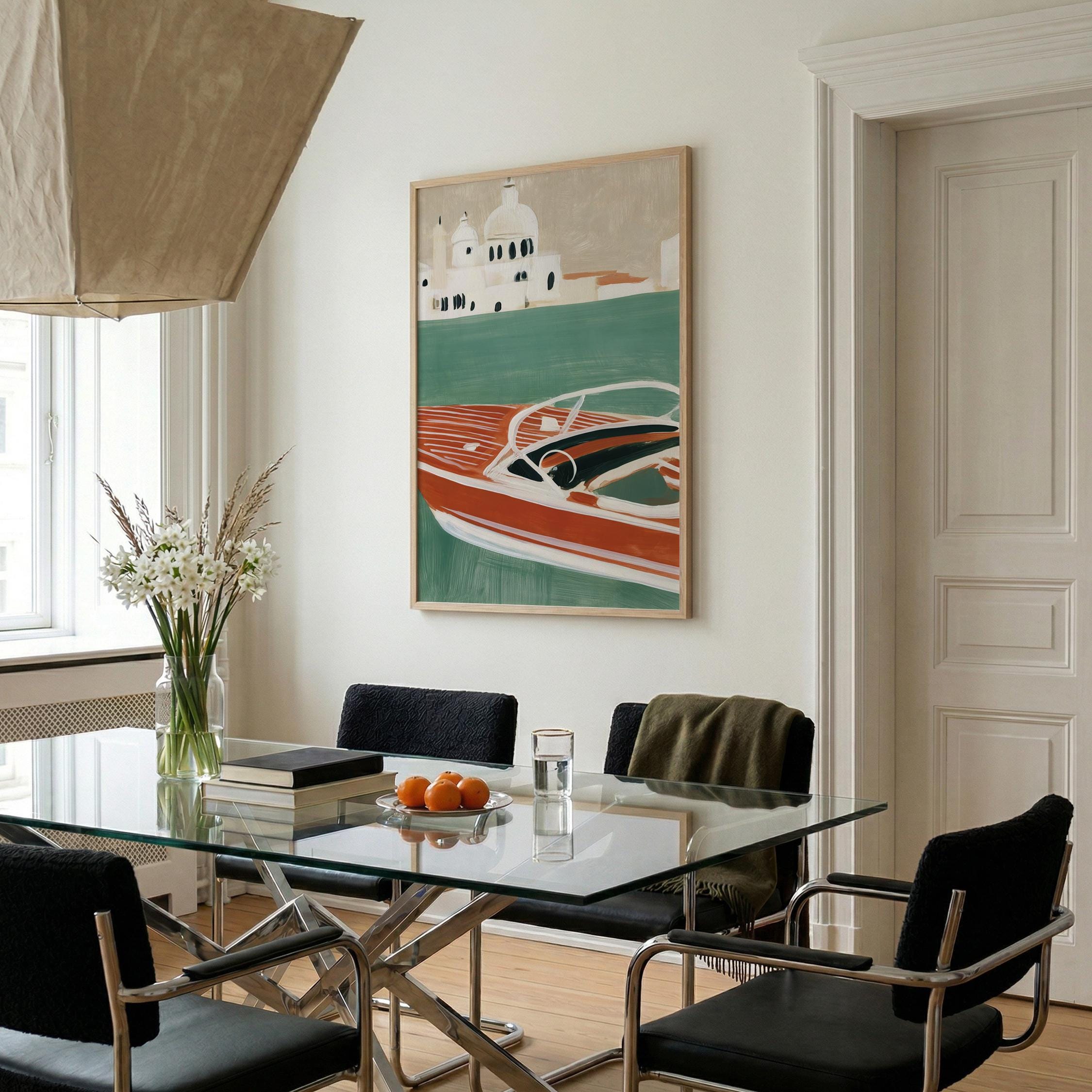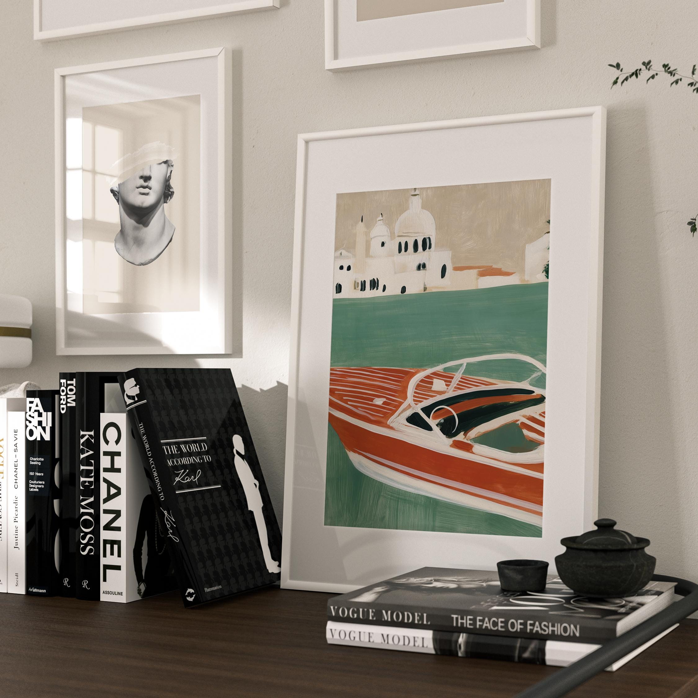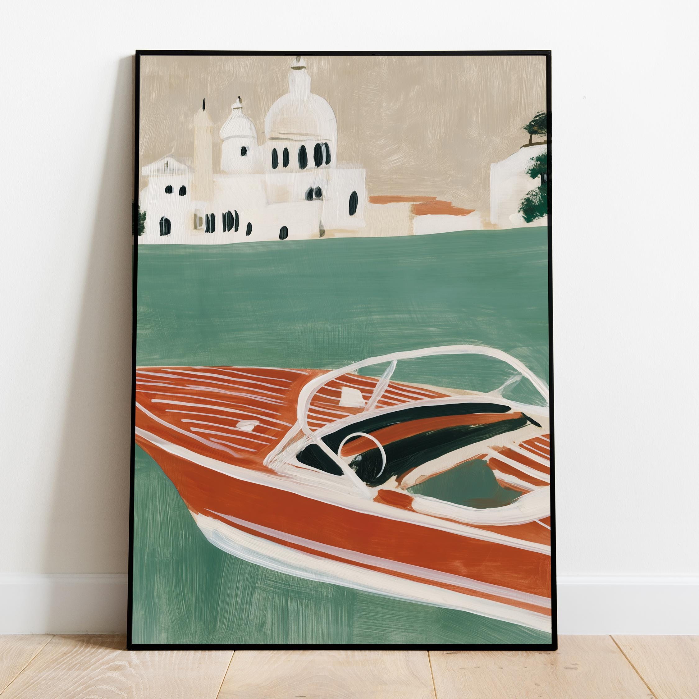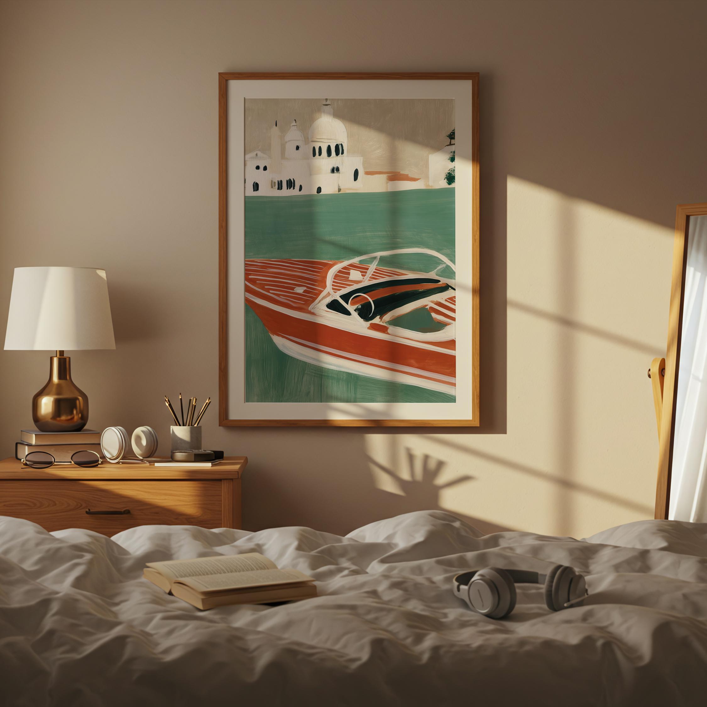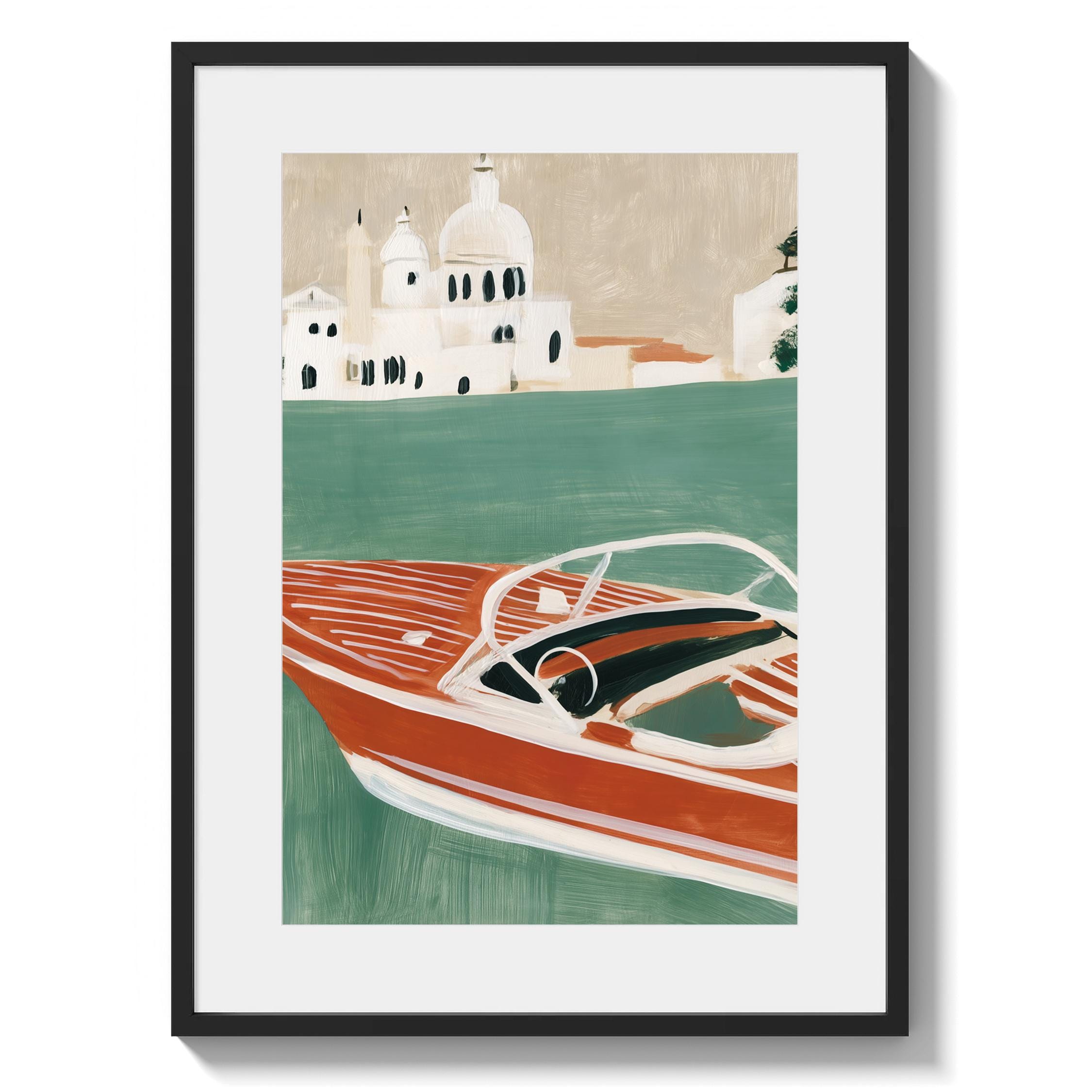 a stunning depiction of a Riva boat, perfect for a coastal-themed living room and a great gift for a summer housewarming gift.