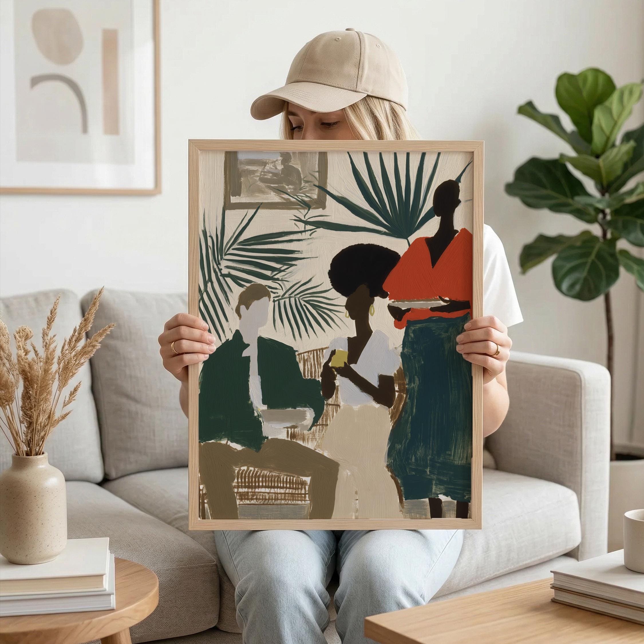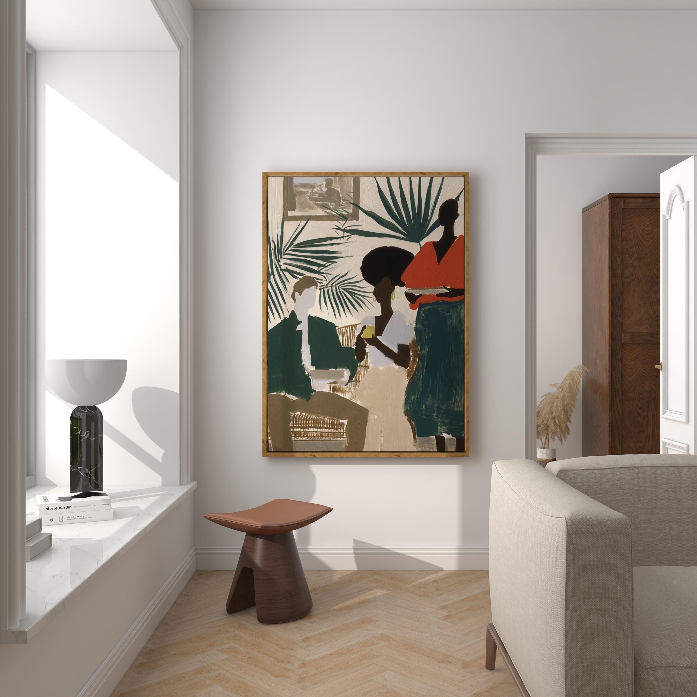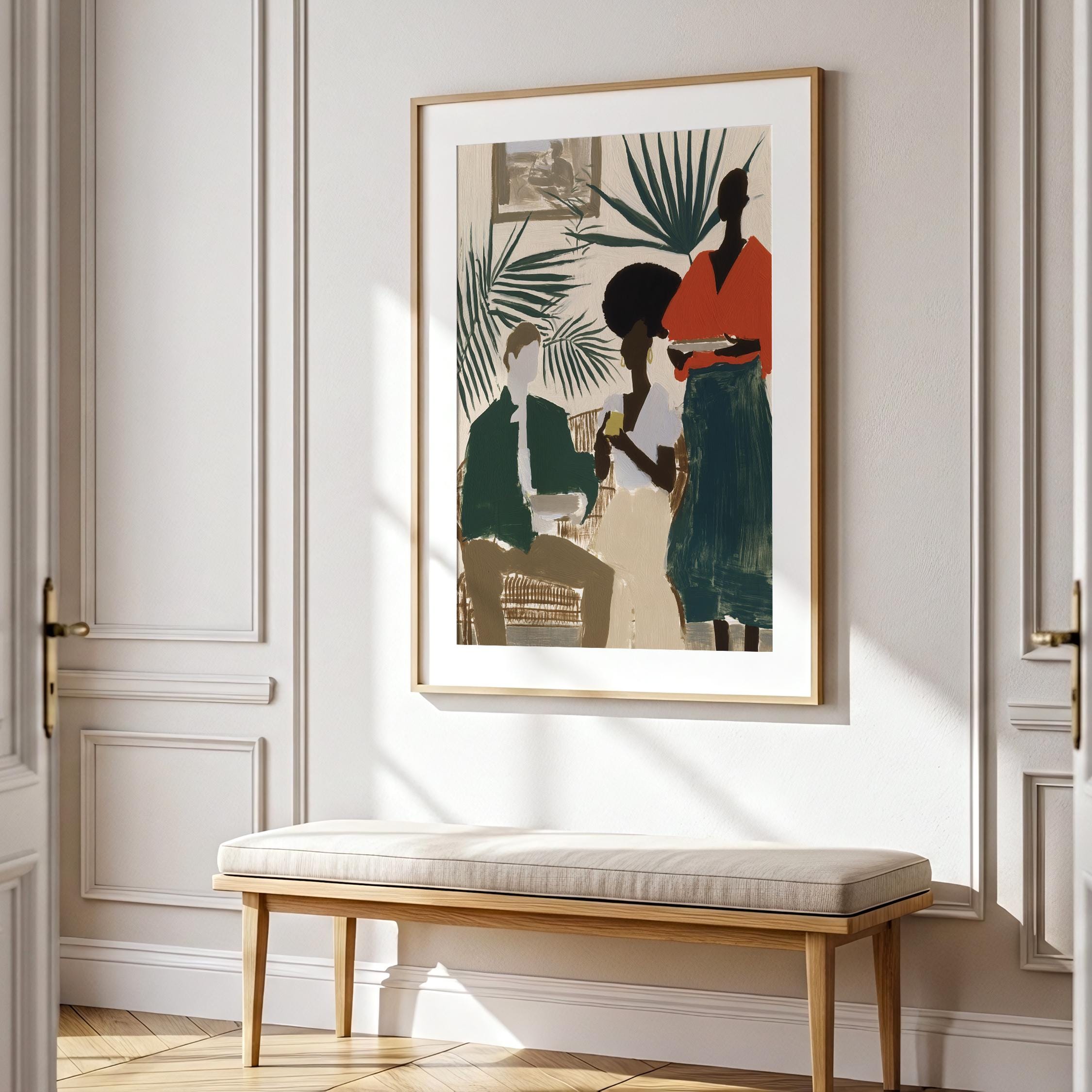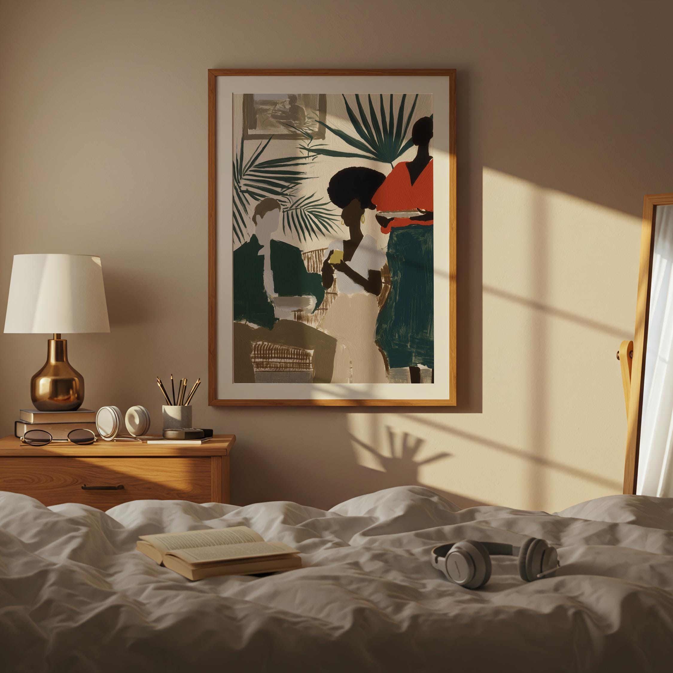 a vibrant afrohemian scene, perfect for living room and a great gift for housewarming gift.