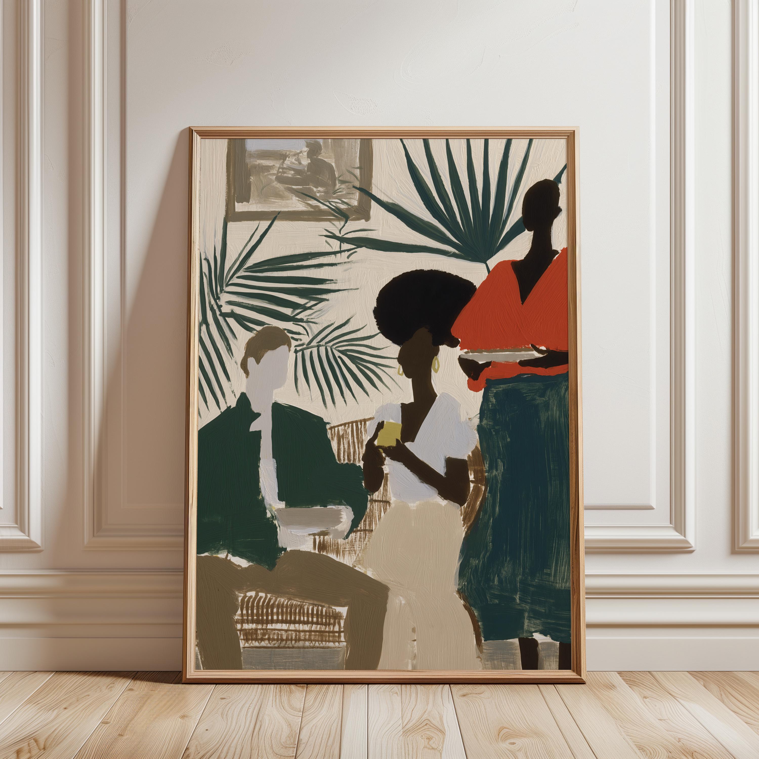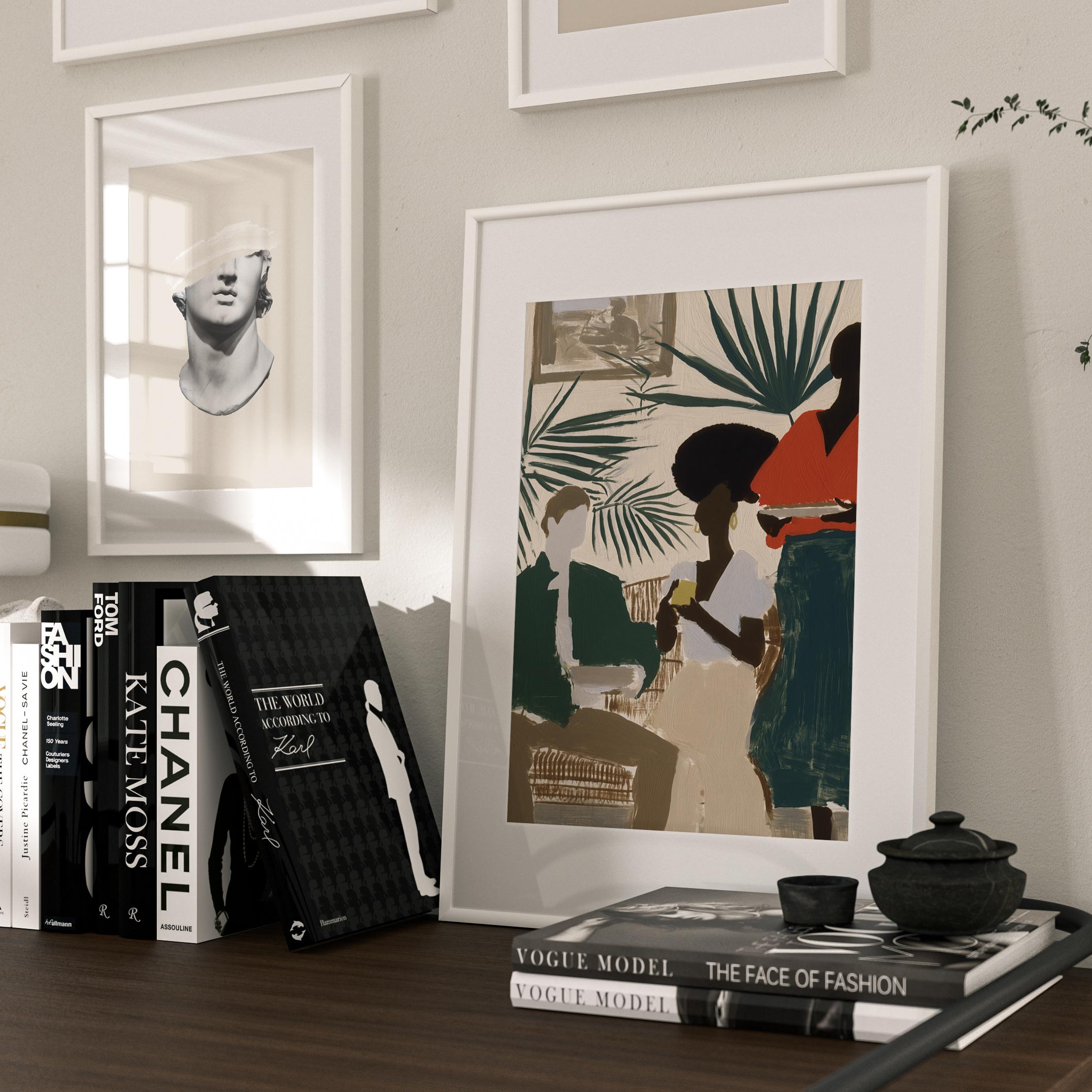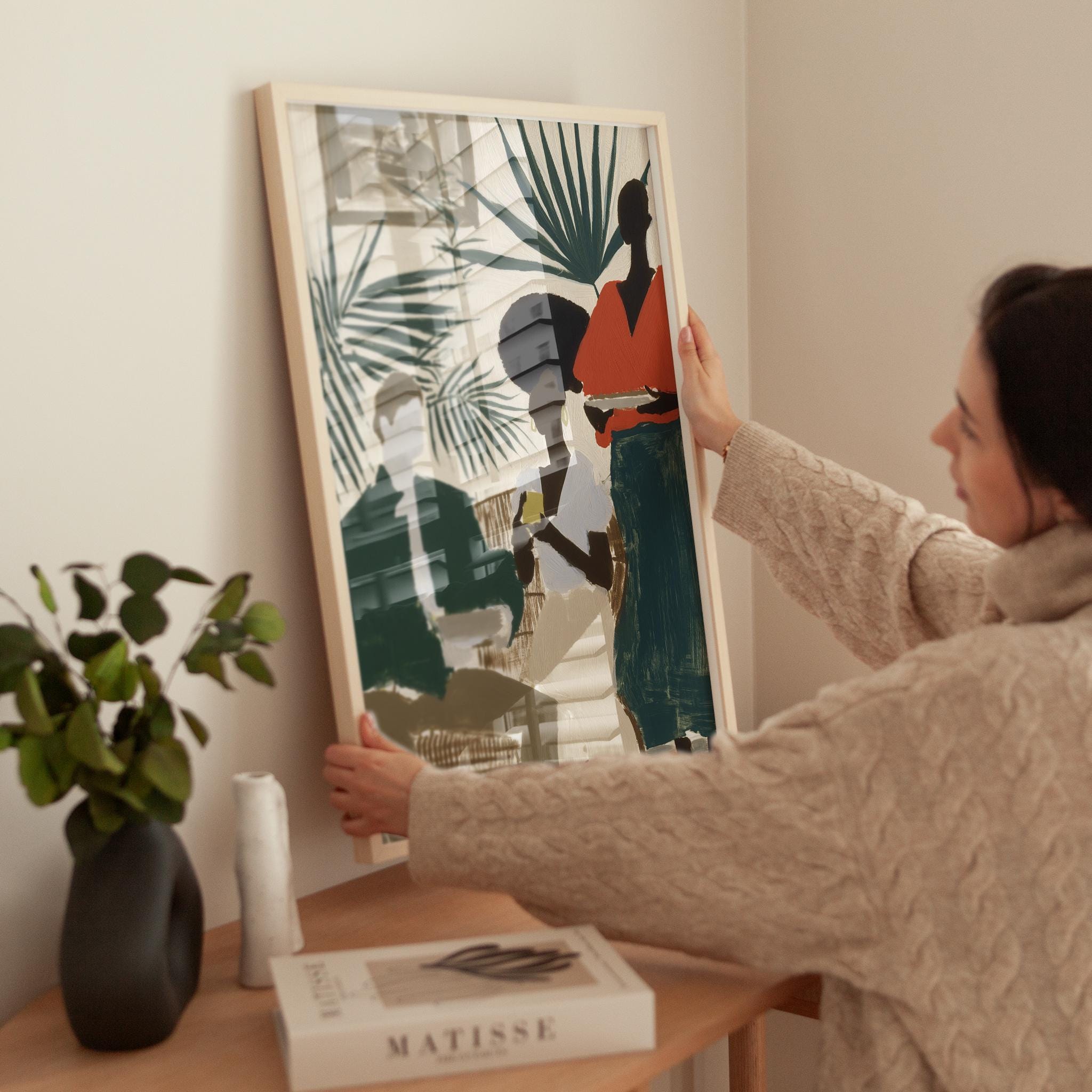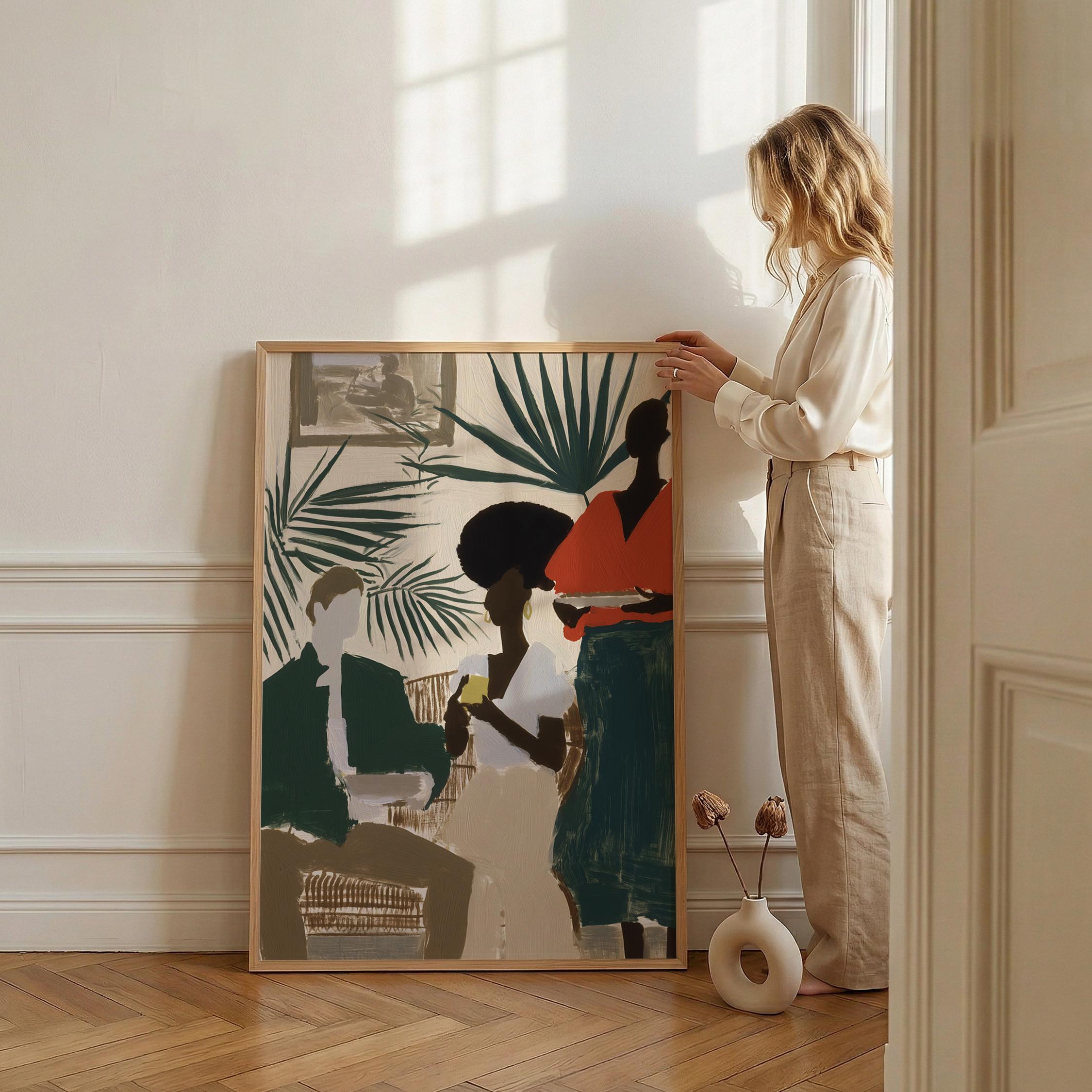 a vibrant afrohemian scene, perfect for living room and a great gift for housewarming gift.