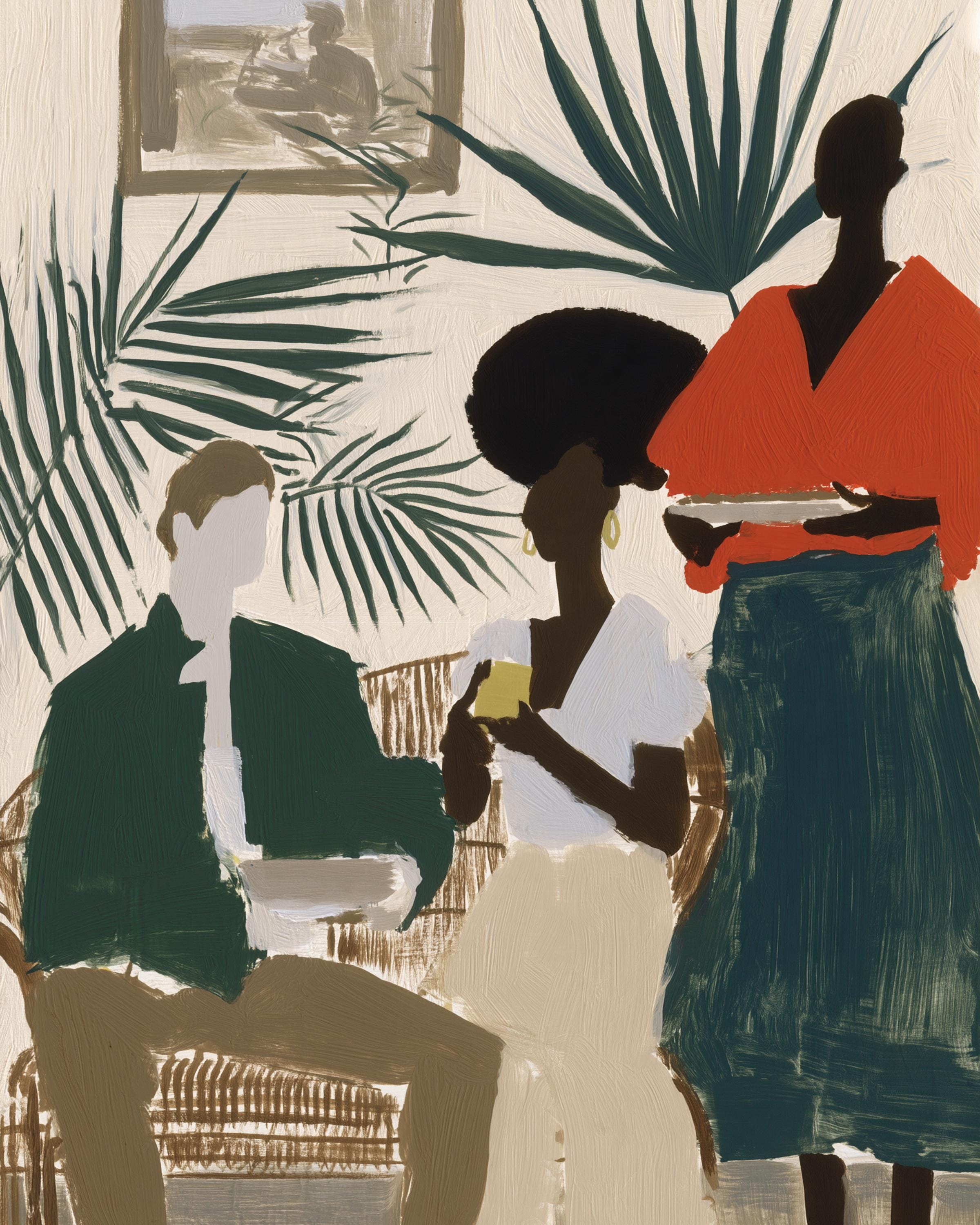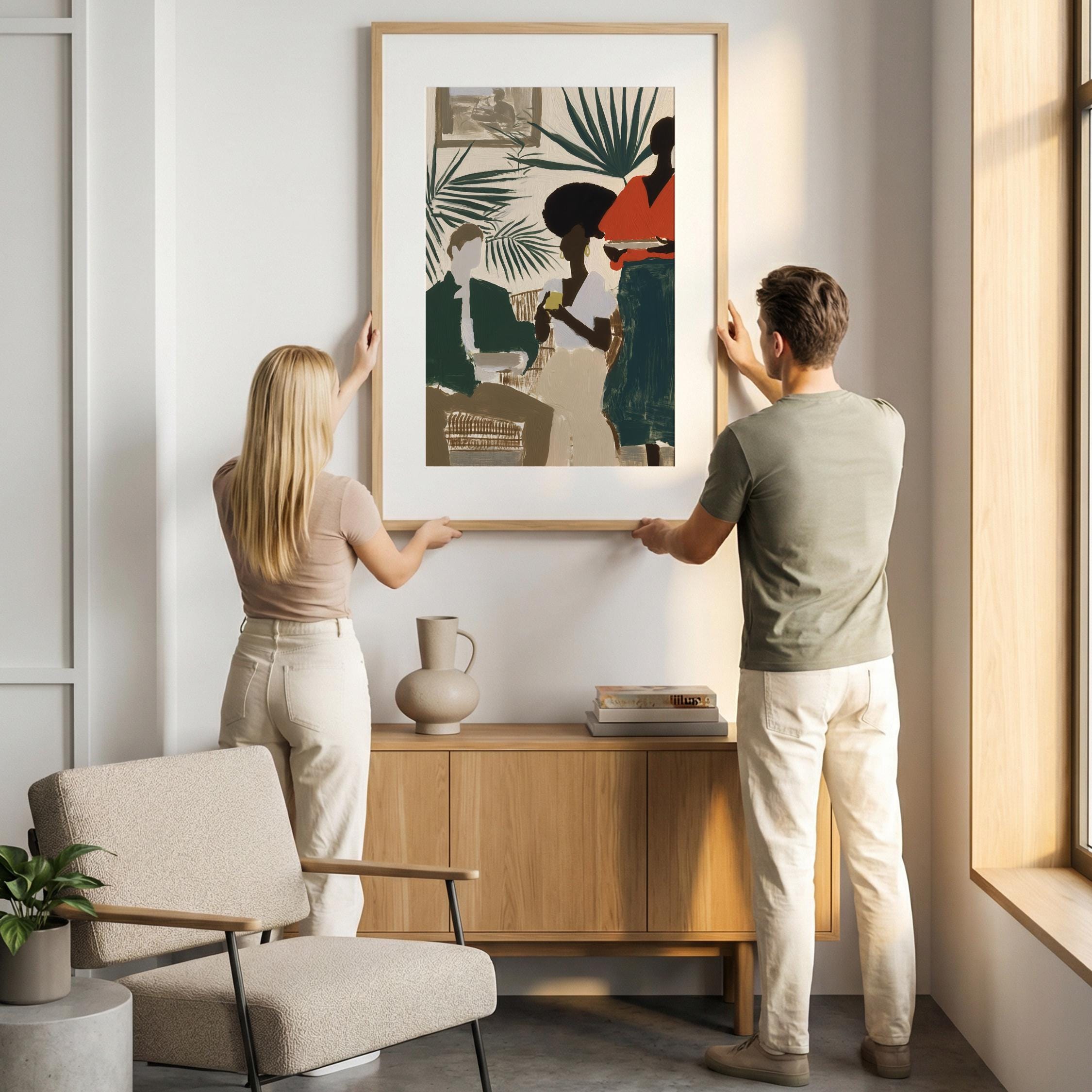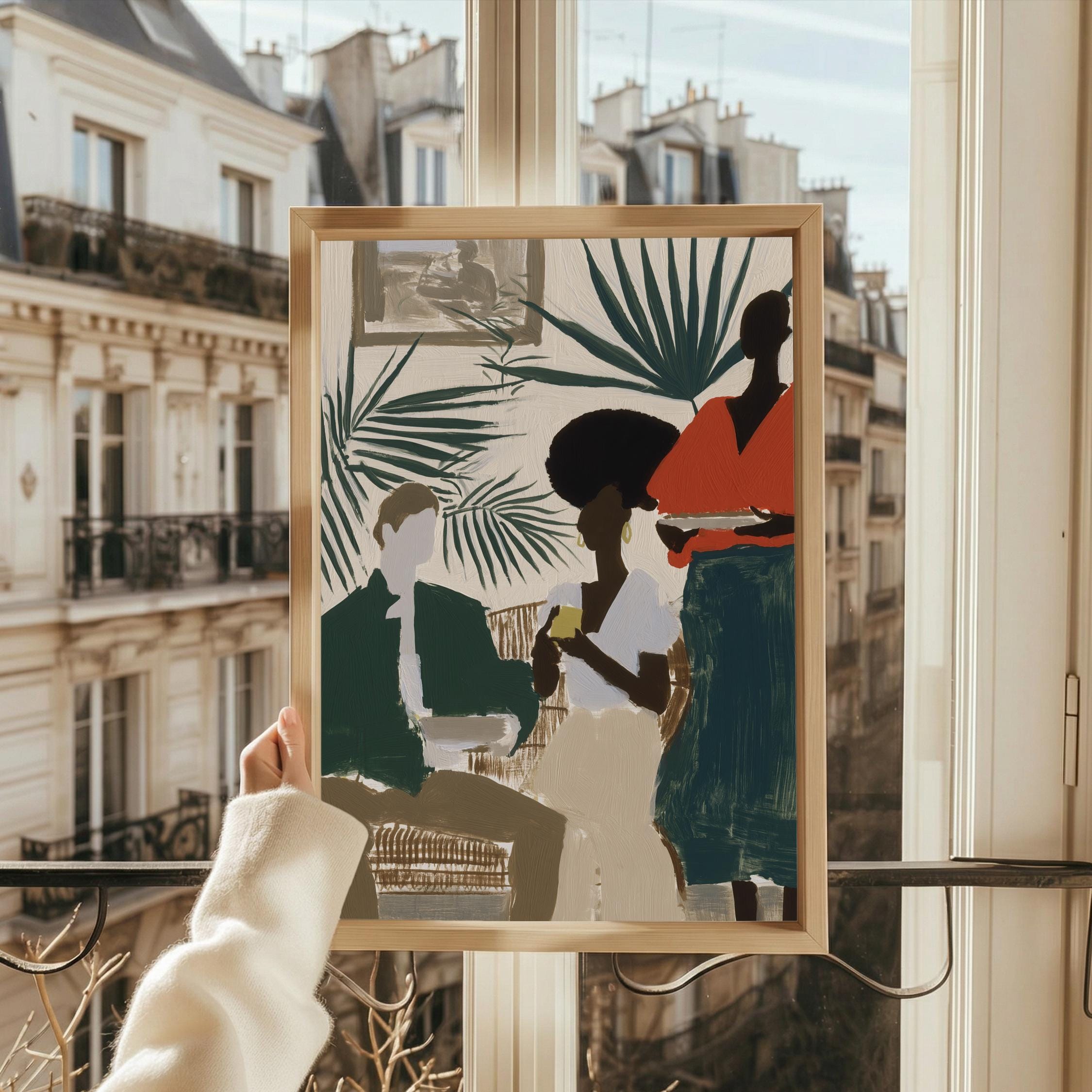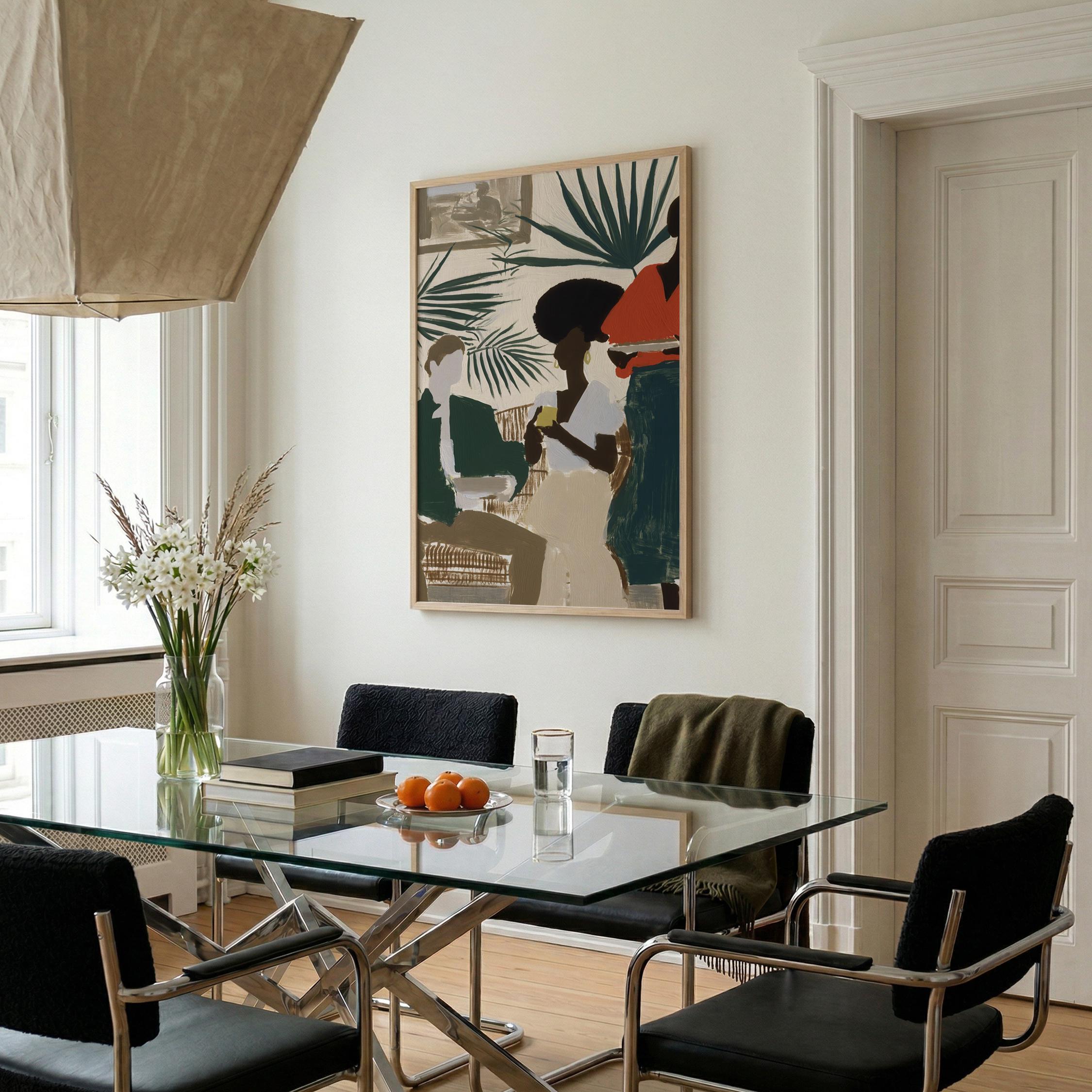 a vibrant afrohemian scene, perfect for living room and a great gift for housewarming gift.