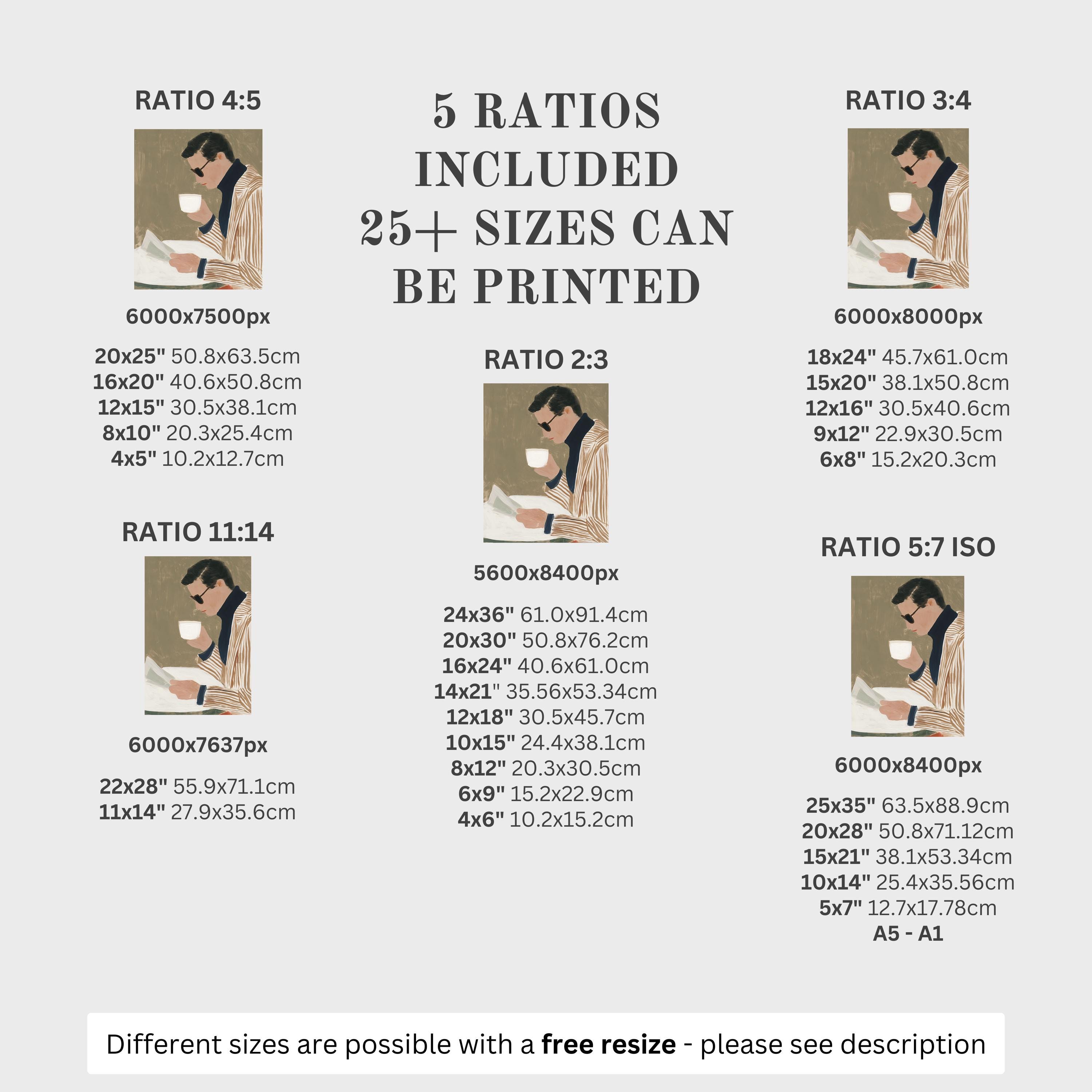 5 HIGH-QUALITY 300 DPI JPGs sized to fit +25 different frames in size and diverse ratios: