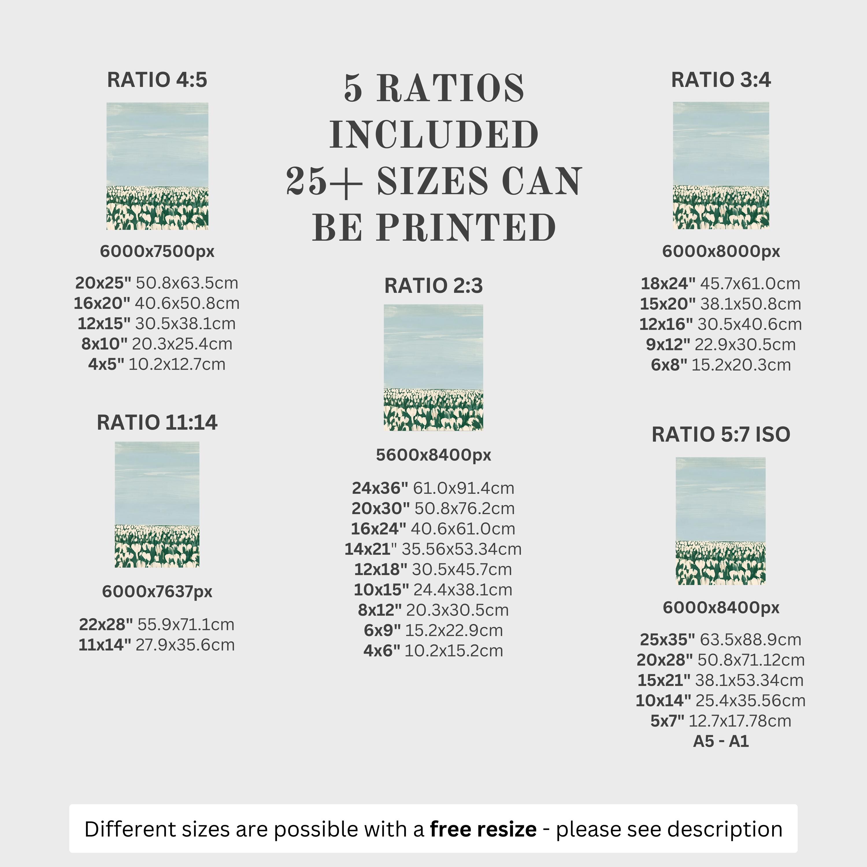 5 HIGH-QUALITY 300 DPI JPGs sized to fit +25 different frames in size and diverse ratios: