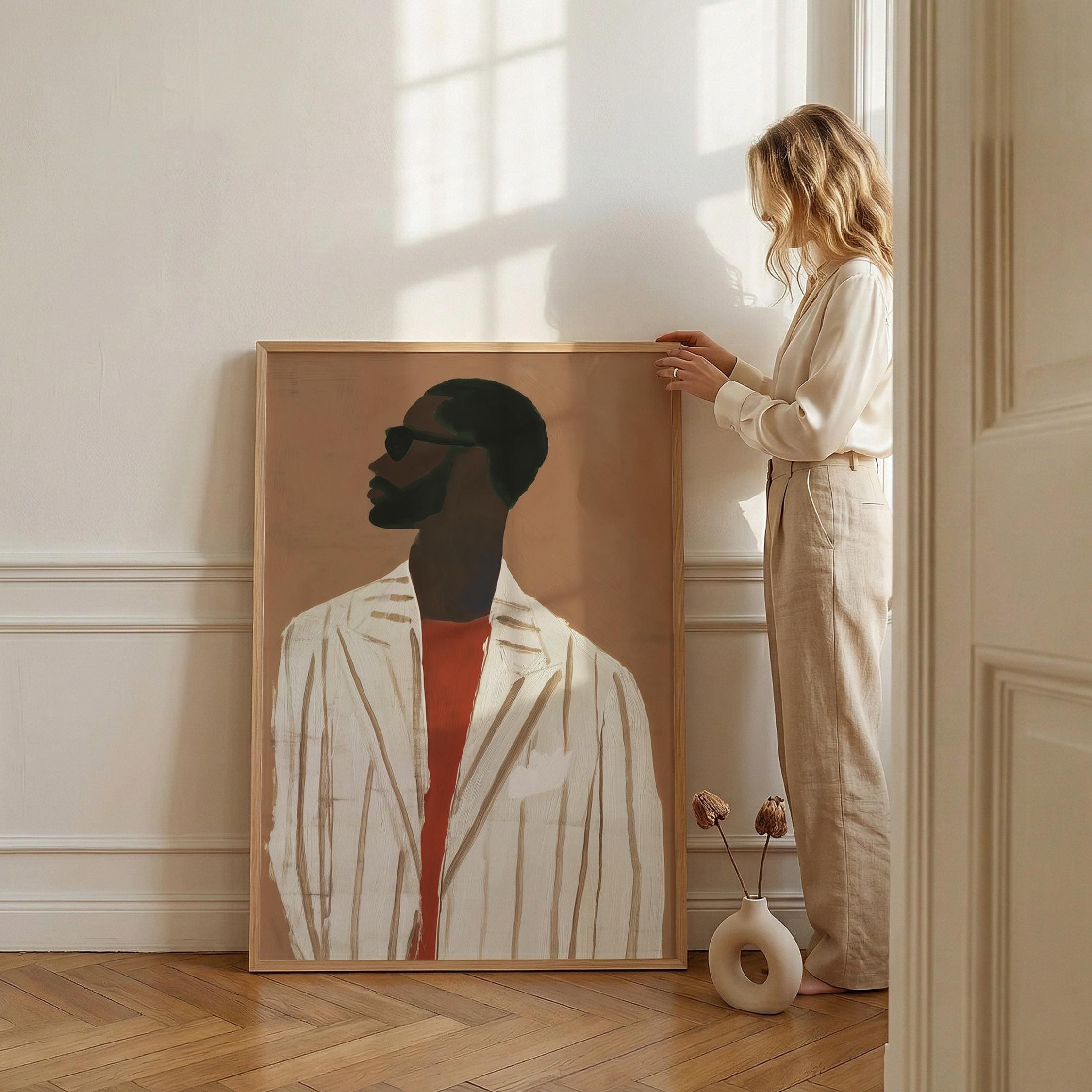 a striking fashion portrait, perfect for a modern lounge or hallway and a great gift for a stylish housewarming gift.