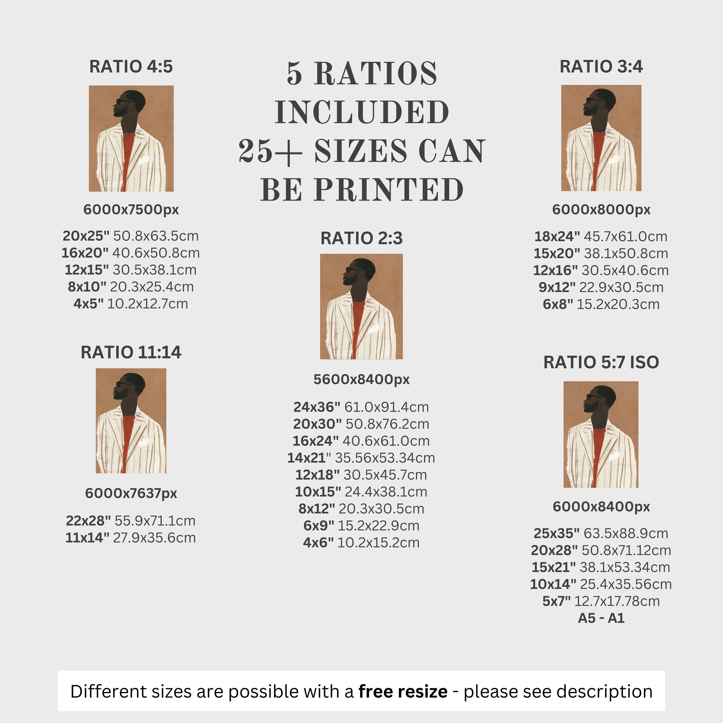 5 HIGH-QUALITY 300 DPI JPGs sized to fit +25 different frames in size and diverse ratios: