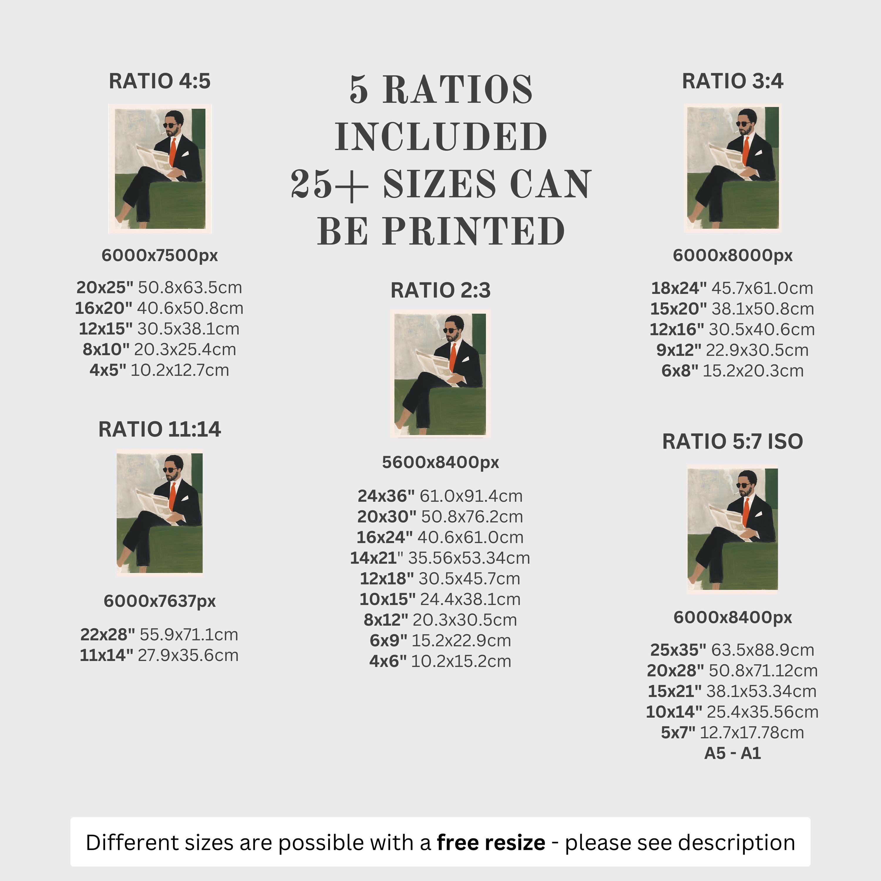 5 HIGH-QUALITY 300 DPI JPGs sized to fit +25 different frames in size and diverse ratios: