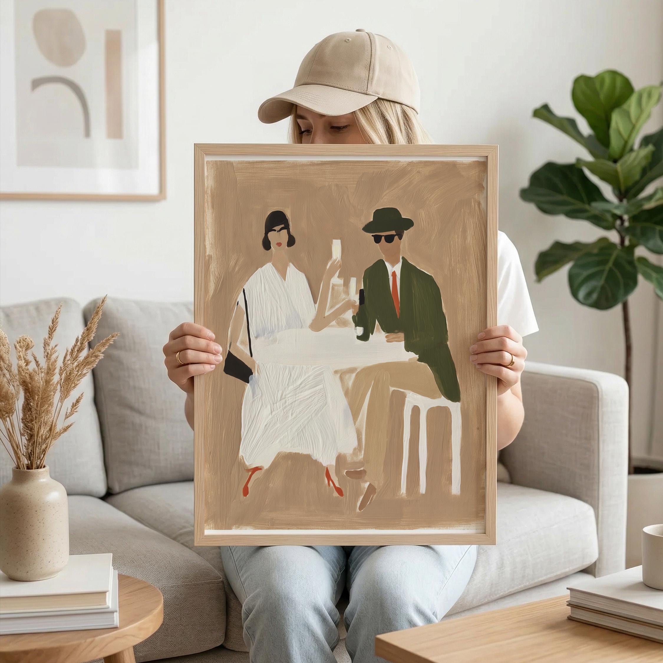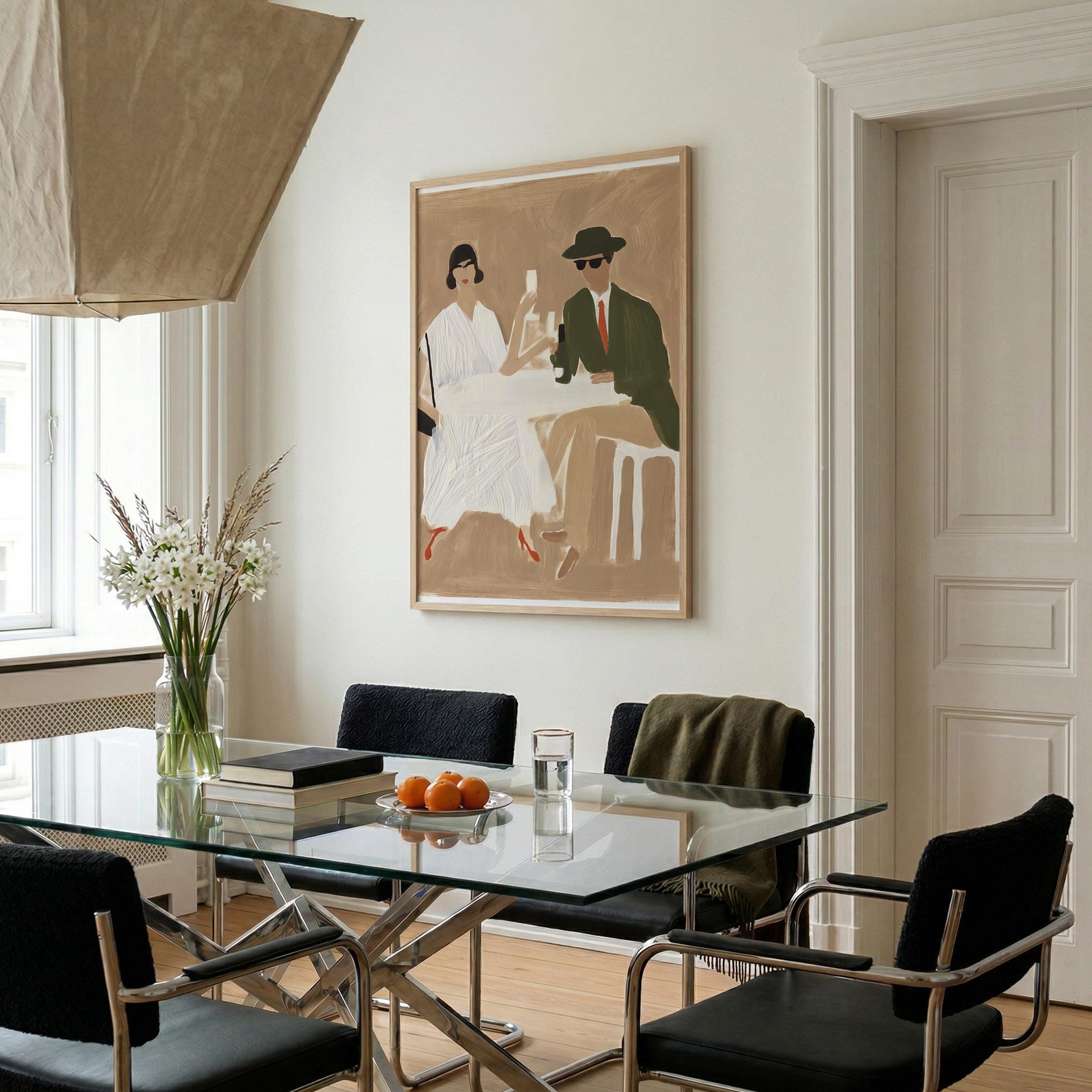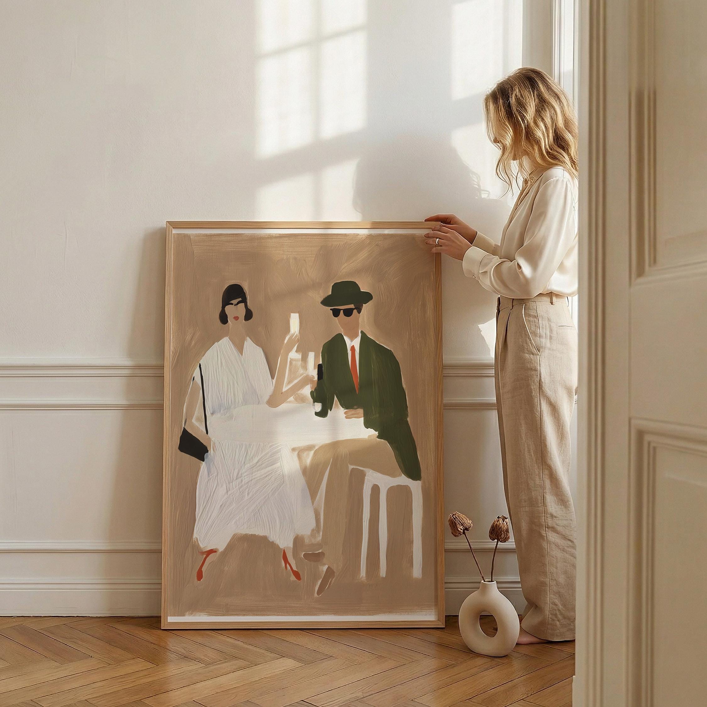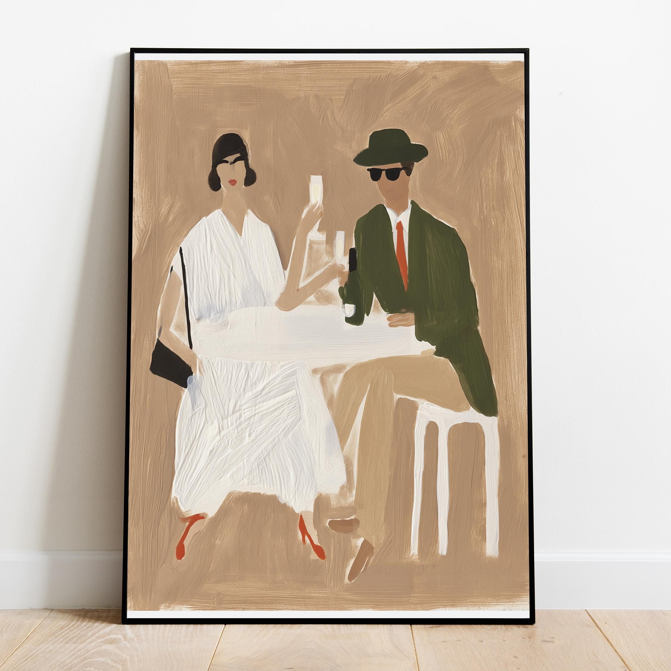 a romantic couple enjoying a meal, perfect for dining room and a great gift for an anniversary gift.