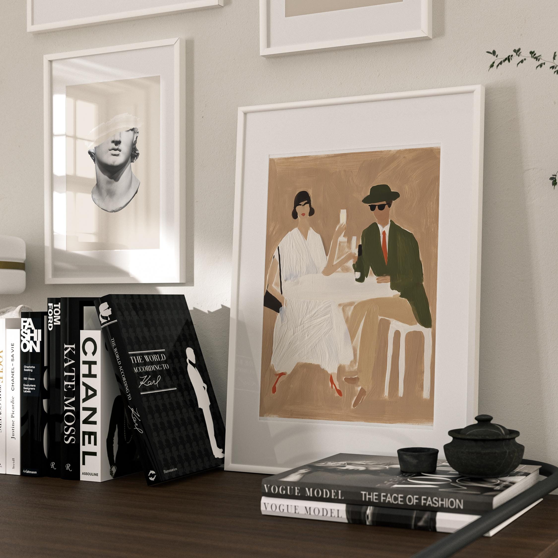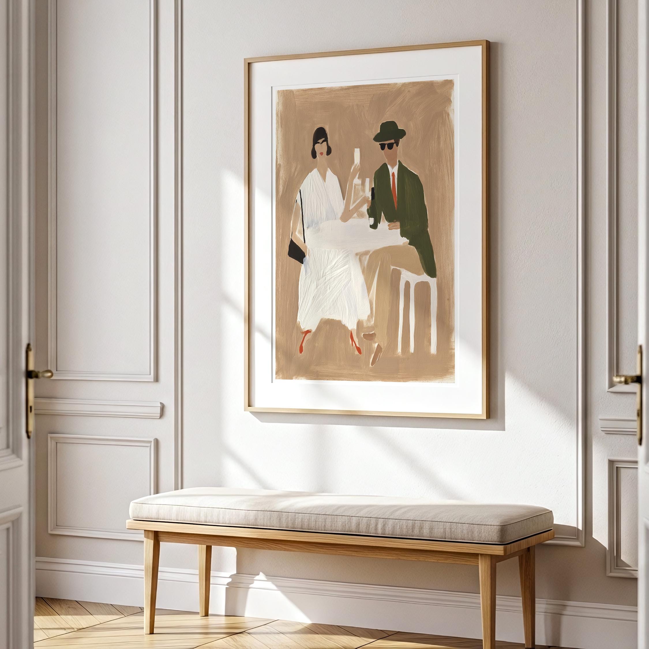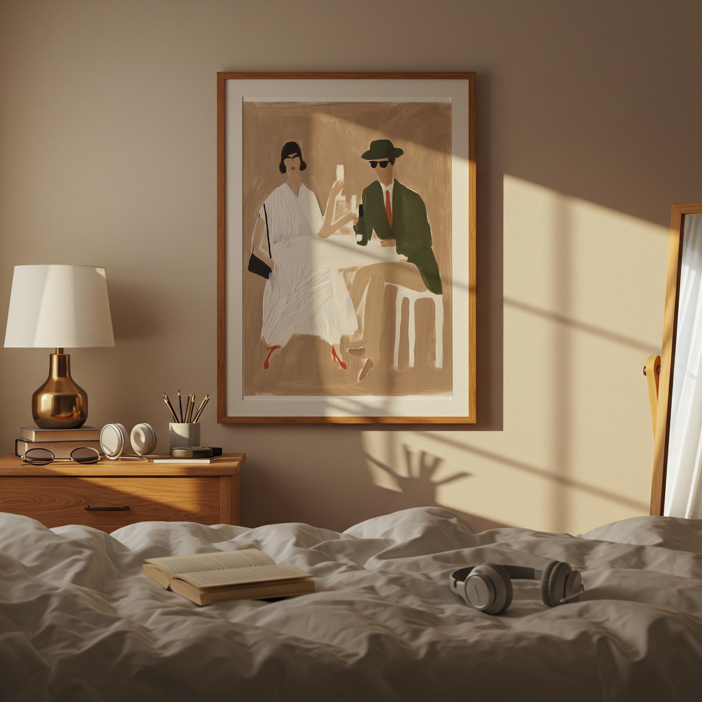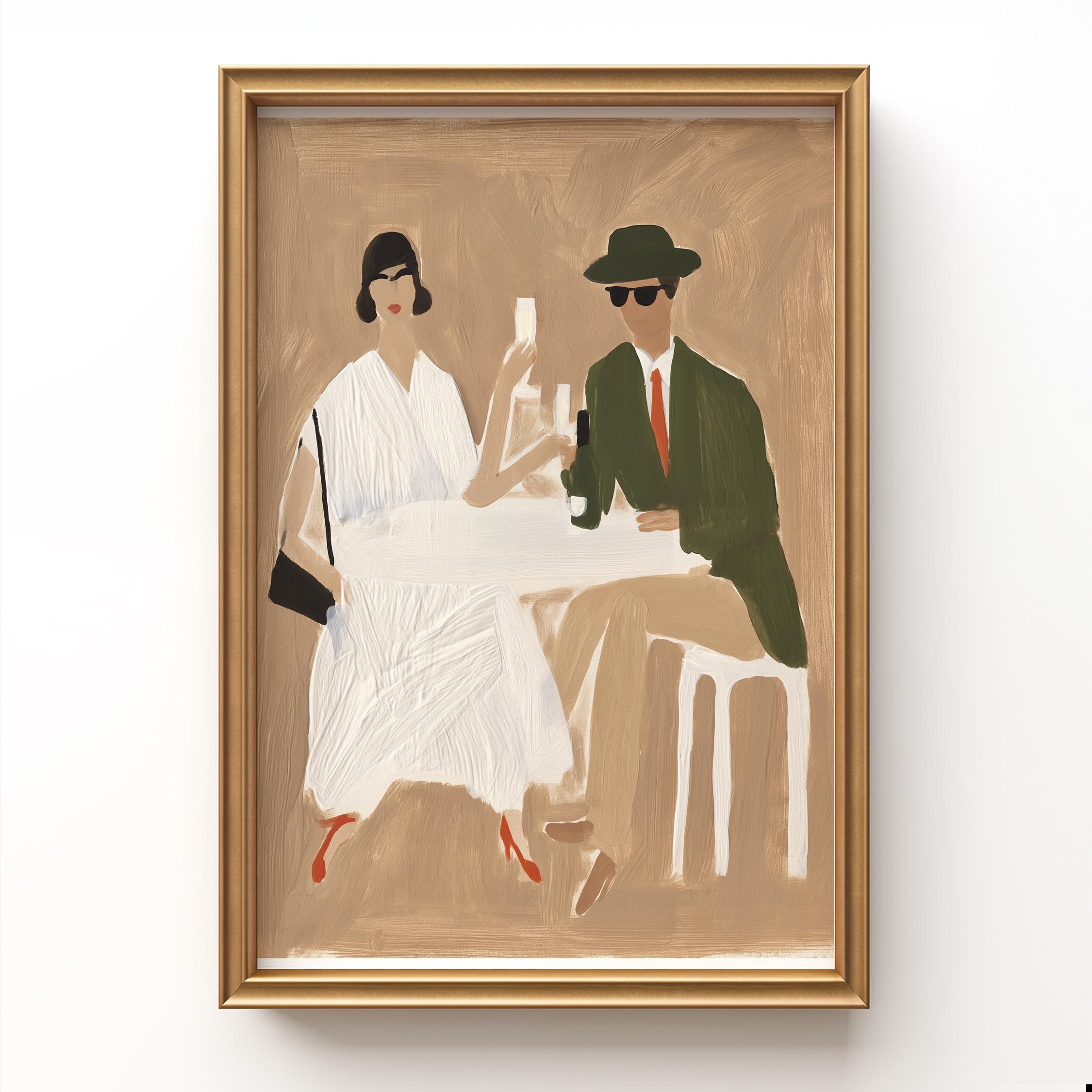 a romantic couple enjoying a meal, perfect for dining room and a great gift for an anniversary gift.