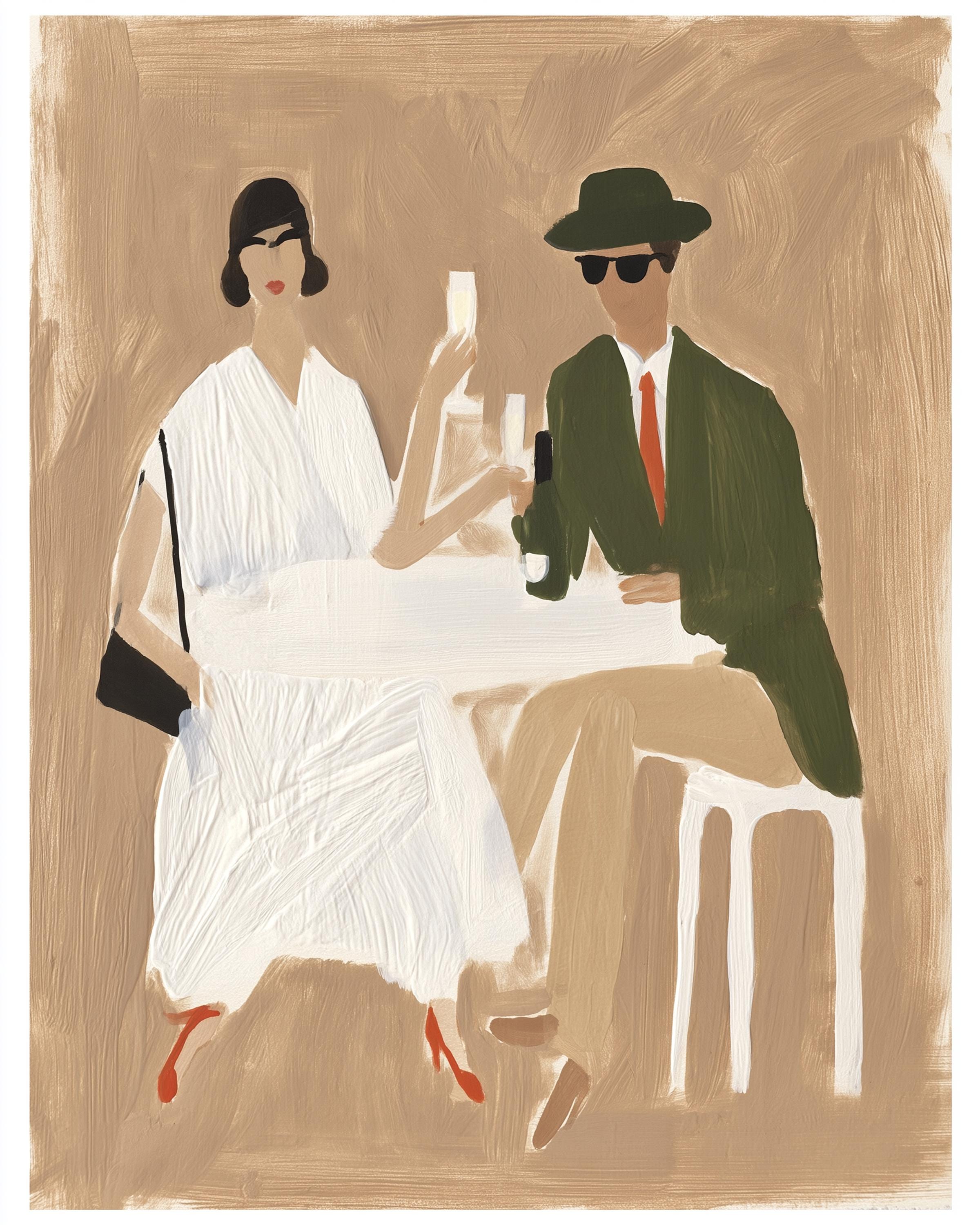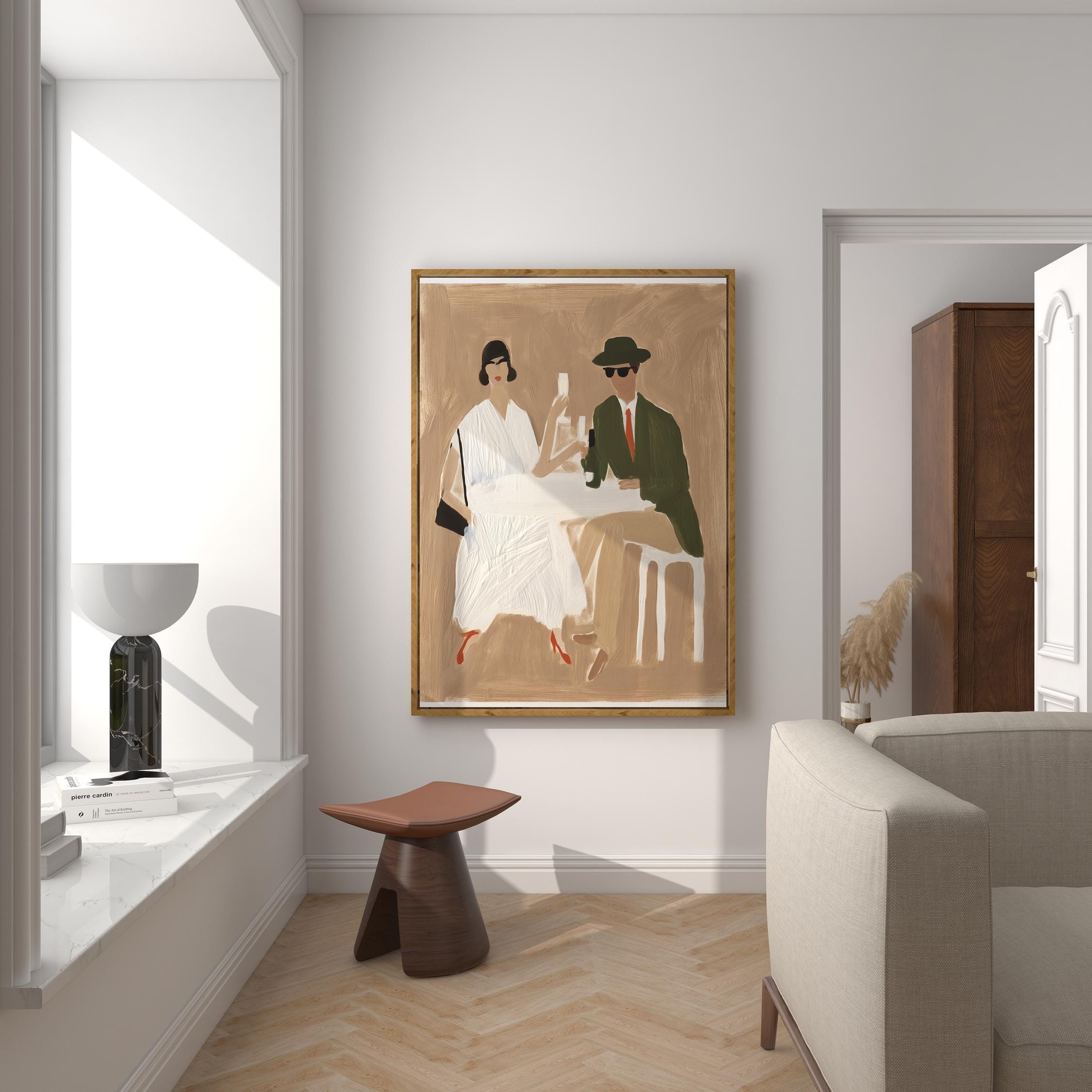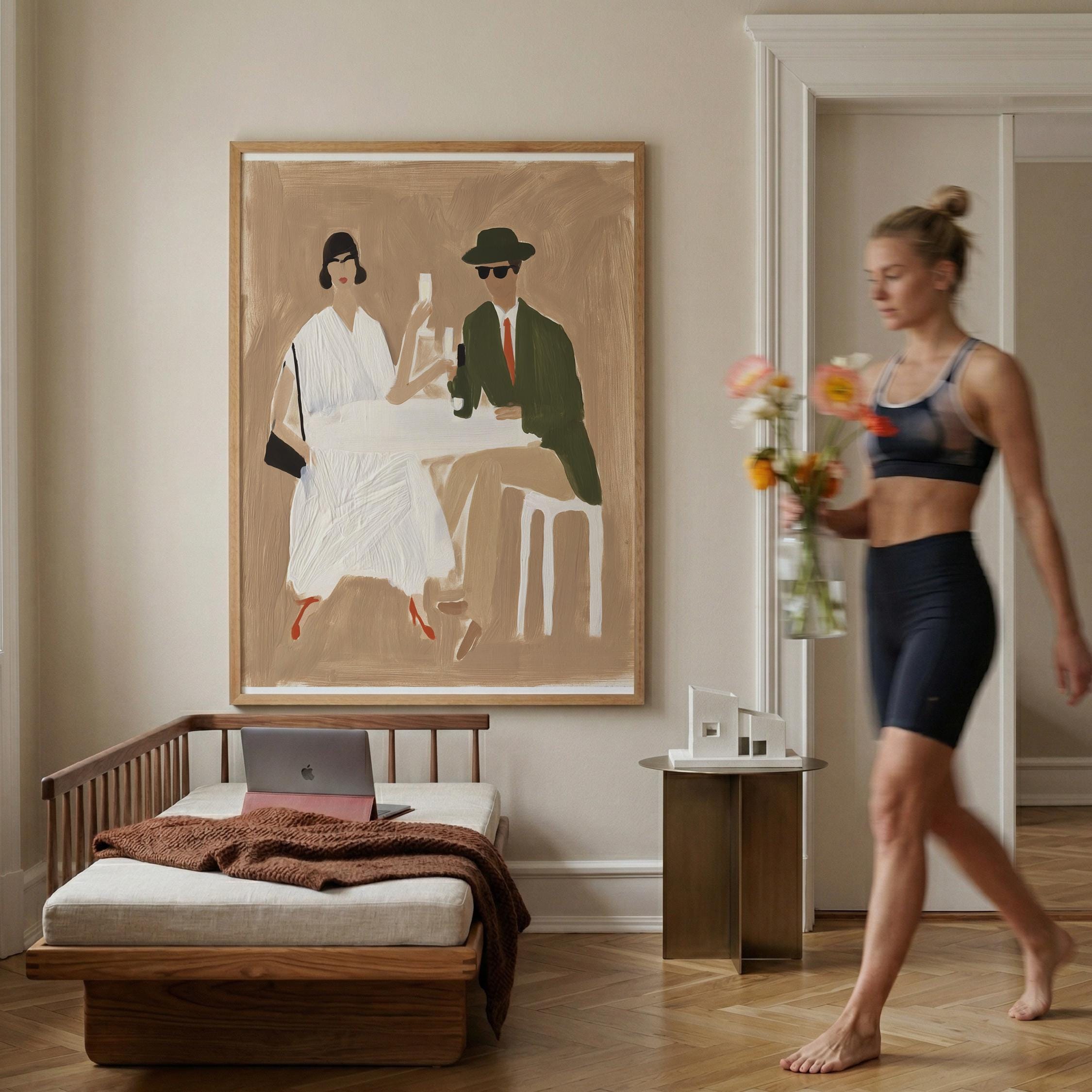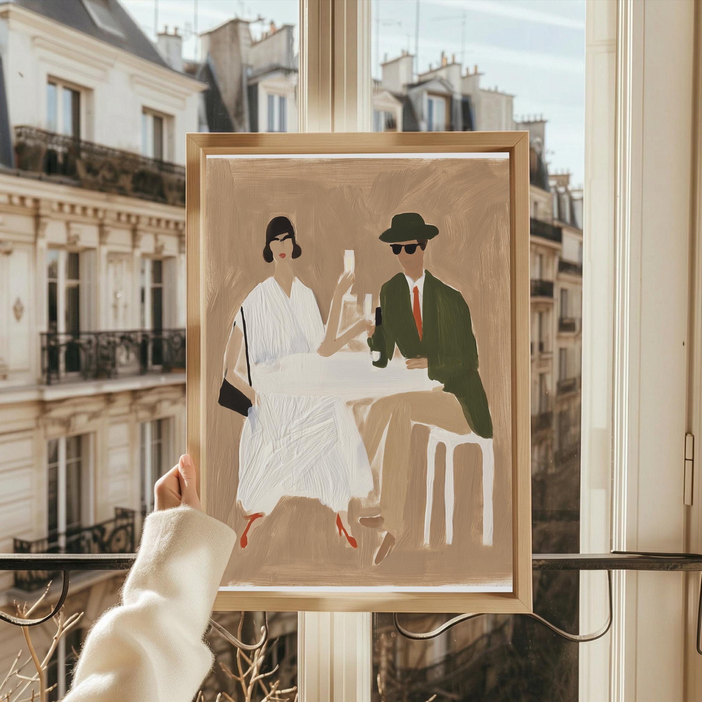 a romantic couple enjoying a meal, perfect for dining room and a great gift for an anniversary gift.
