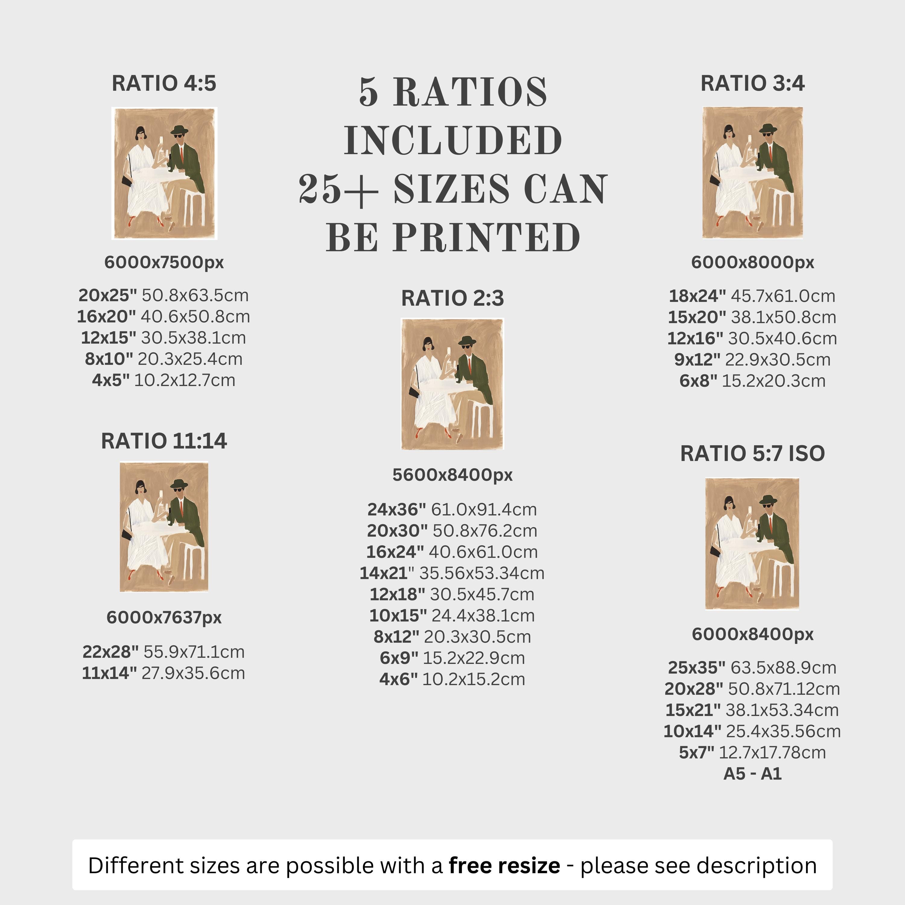 5 HIGH-QUALITY 300 DPI JPGs sized to fit +25 different frames in size and diverse ratios: