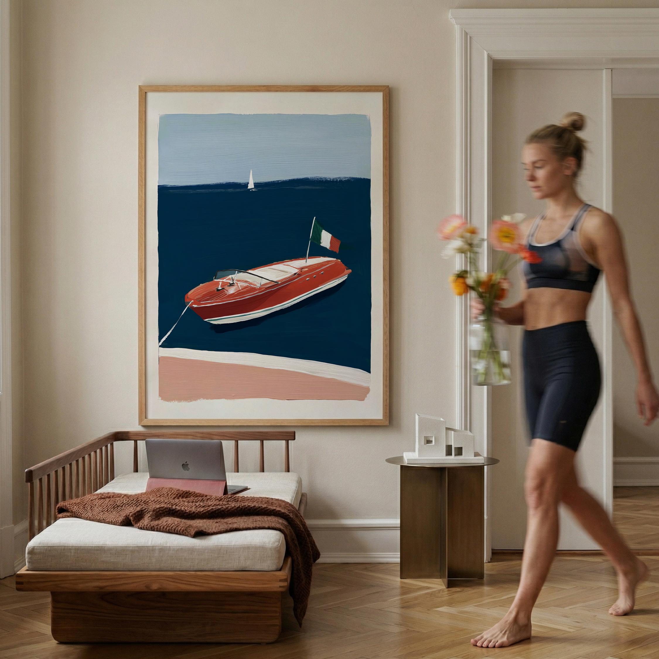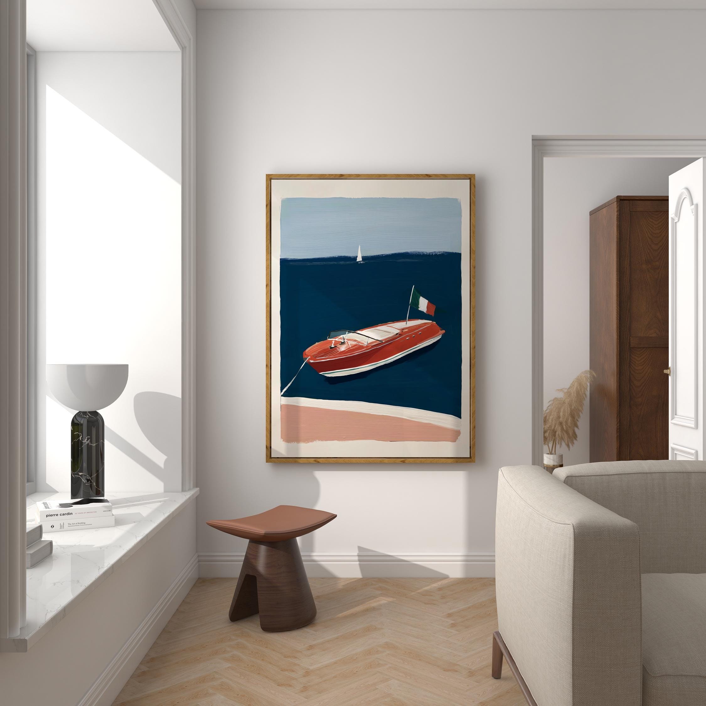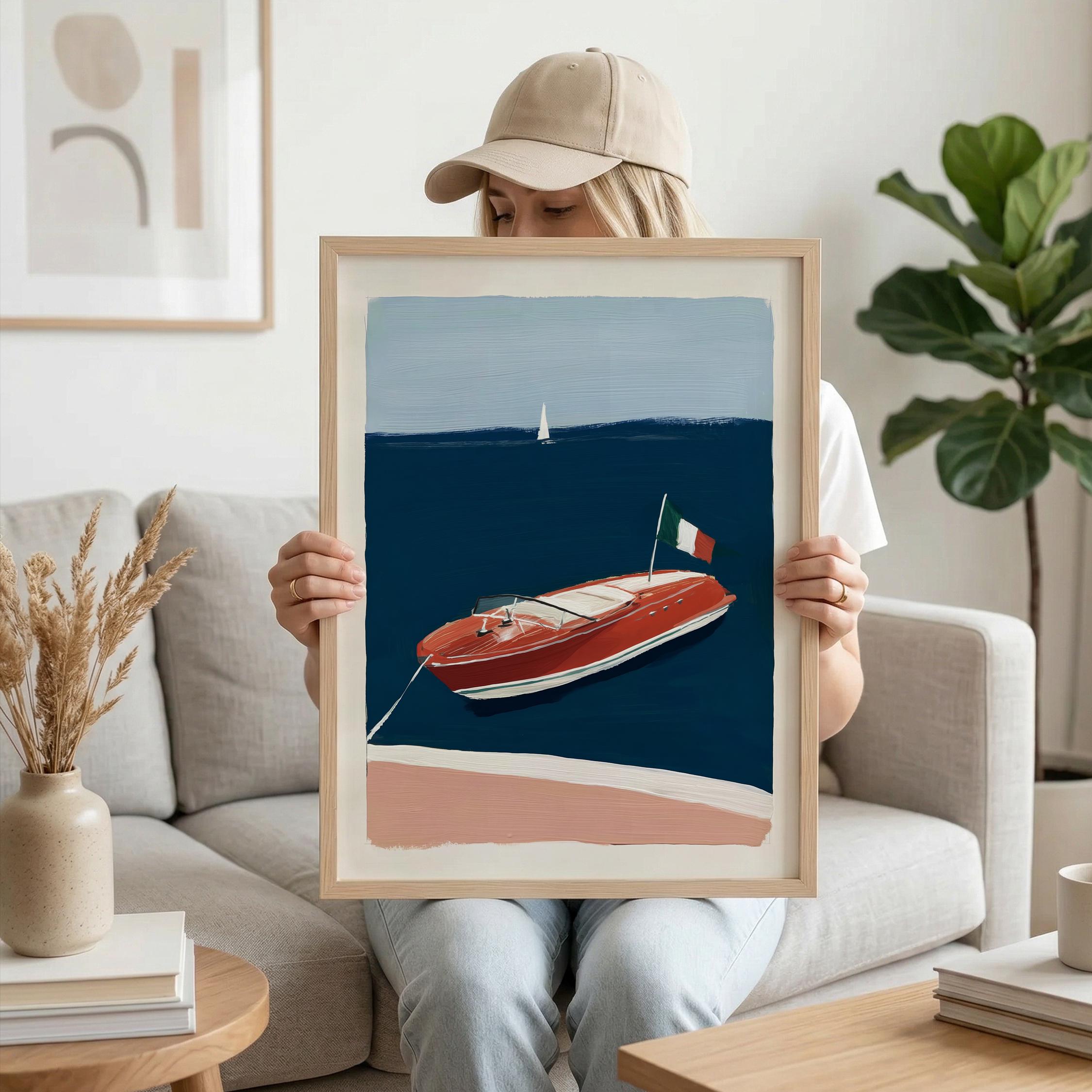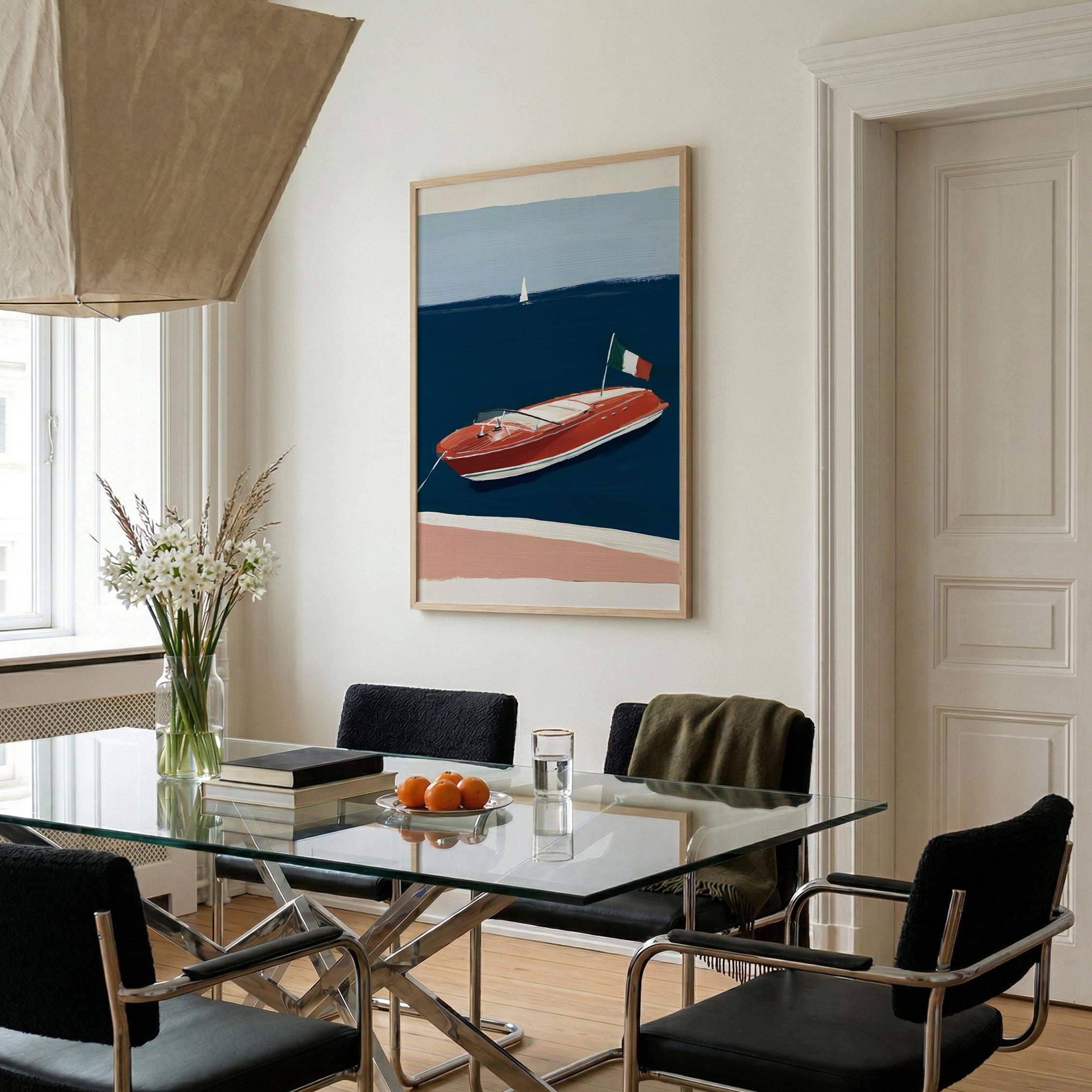 a retro wooden boat, perfect for a coastal living room and a great gift for a housewarming gift.