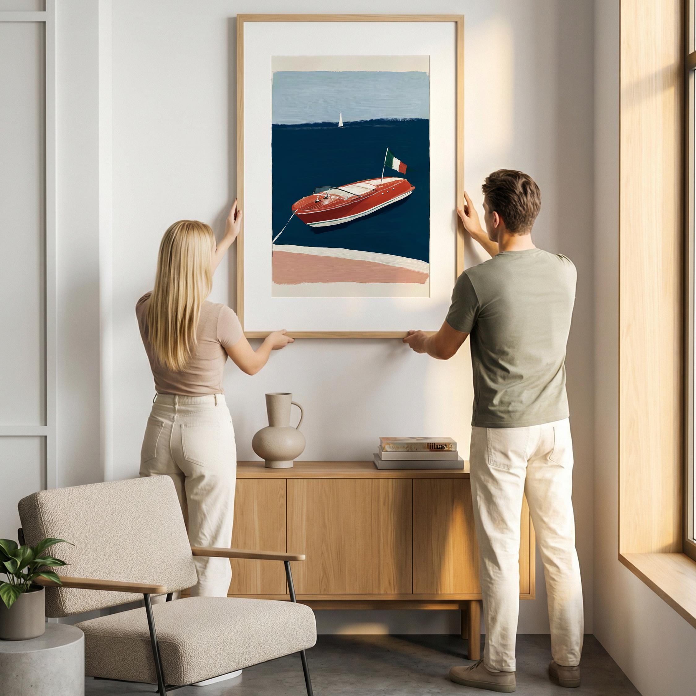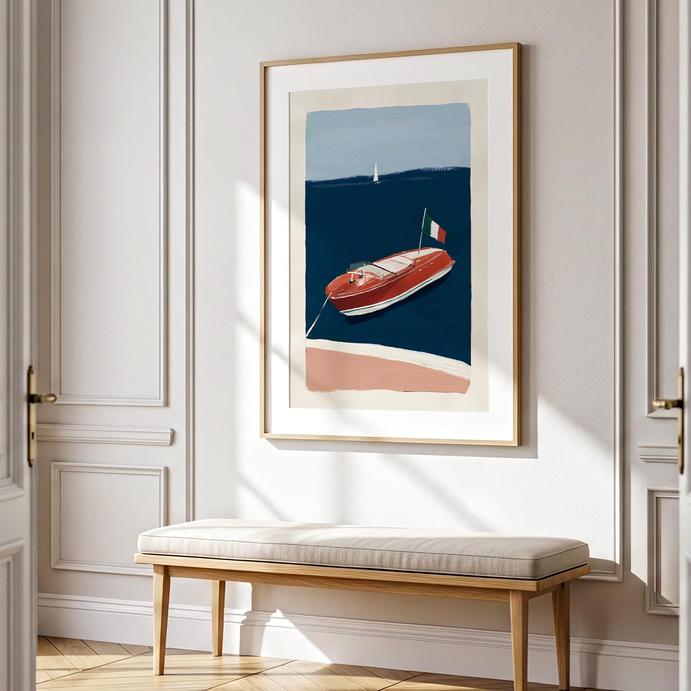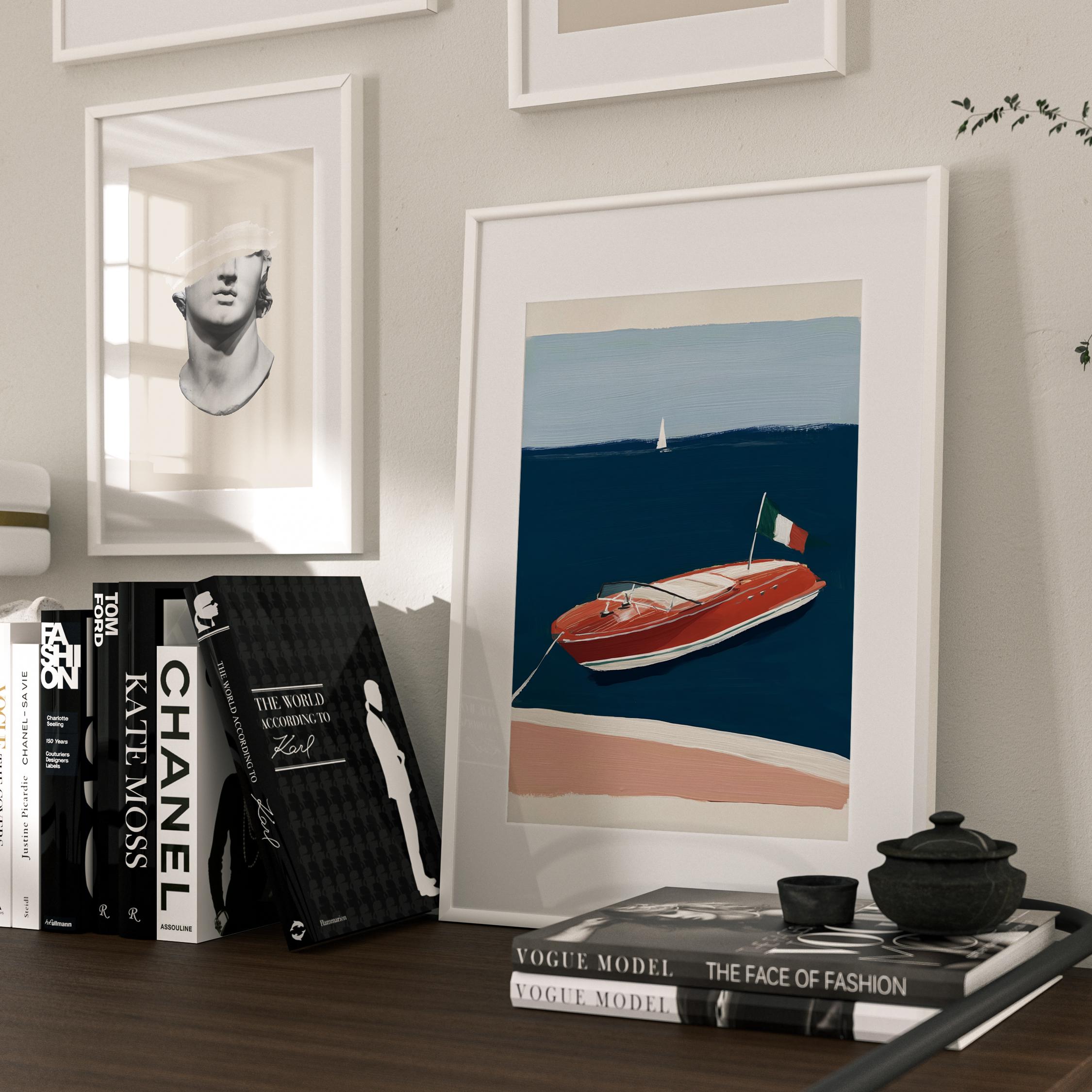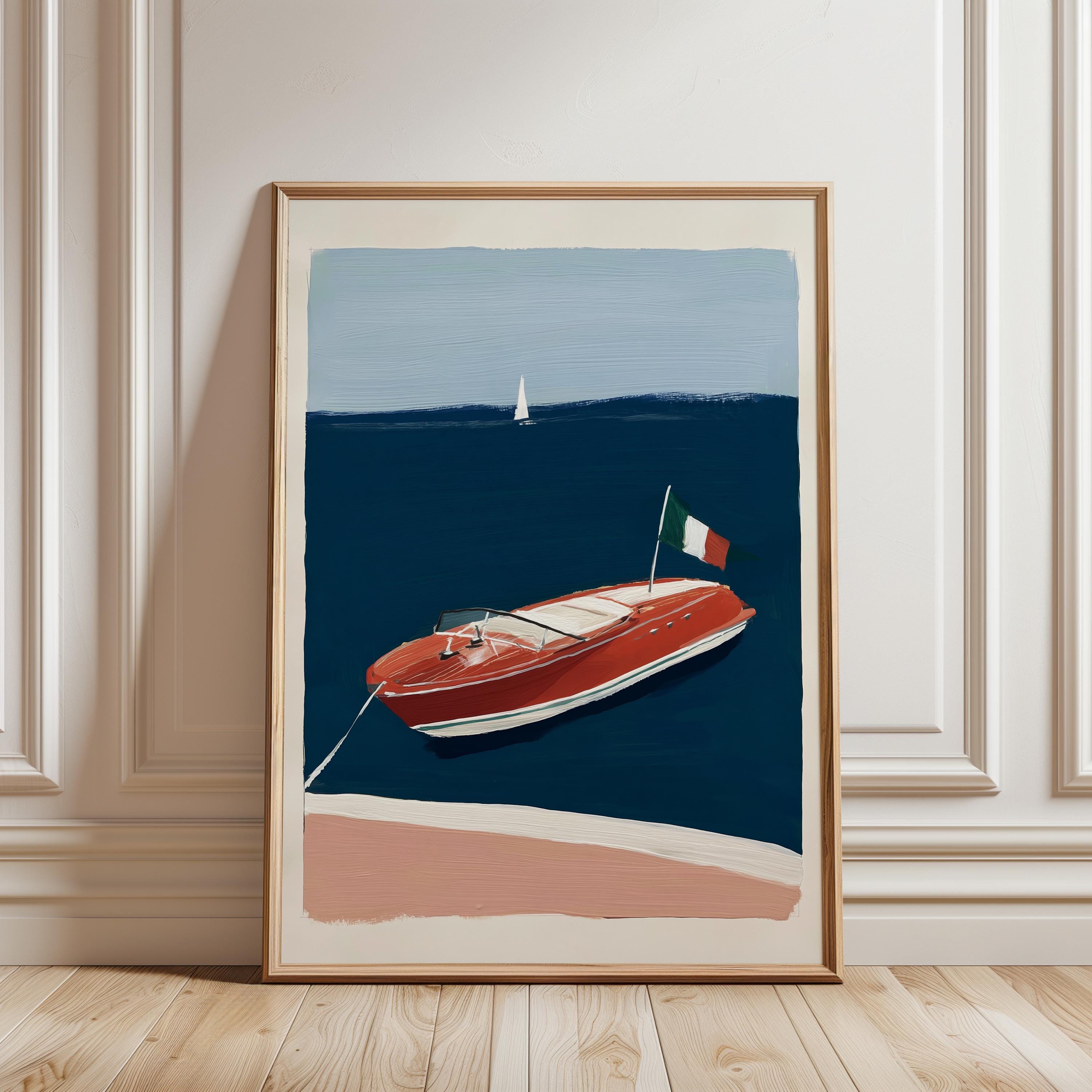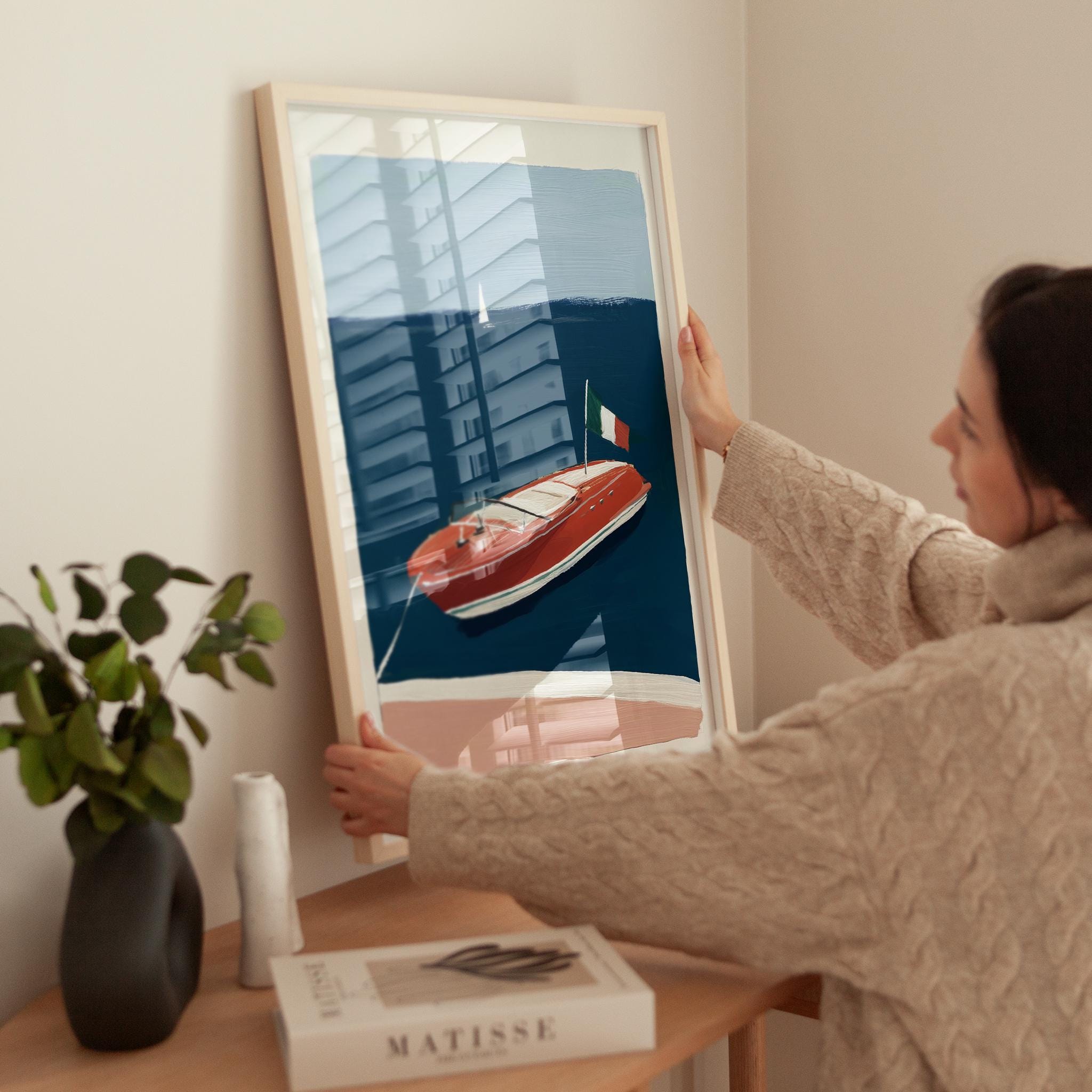 a retro wooden boat, perfect for a coastal living room and a great gift for a housewarming gift.