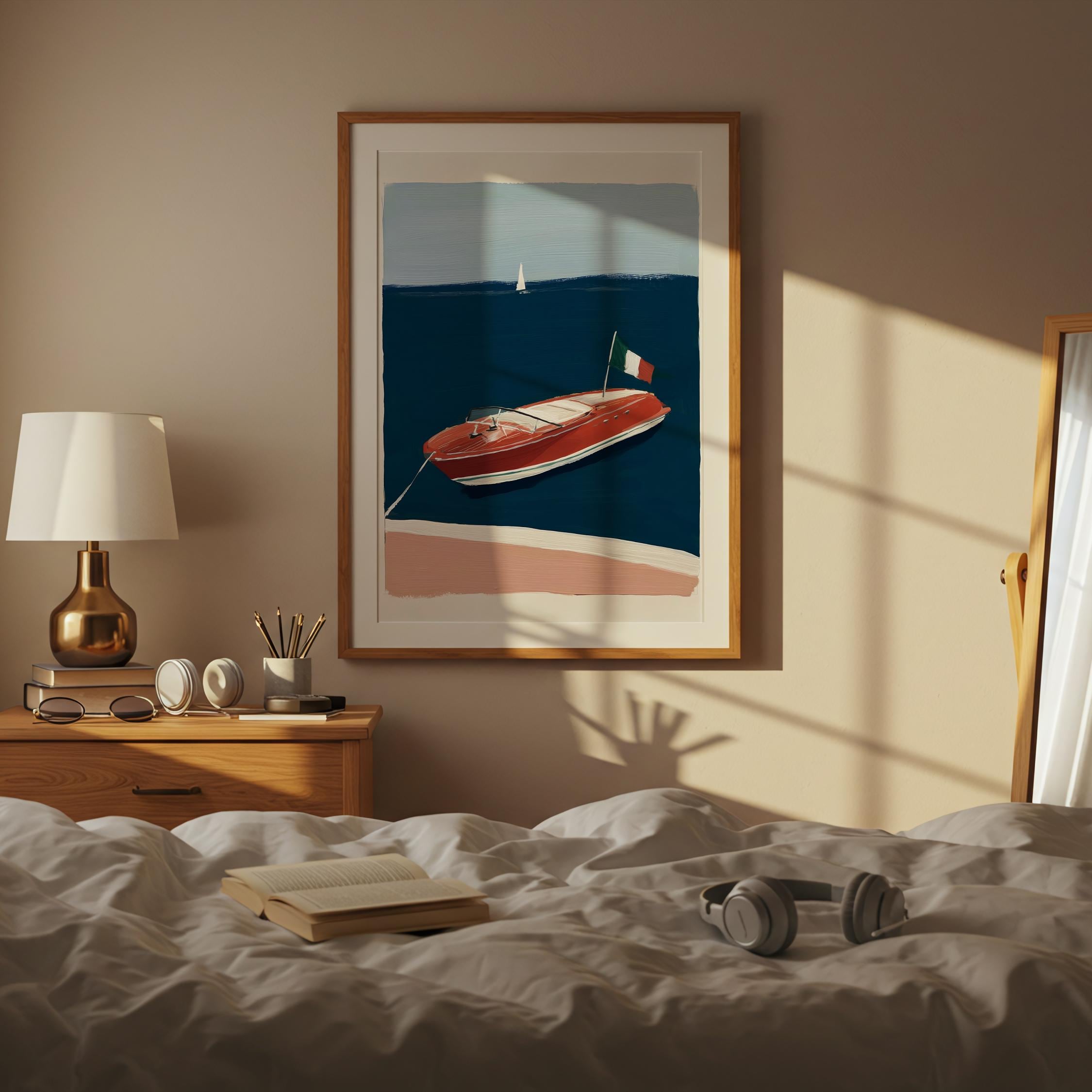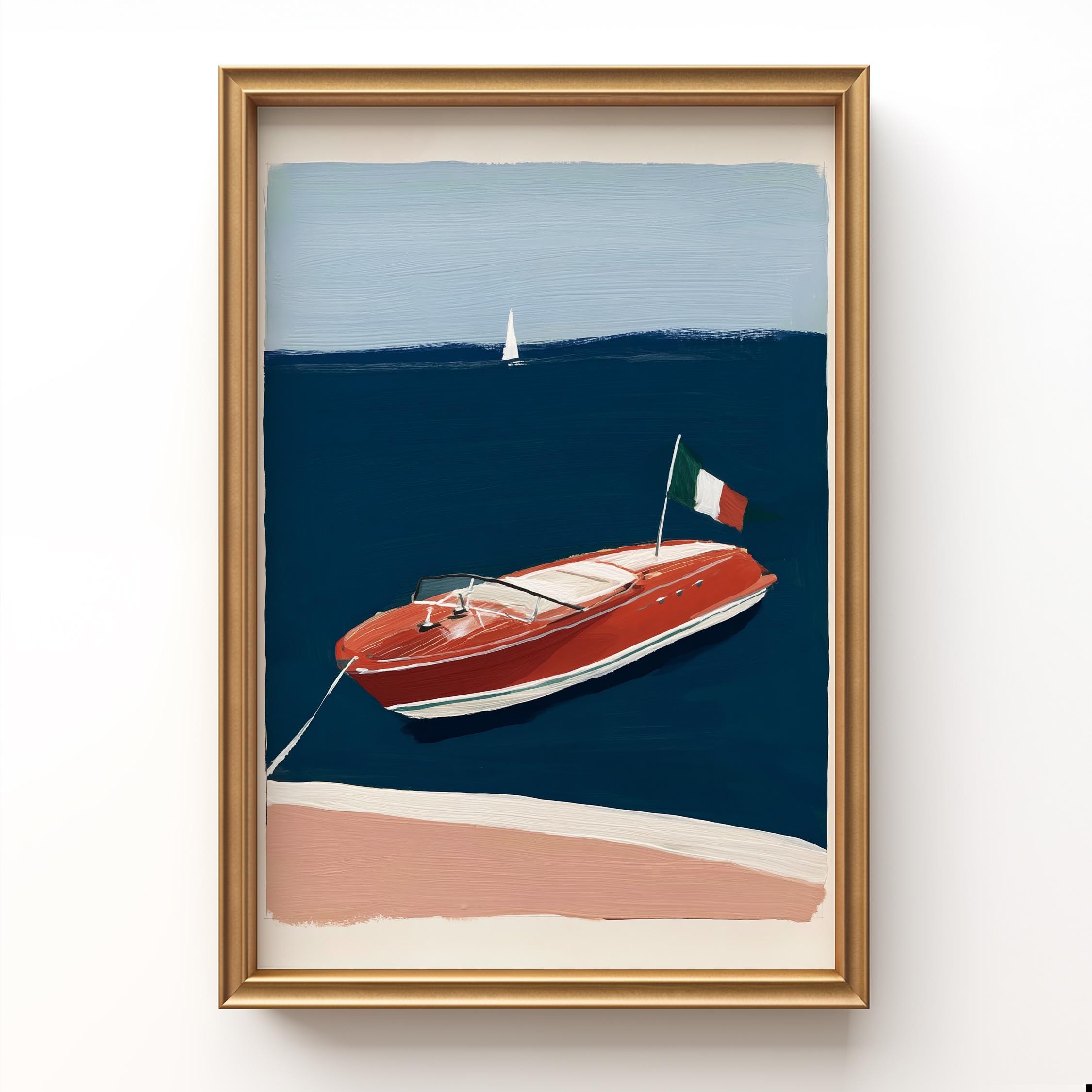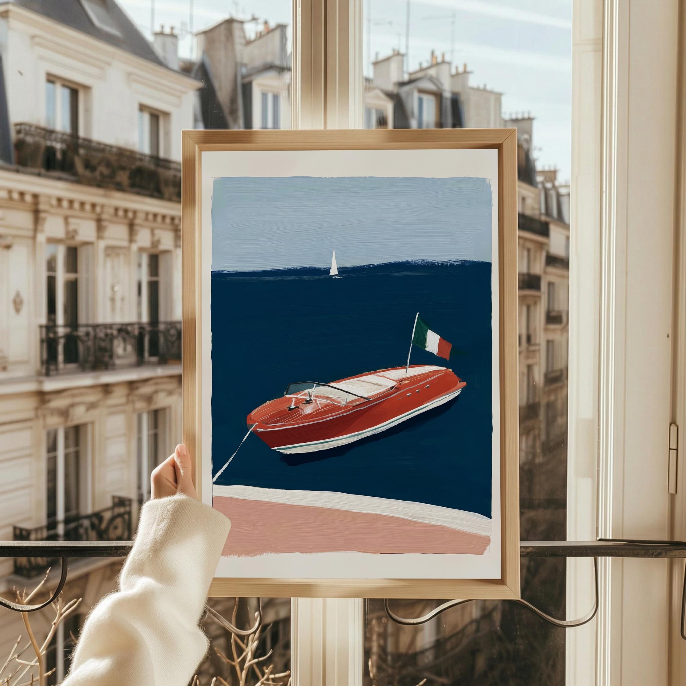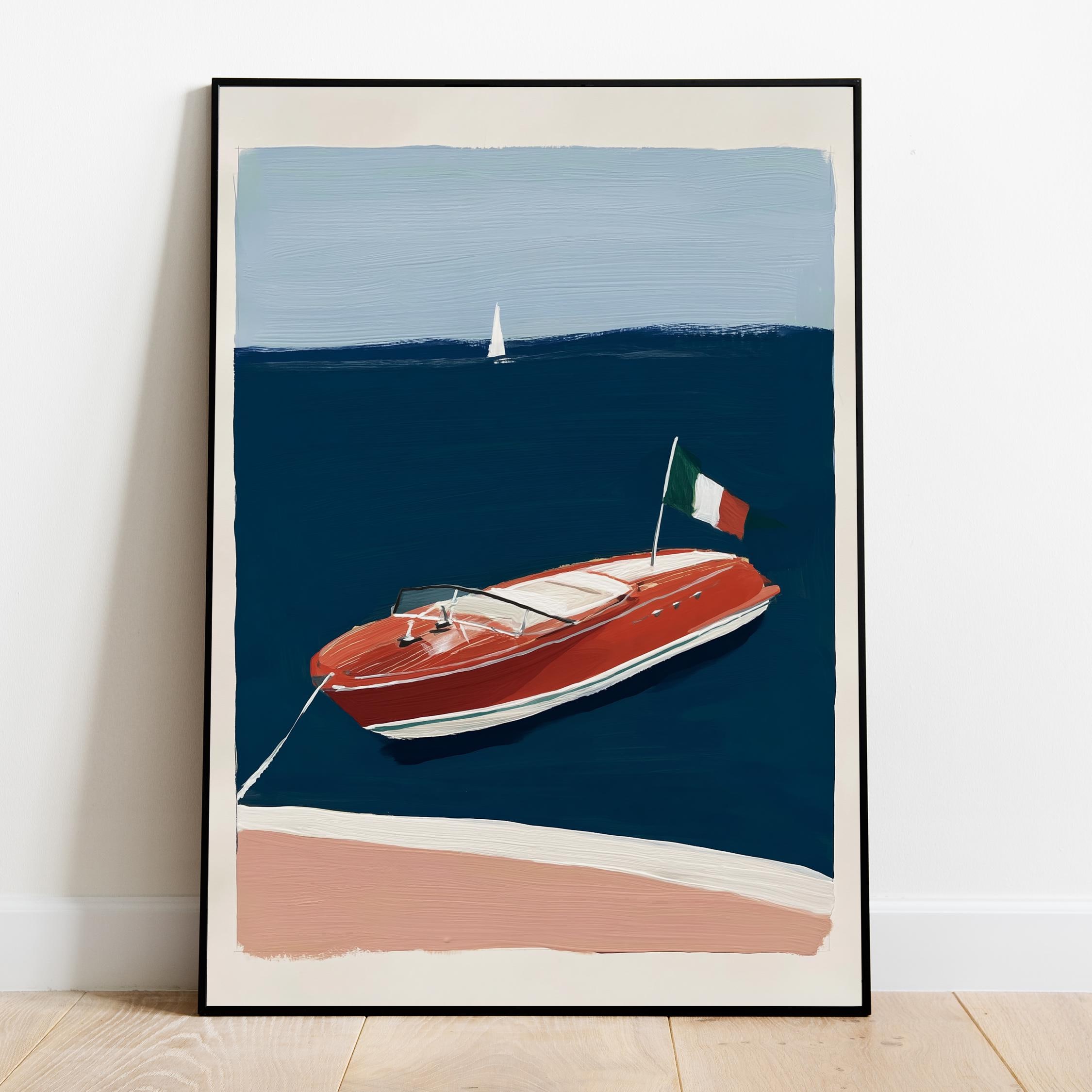 a retro wooden boat, perfect for a coastal living room and a great gift for a housewarming gift.