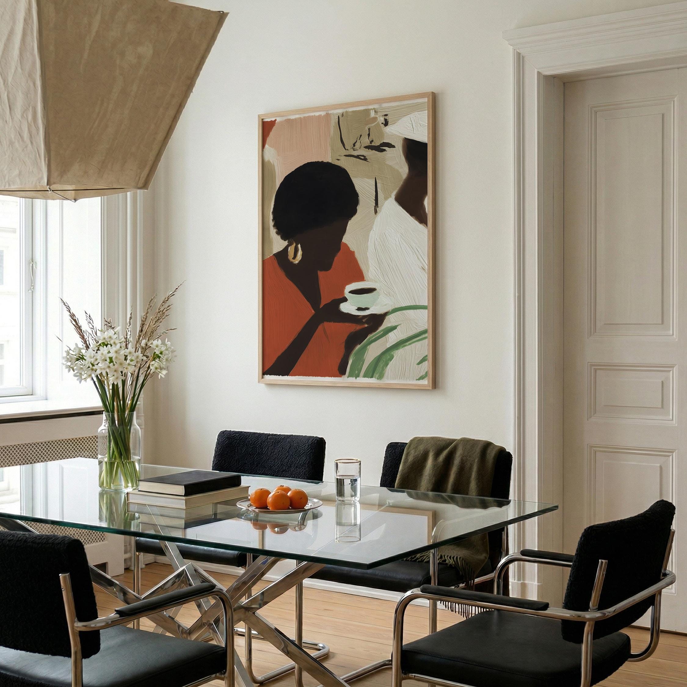 a vibrant coffee scene, perfect for kitchen or coffee nook and a great gift for housewarming or coffee enthusiast gift.