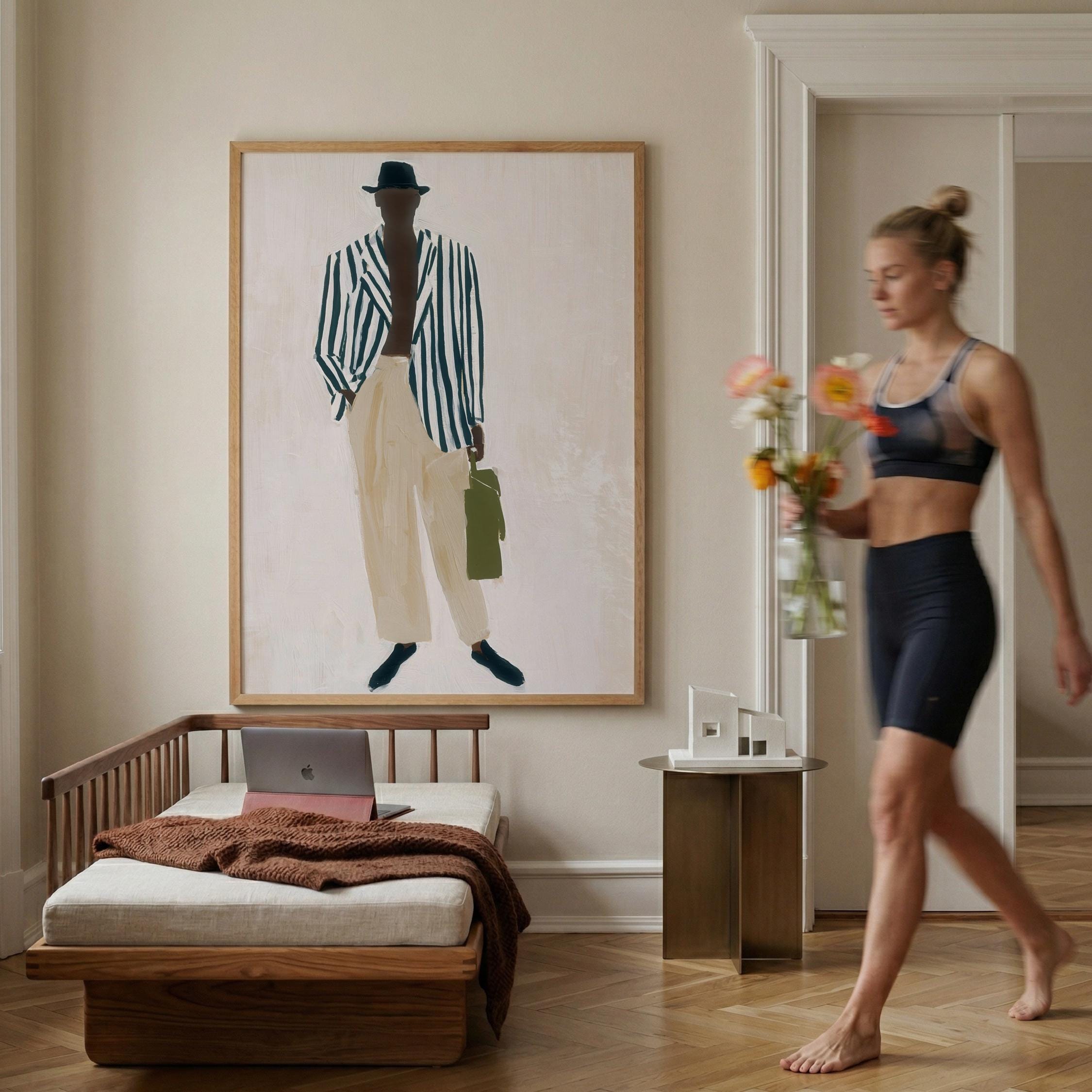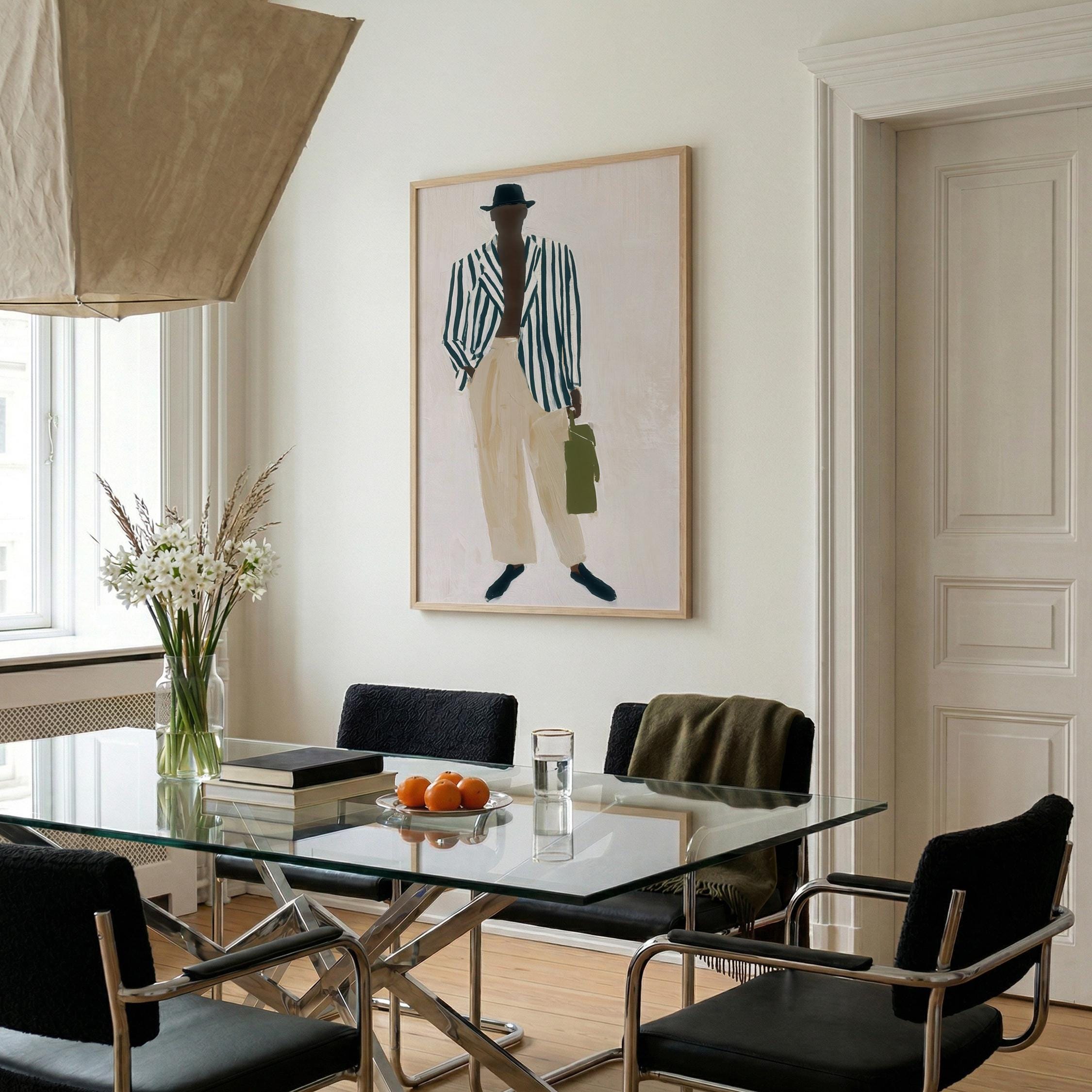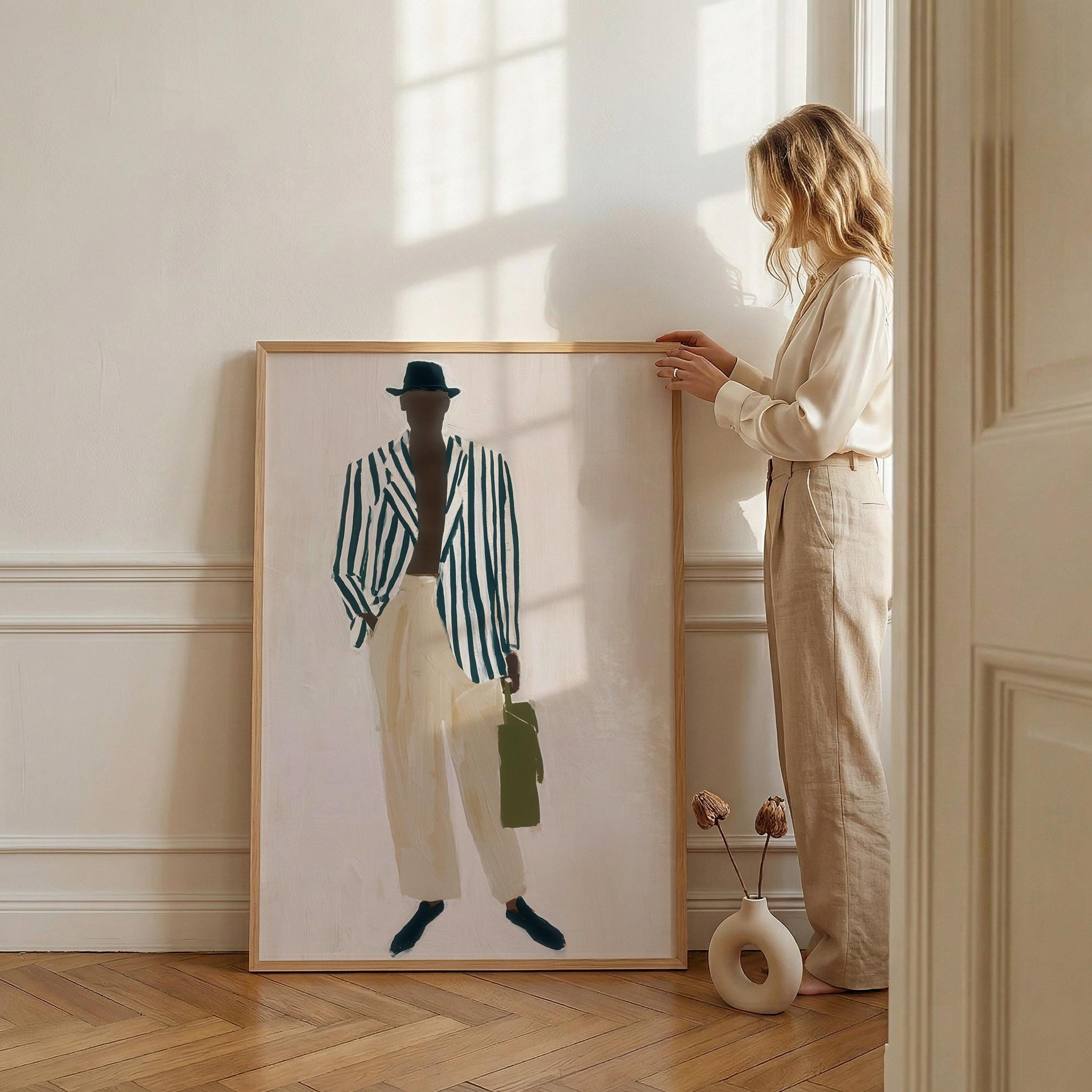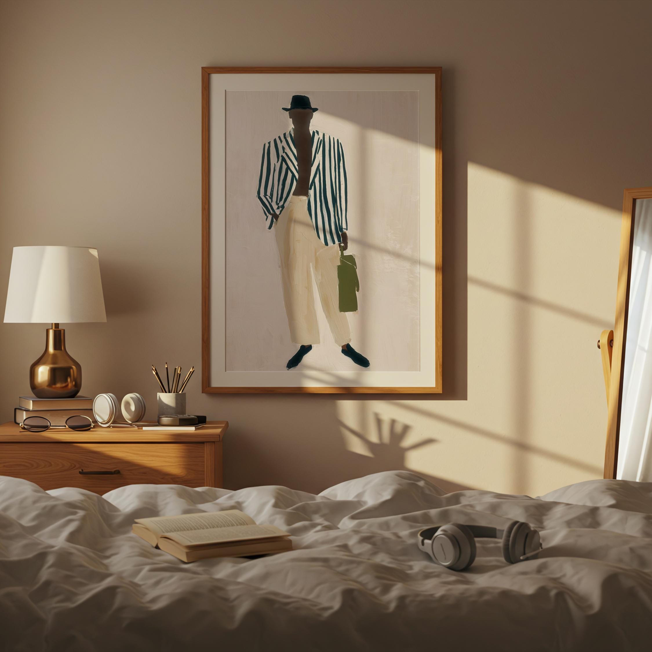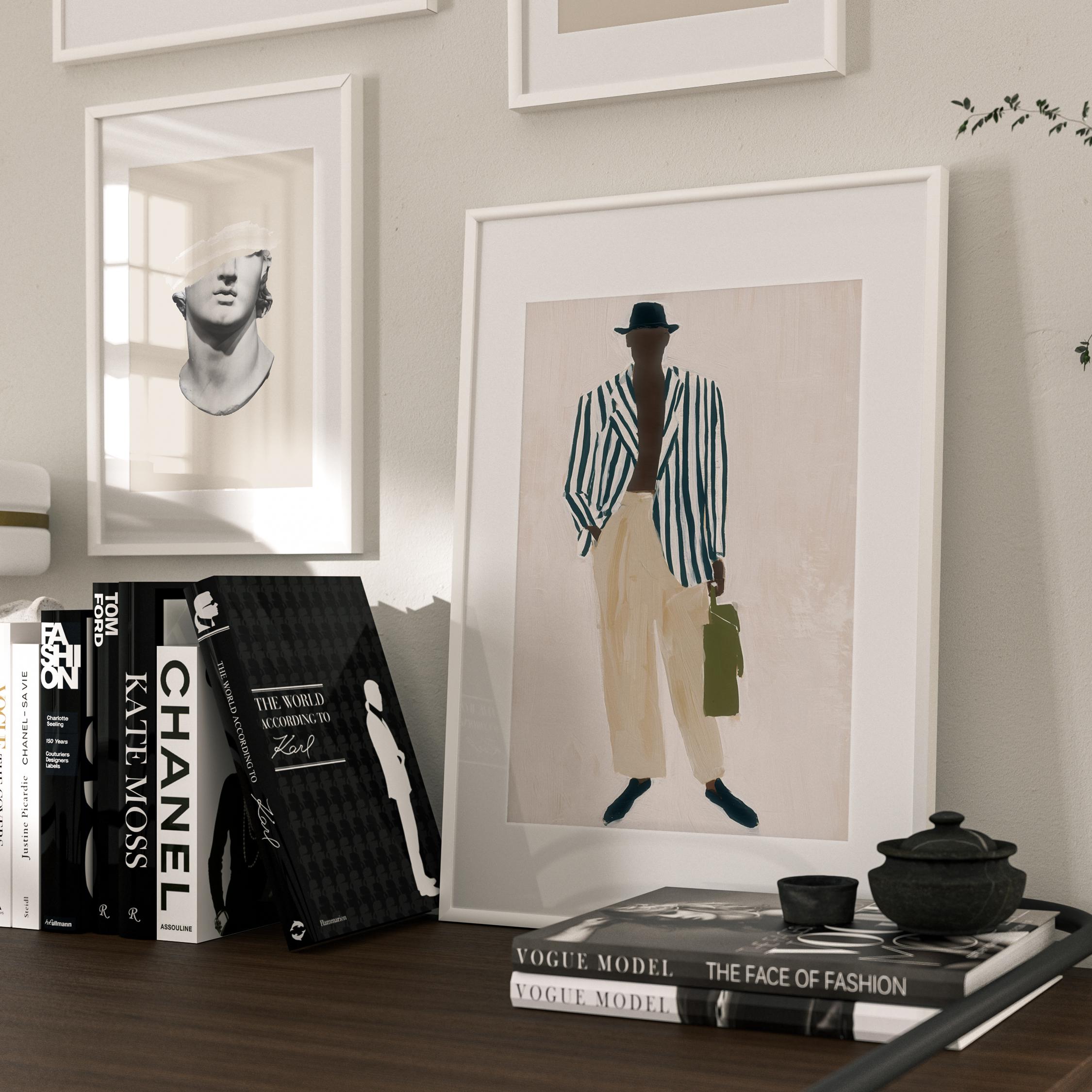 stylish afro male figure illustration, perfect for home office and a great gift for a birthday celebration.