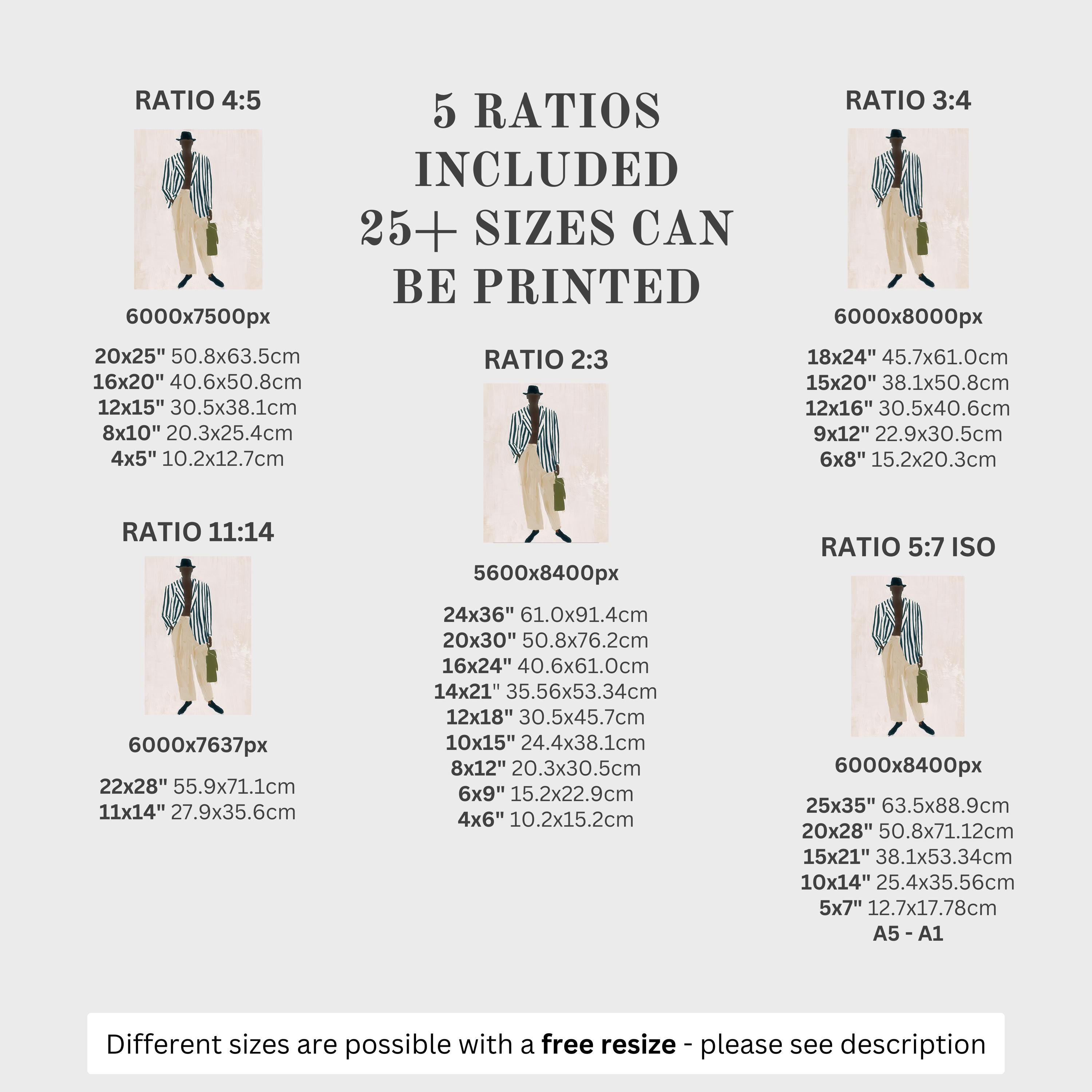 5 HIGH-QUALITY 300 DPI JPGs sized to fit +25 different frames in size and diverse ratios: