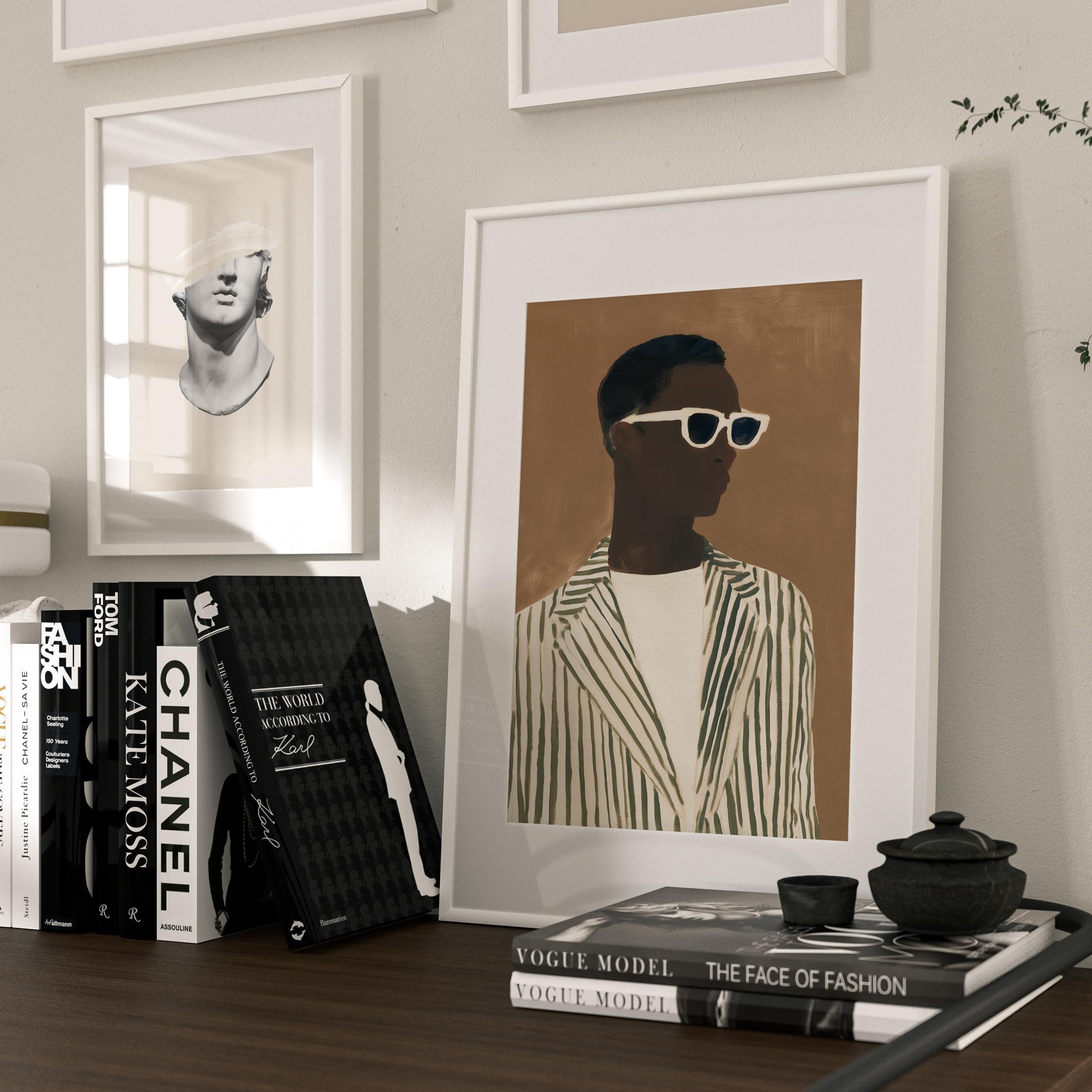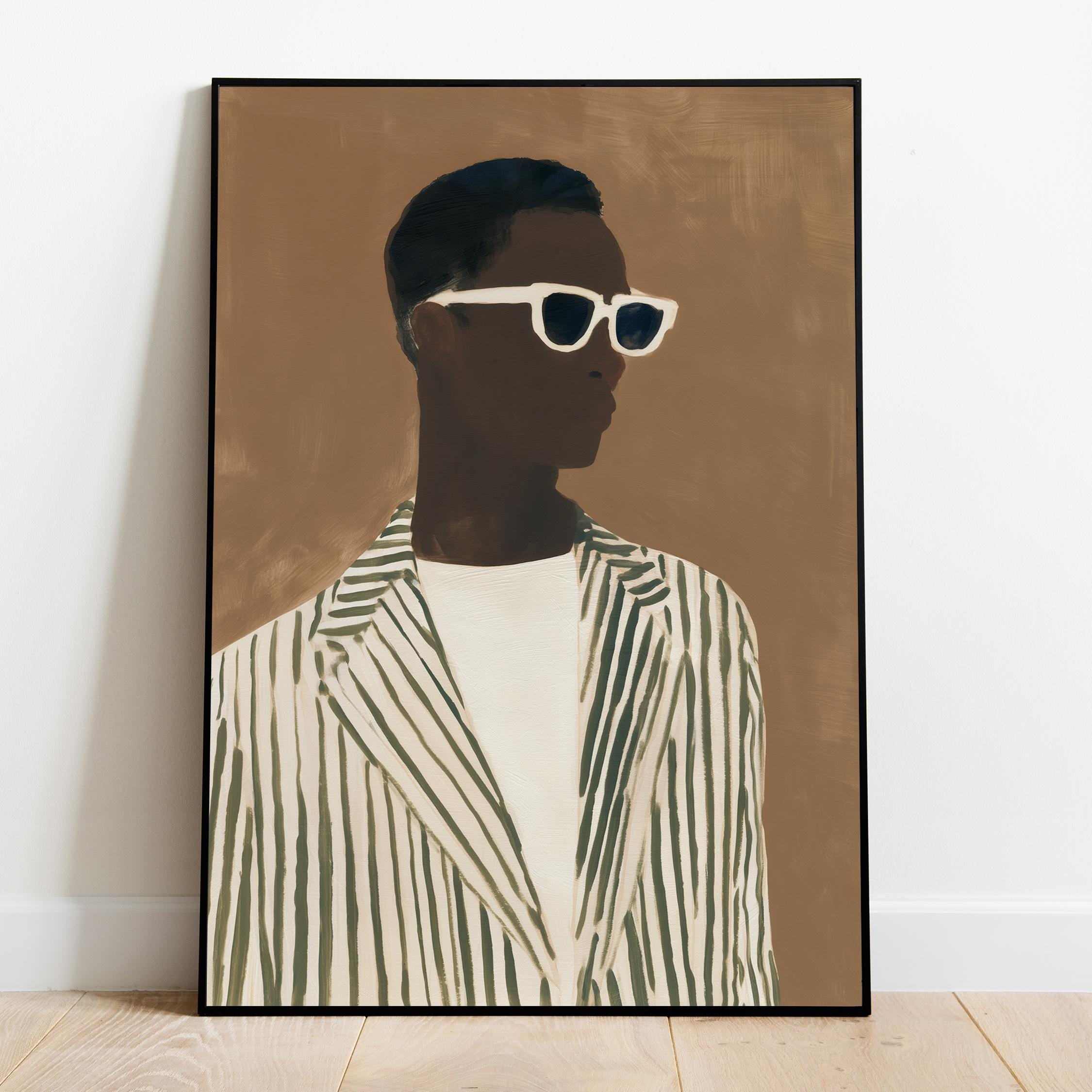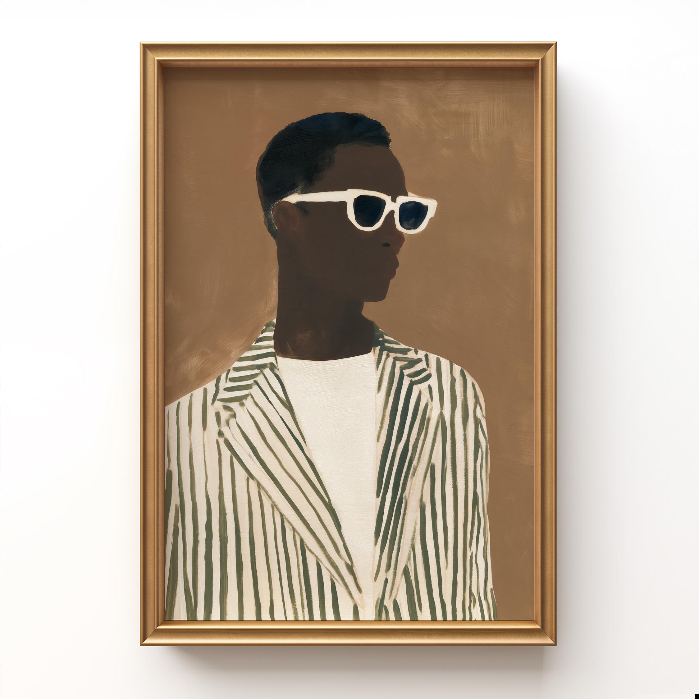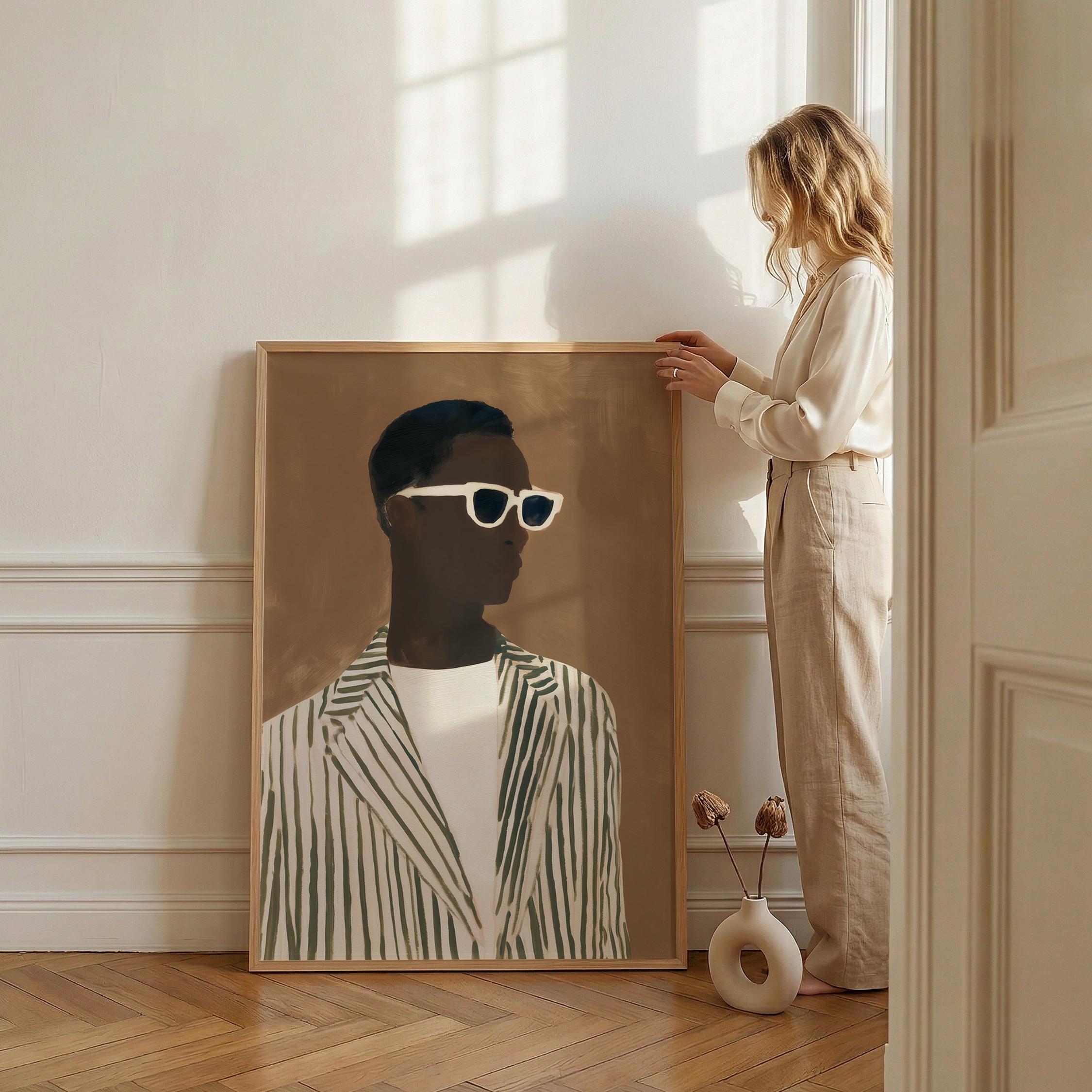 stylized portrait of a fashionable man, perfect for a modern living room and a great gift for a stylish housewarming gift.