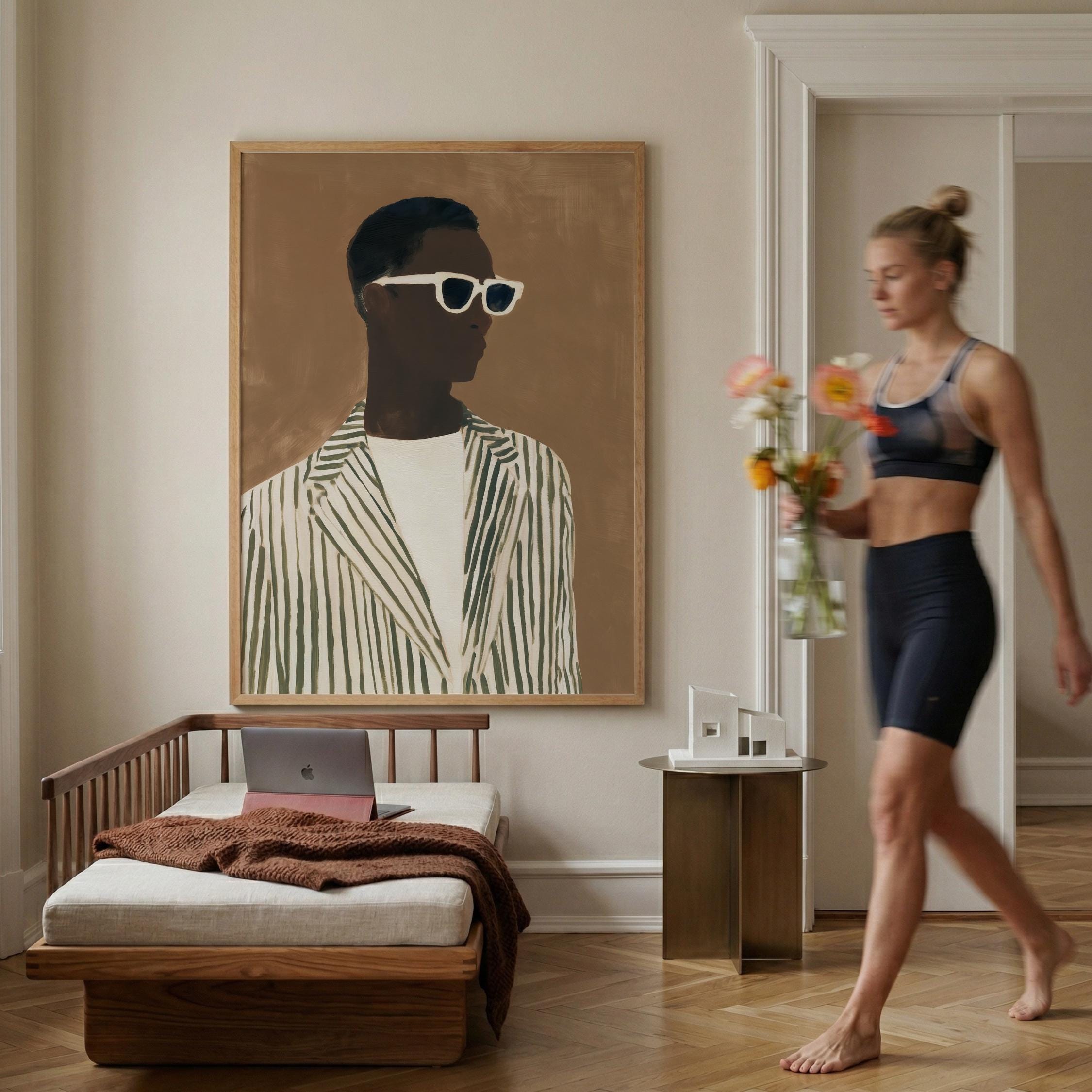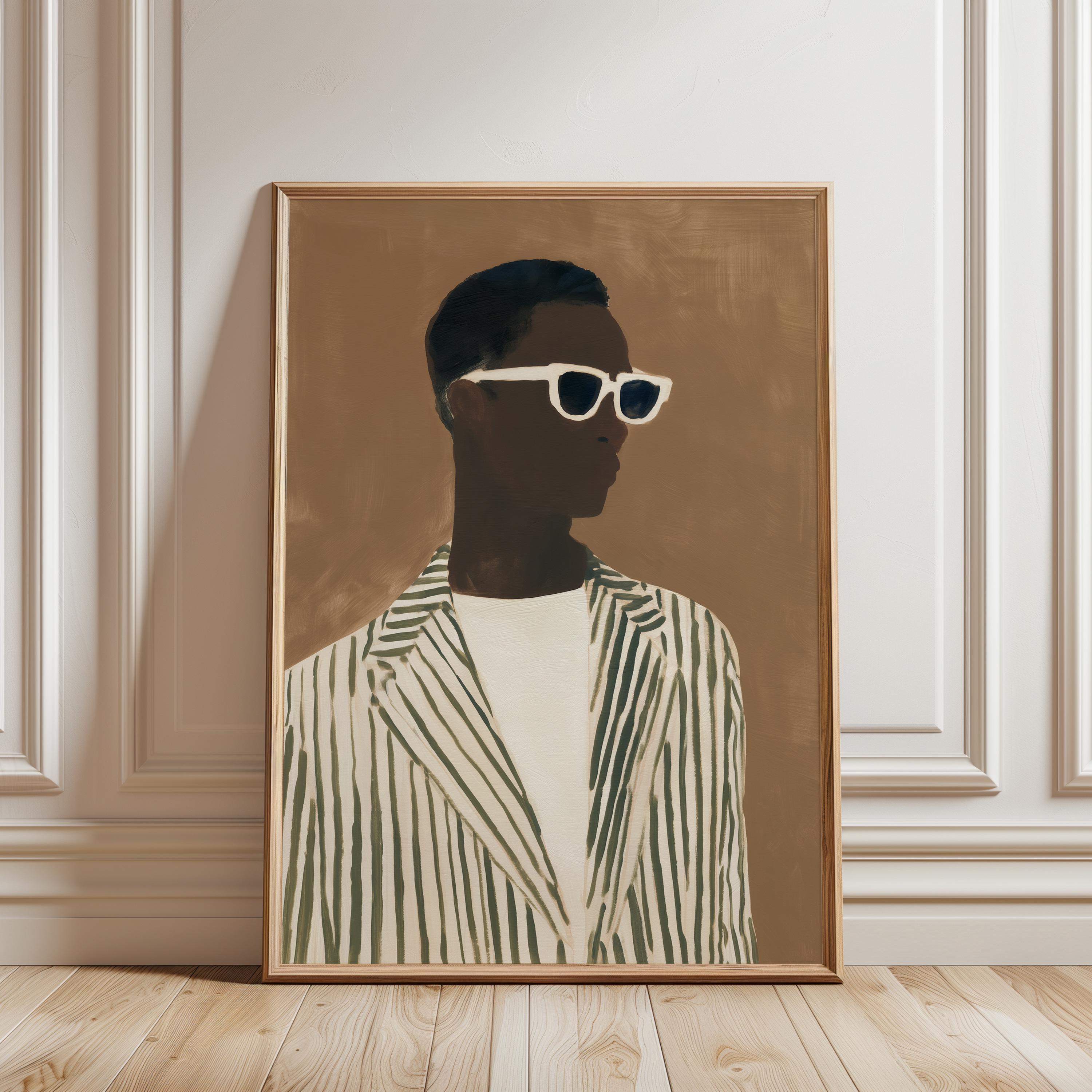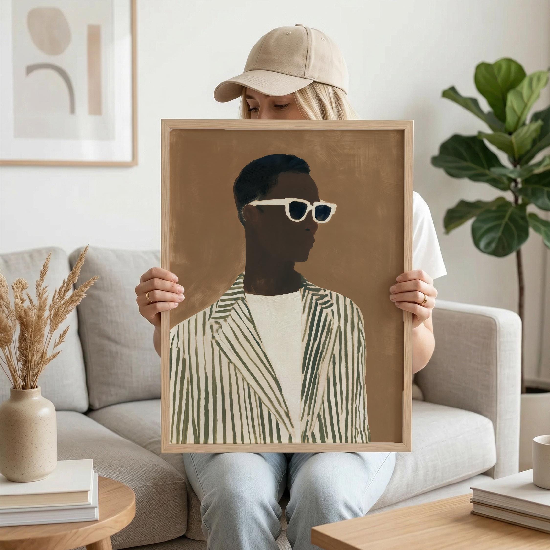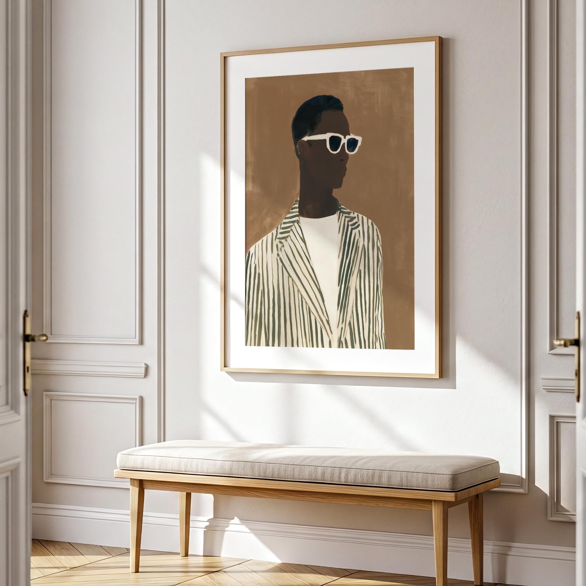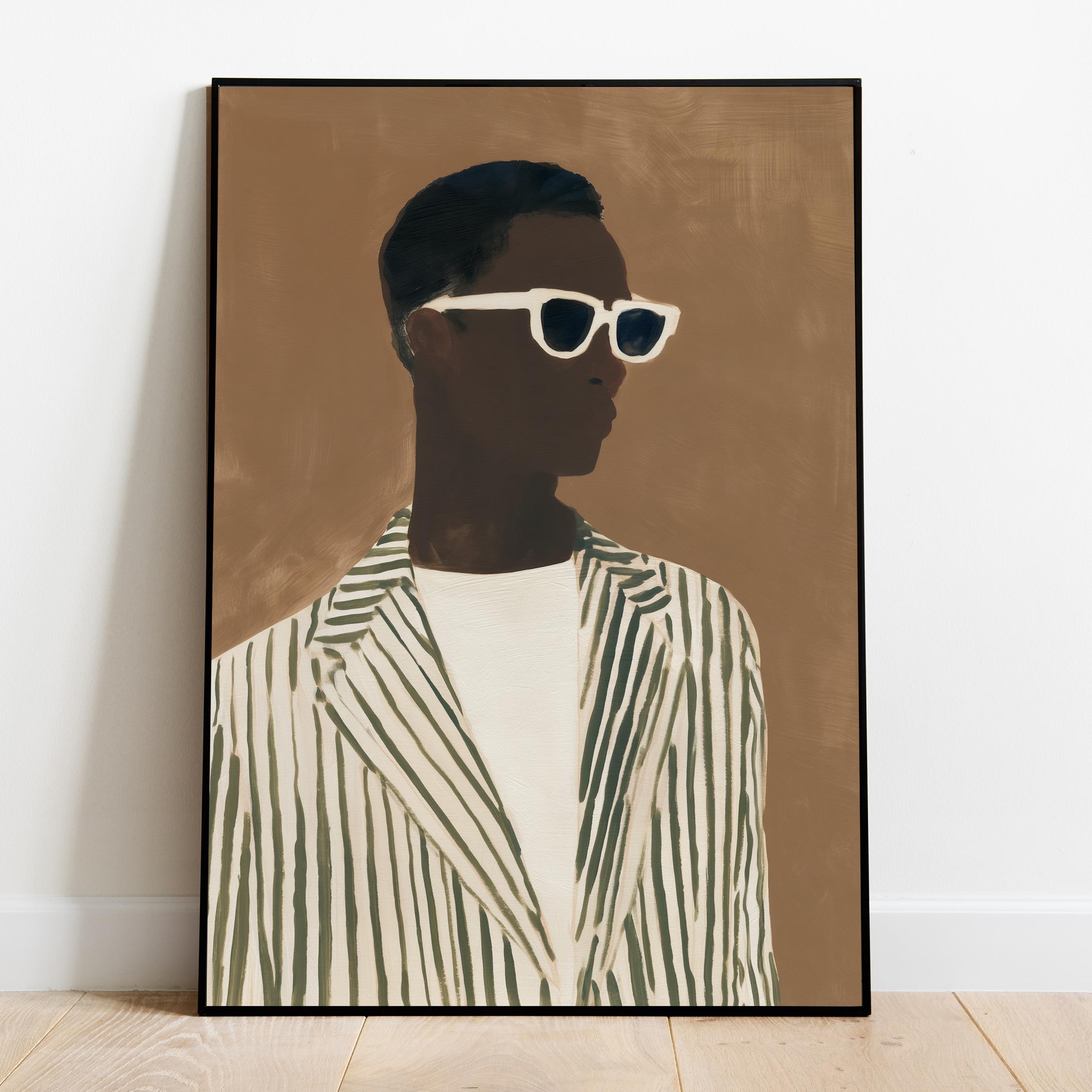 stylized portrait of a fashionable man, perfect for a modern living room and a great gift for a stylish housewarming gift.