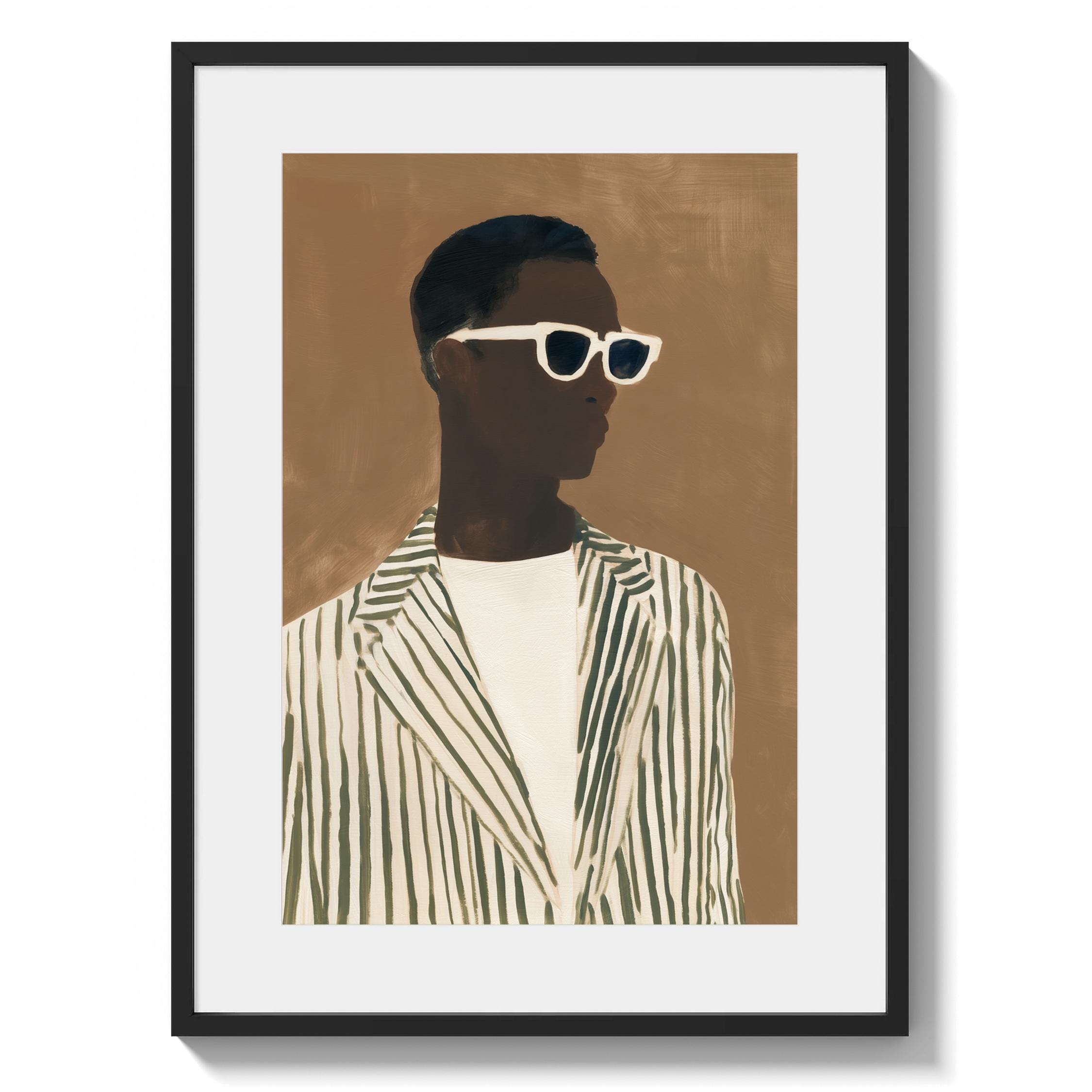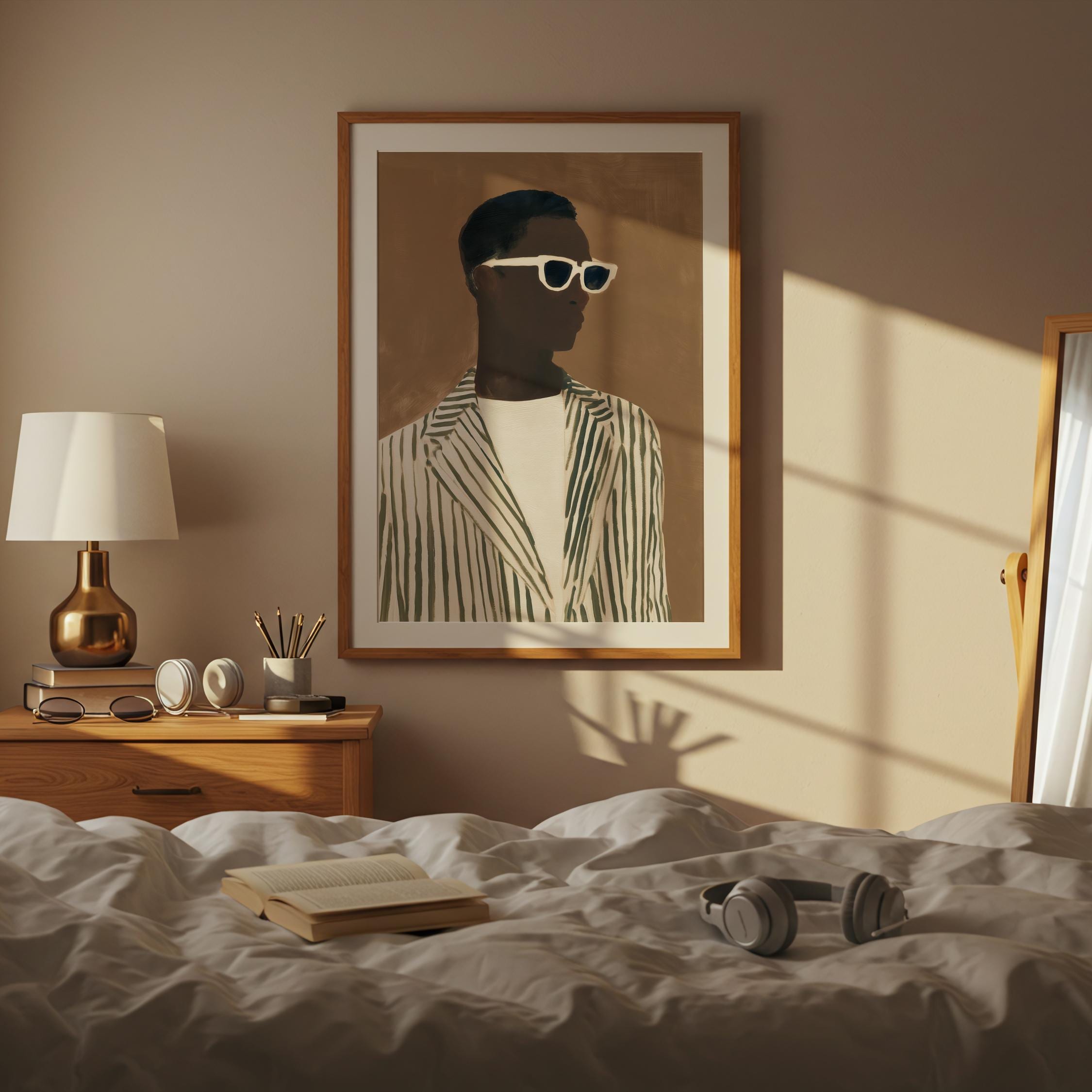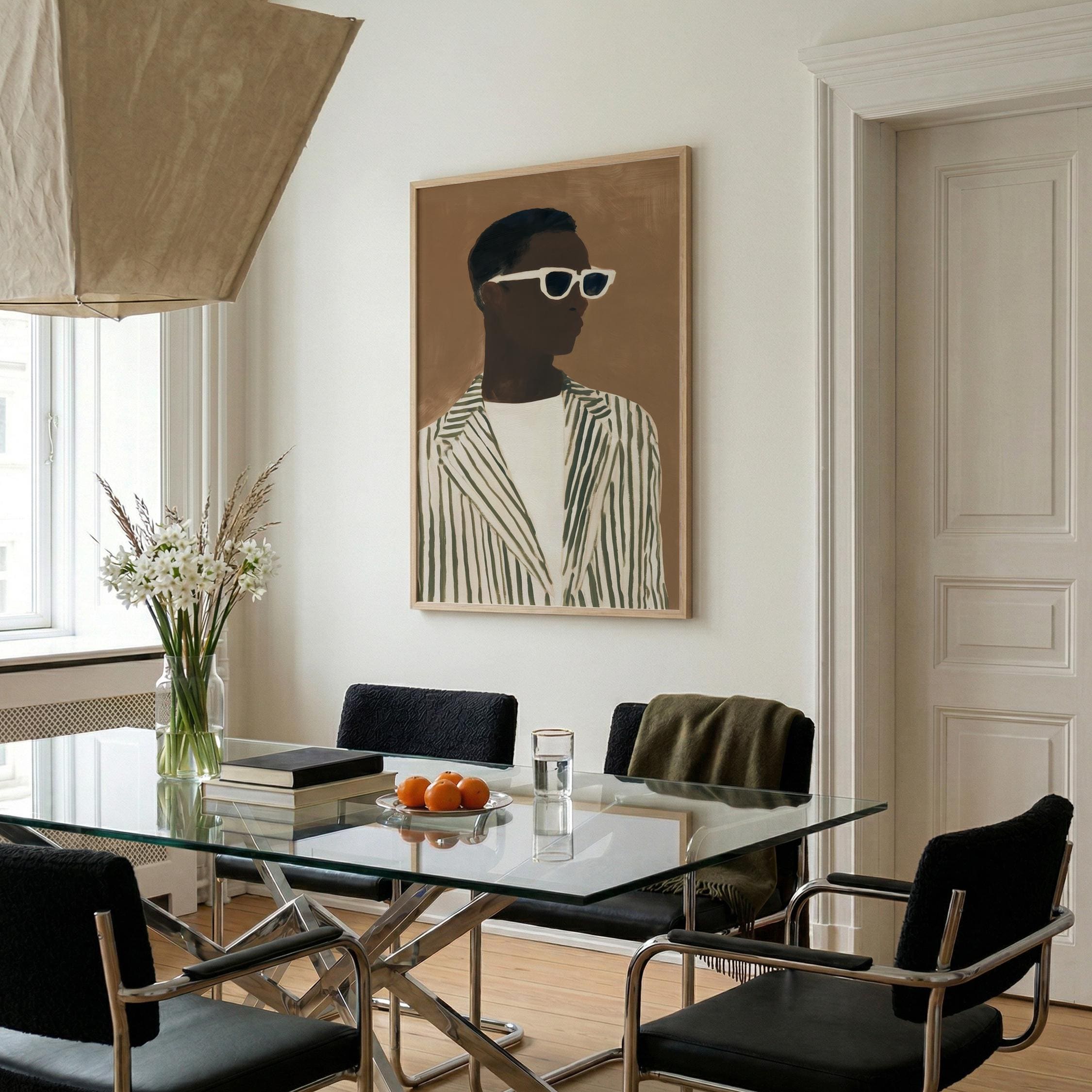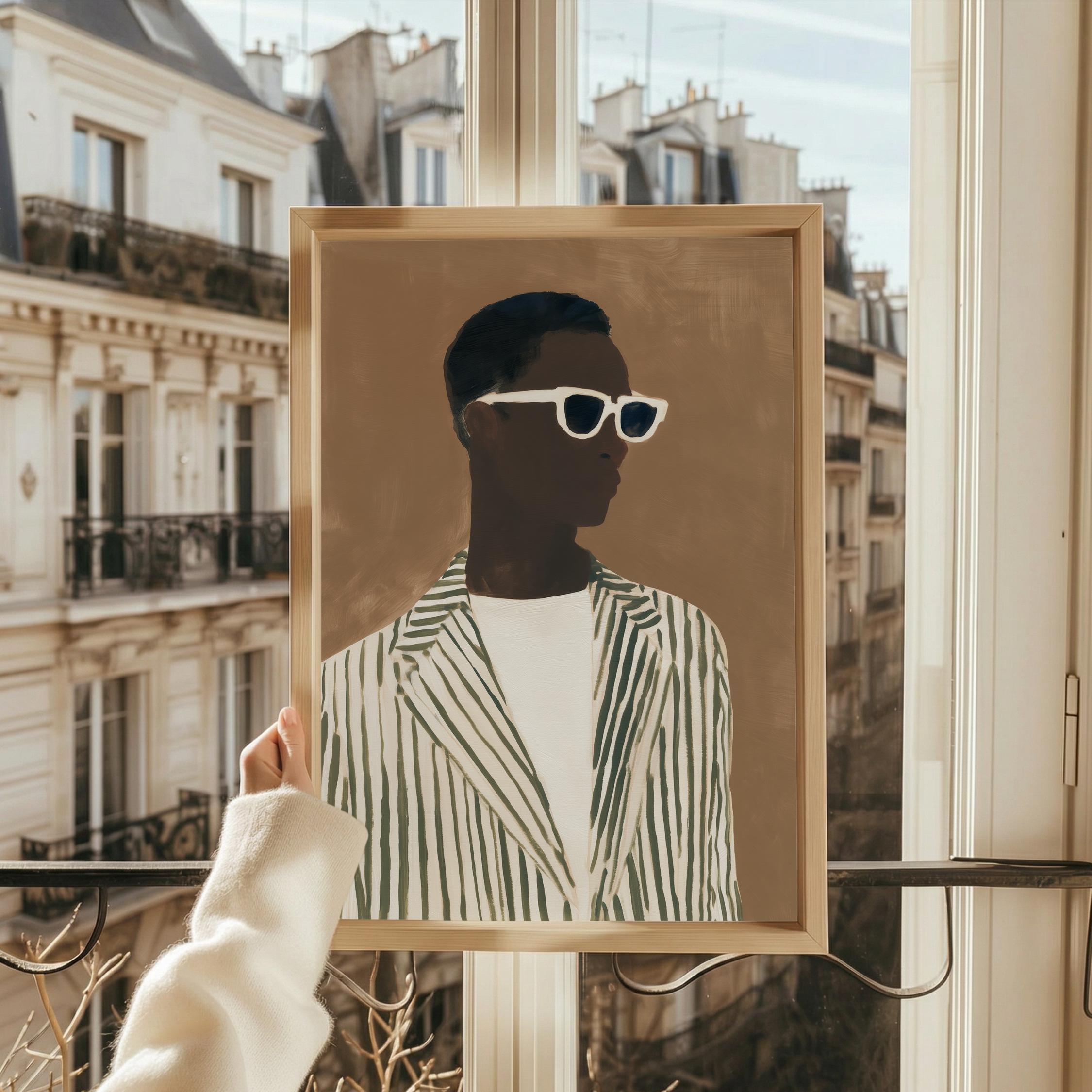 stylized portrait of a fashionable man, perfect for a modern living room and a great gift for a stylish housewarming gift.