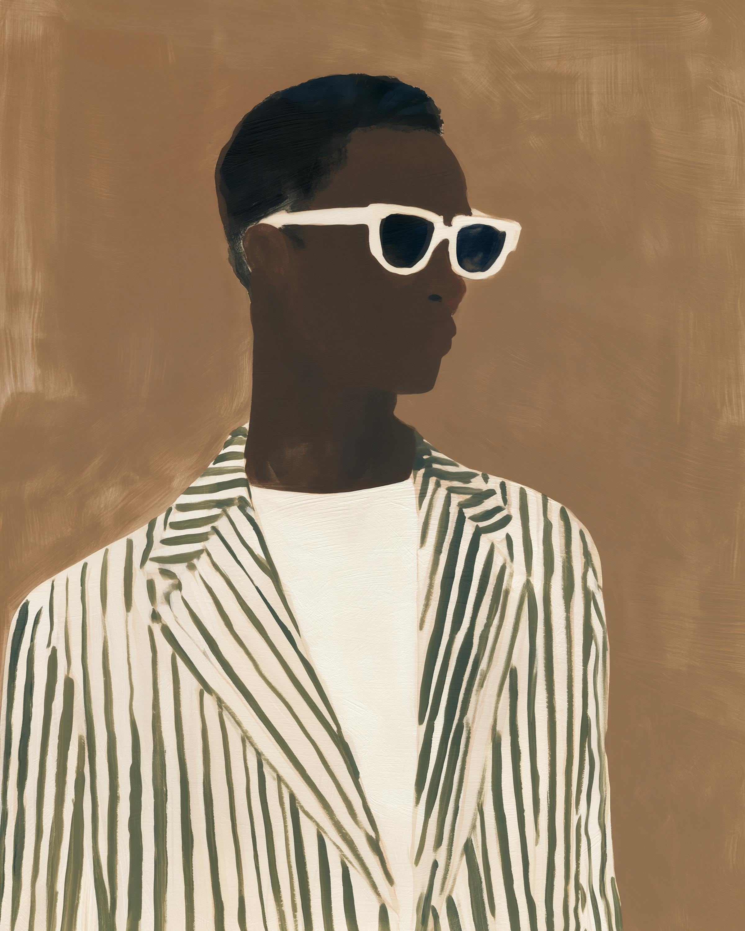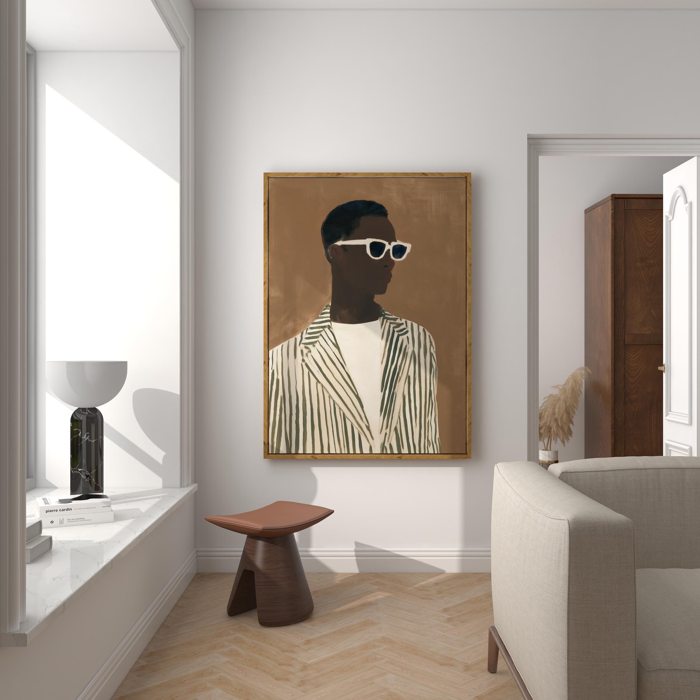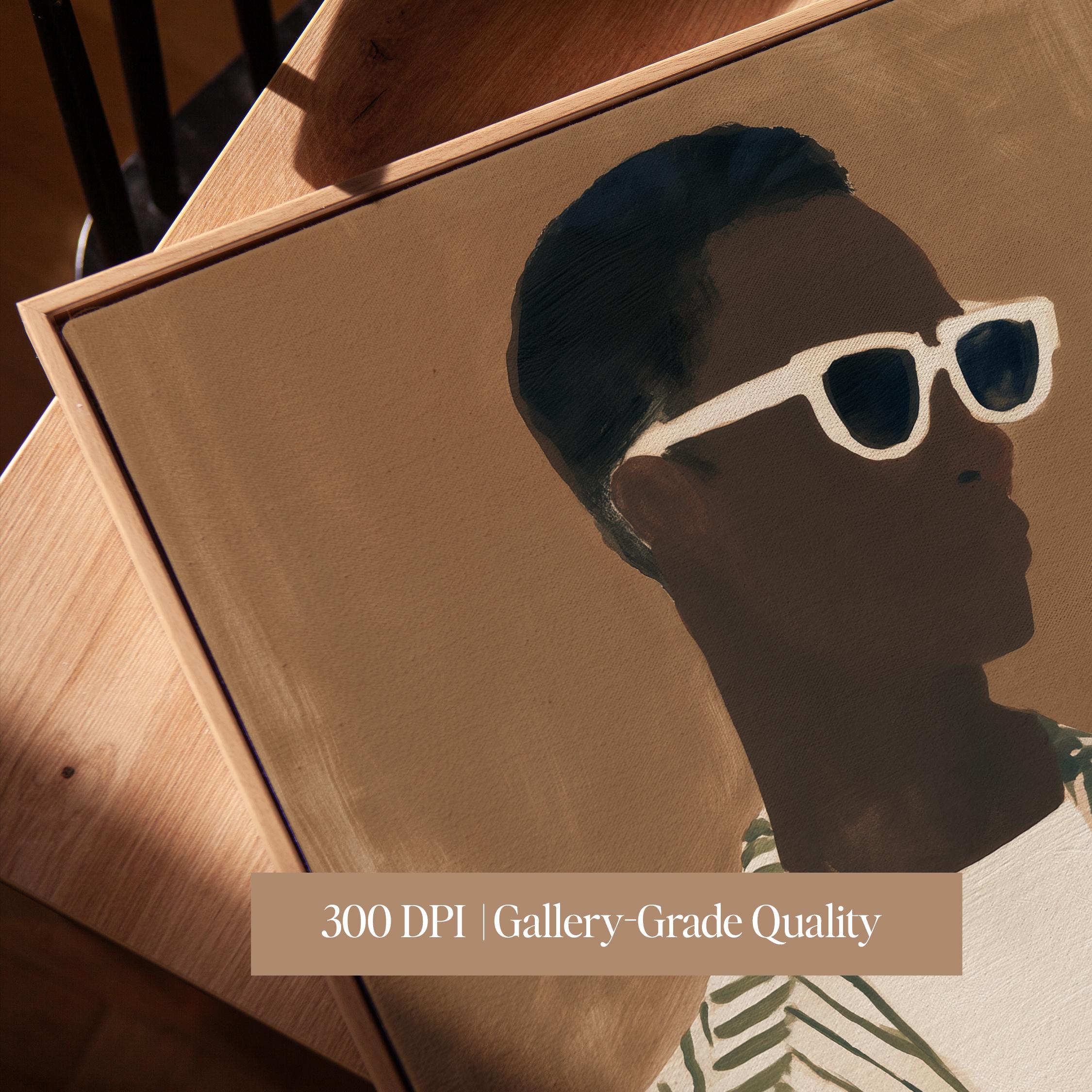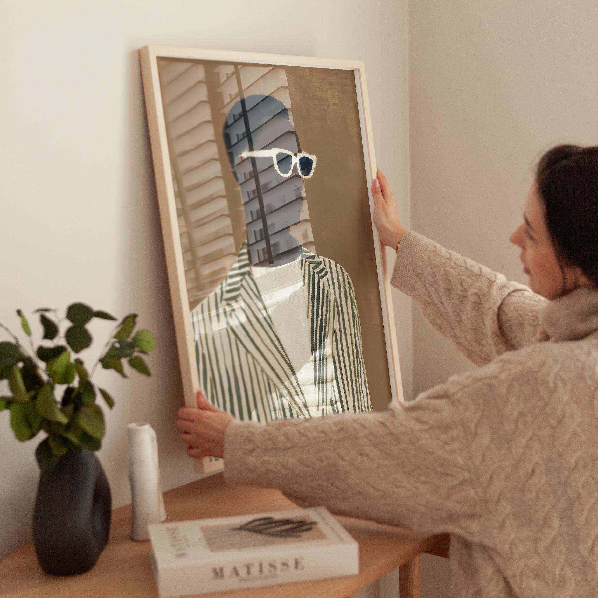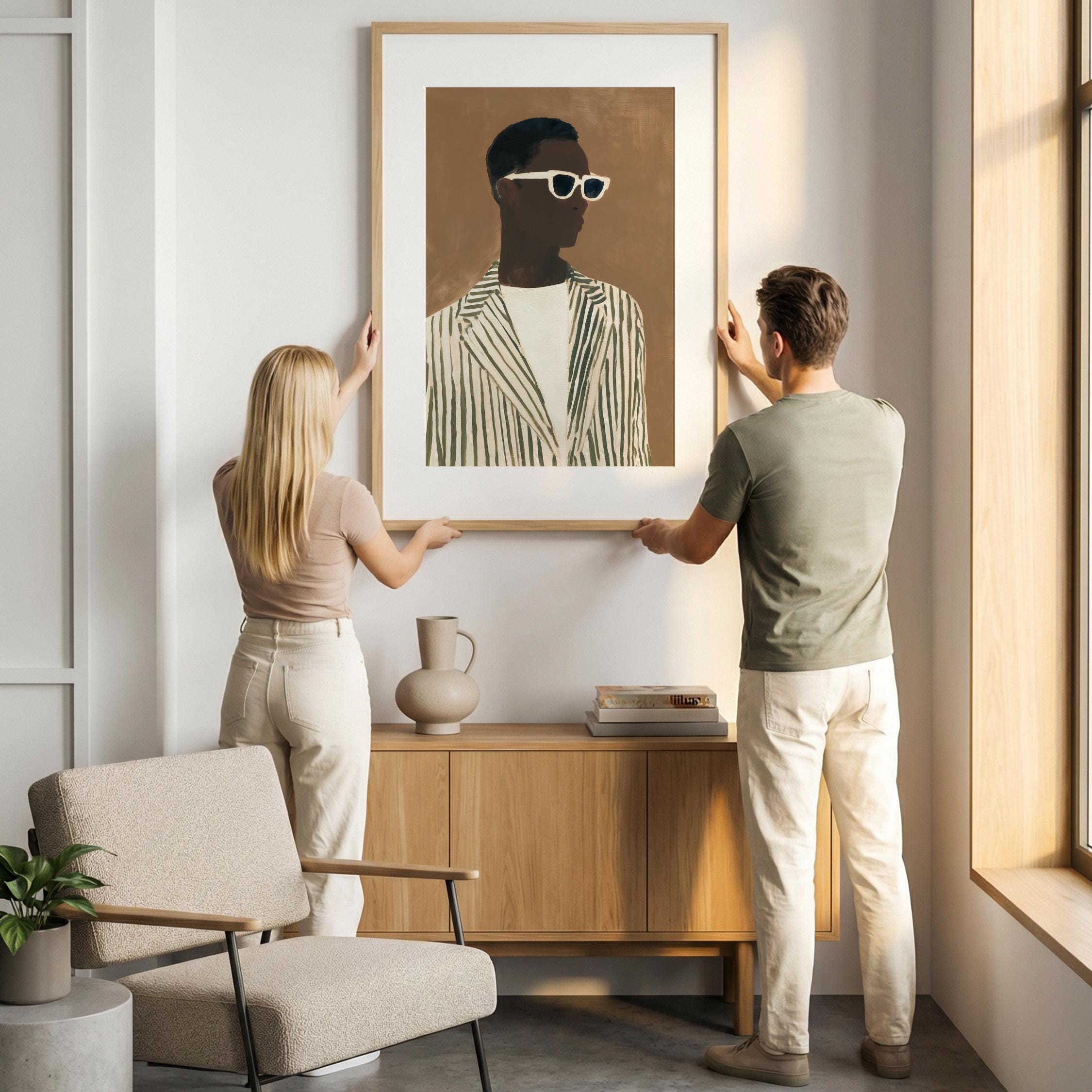 stylized portrait of a fashionable man, perfect for a modern living room and a great gift for a stylish housewarming gift.