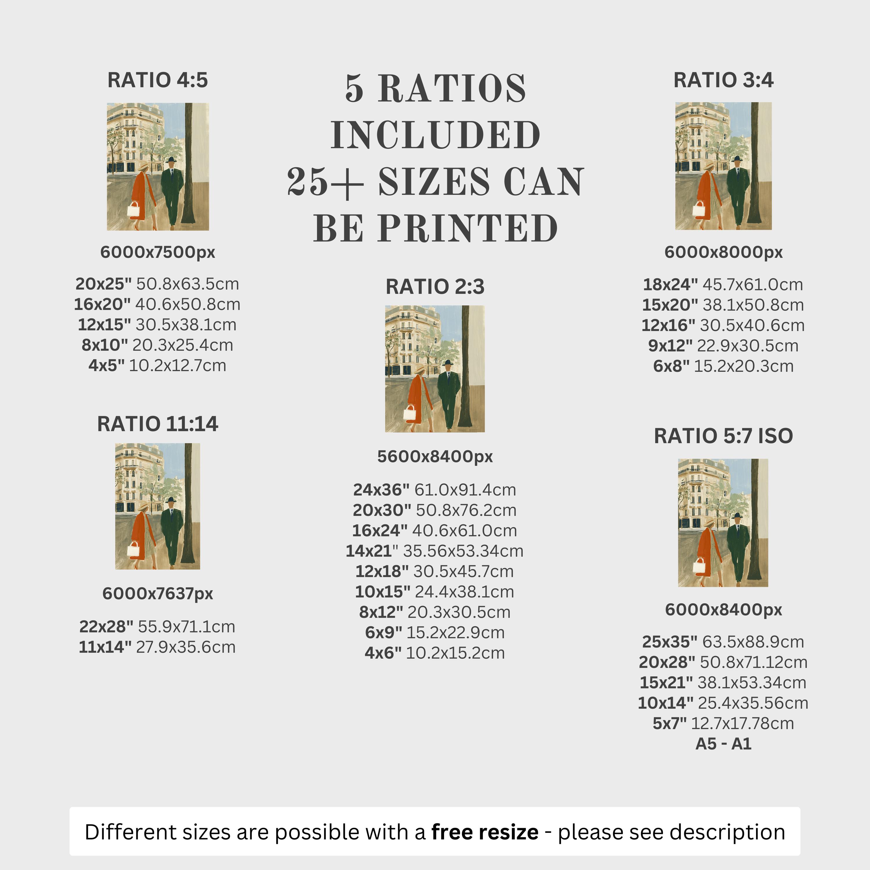 5 HIGH-QUALITY 300 DPI JPGs sized to fit +25 different frames in size and diverse ratios: