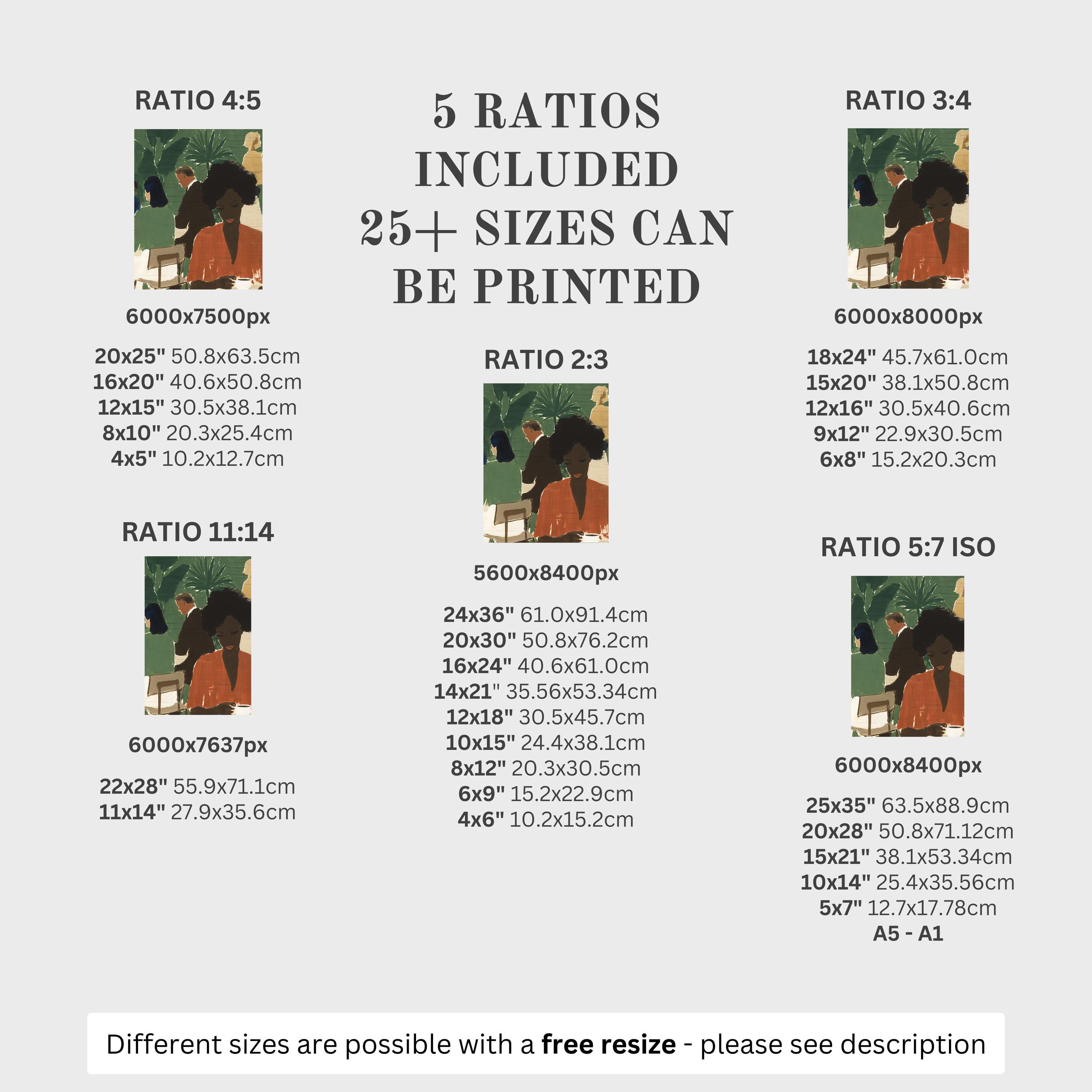 5 HIGH-QUALITY 300 DPI JPGs sized to fit +25 different frames in size and diverse ratios: